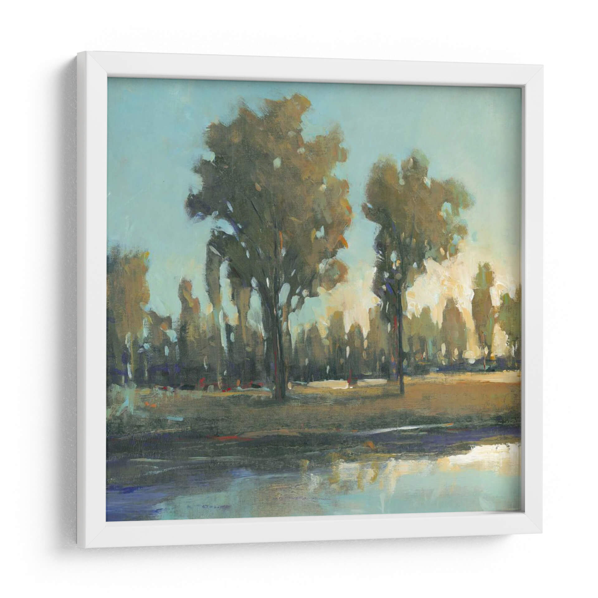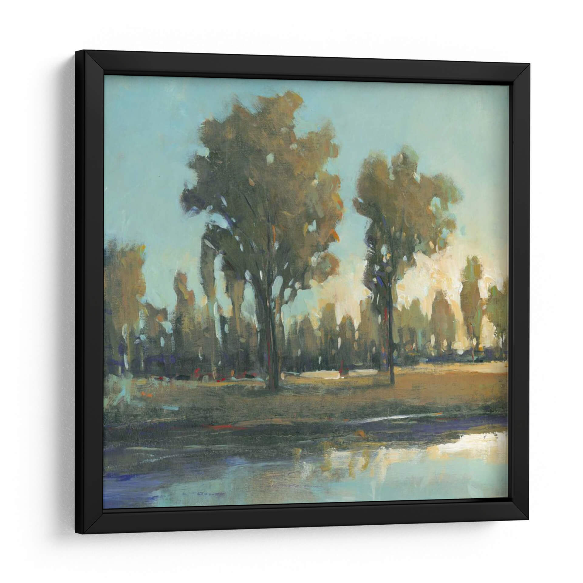 Sumérgete en la serenidad del "Primavera Temprano Por La Mañana", una obra maestra de Tim OToole que captura la esencia de un amanecer tranquilo. Este cuadro decorativo, con sus tonos suaves y su atmósfera etérea, te transportará a un paisaje natural bañado por la luz dorada del alba. Las pinceladas expresivas dan vida a un par de árboles majestuosos en primer plano, cuyas siluetas se recortan contra un cielo azul pálido y un sol naciente que difumina el horizonte. La composición, que incluye un reflejo sereno en el agua en primer plano, evoca una sensación de paz y renovación, perfecta para iniciar el día o para encontrar un remanso de calma al final de la jornada. La paleta de colores, dominada por verdes terrosos, ocres y azules celestes, crea una armonía visual que complementa cualquier espacio. Este cuadro abstracto de paisaje es ideal para añadir un toque de naturaleza y tranquilidad a tu sala de estar, dormitorio o estudio, transformando cualquier rincón en un oasis de serenidad. Descubre la belleza atemporal de la naturaleza capturada en este evocador cuadro de pared, una pieza que inspirará y calmará tus sentidos.