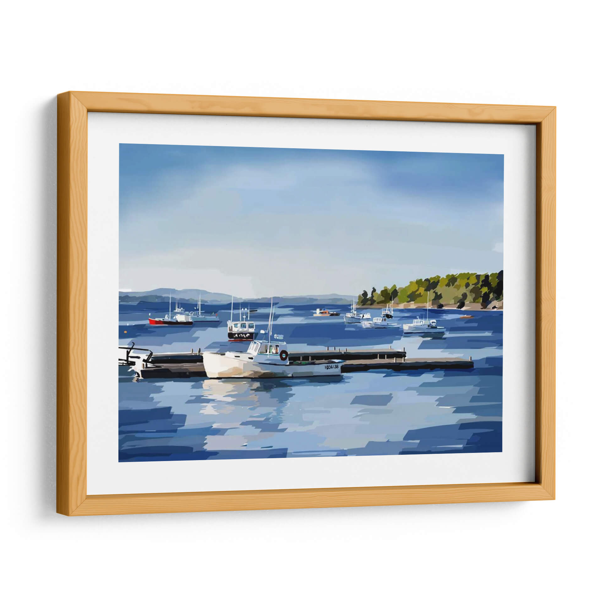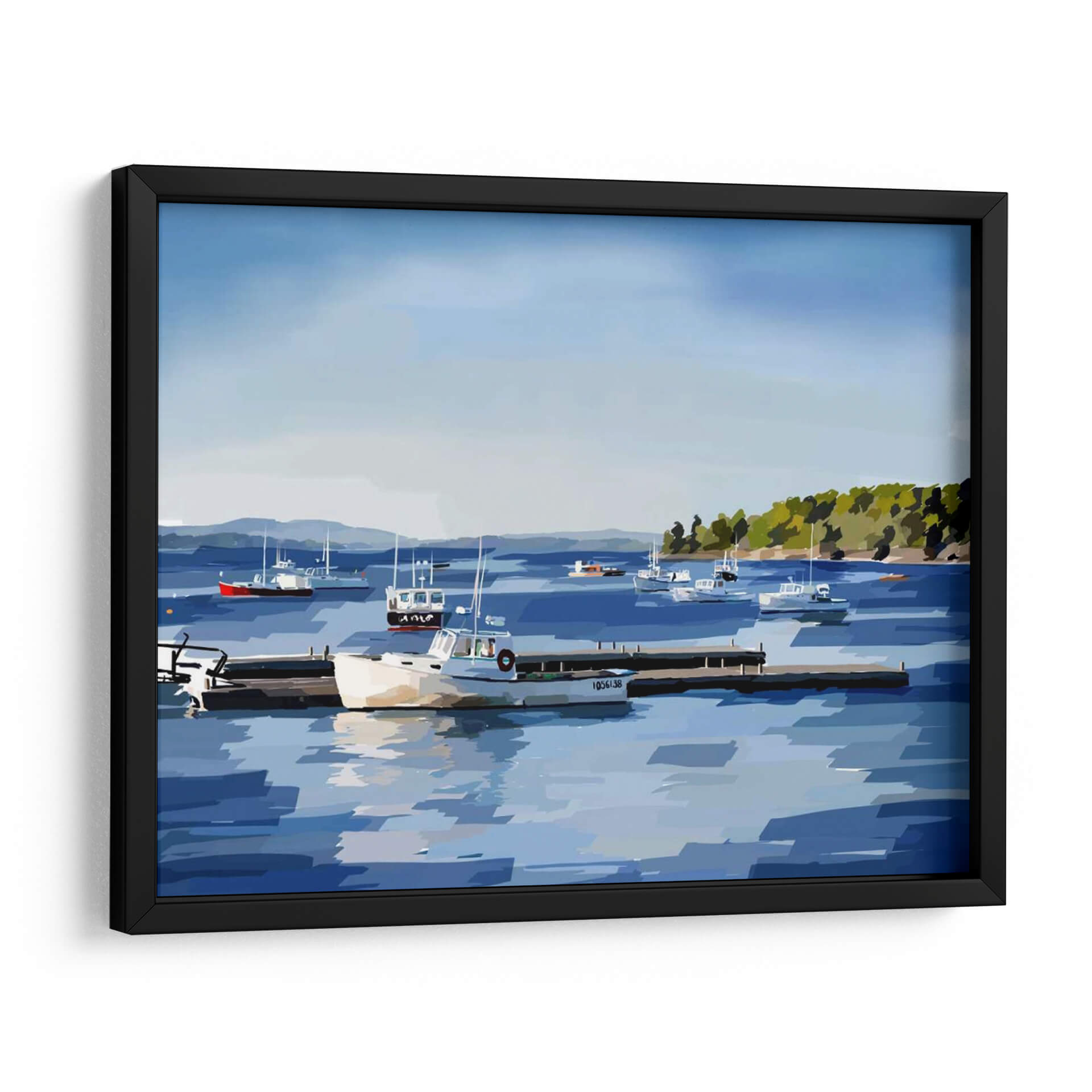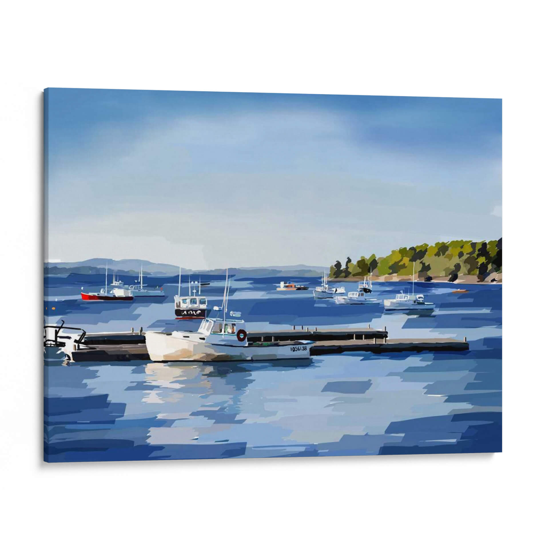 Sumérgete en la serena belleza de "Puerto Tranquilo II", una cautivadora obra de arte que captura la esencia pacífica de un día en el mar. La pintura presenta un puerto marítimo vibrante, lleno de barcos de pesca y veleros meciéndose suavemente sobre aguas azules y cristalinas. El artista, Emily Kalina, utiliza una paleta de azules profundos y celestes, salpicada por los tonos cálidos de la vegetación en la orilla y el blanco de las embarcaciones, creando una atmósfera de calma y tranquilidad. El estilo, que evoca un impresionismo moderno con toques de abstracción, invita a la contemplación y al disfrute de la escena costera. Las pinceladas fluidas y la composición equilibrada hacen de este cuadro decorativo una pieza versátil, perfecta para añadir un toque de serenidad a cualquier espacio. Imagina este cuadro en tu sala de estar, comedor u oficina, transformando el ambiente en un refugio de paz y relajación. "Puerto Tranquilo II" no es solo una imagen, es una invitación a un viaje sensorial a la costa.