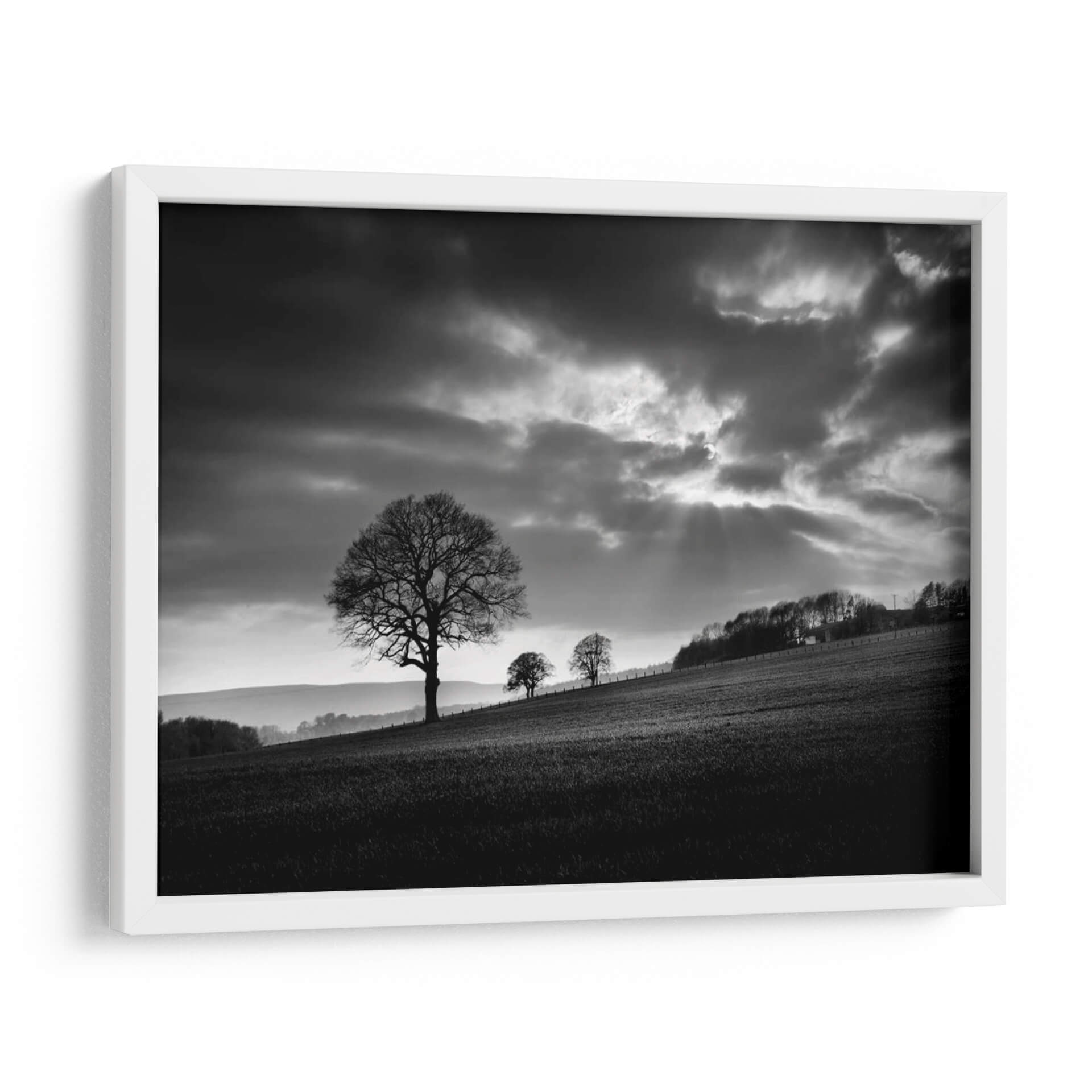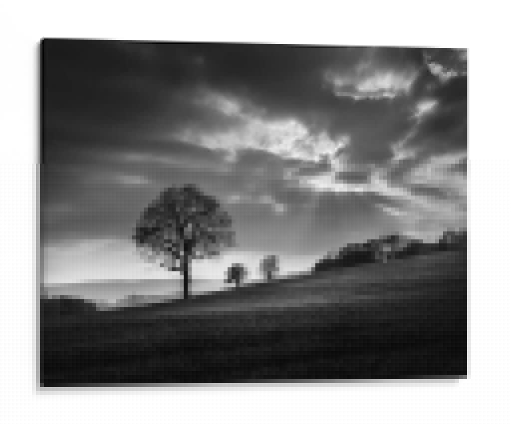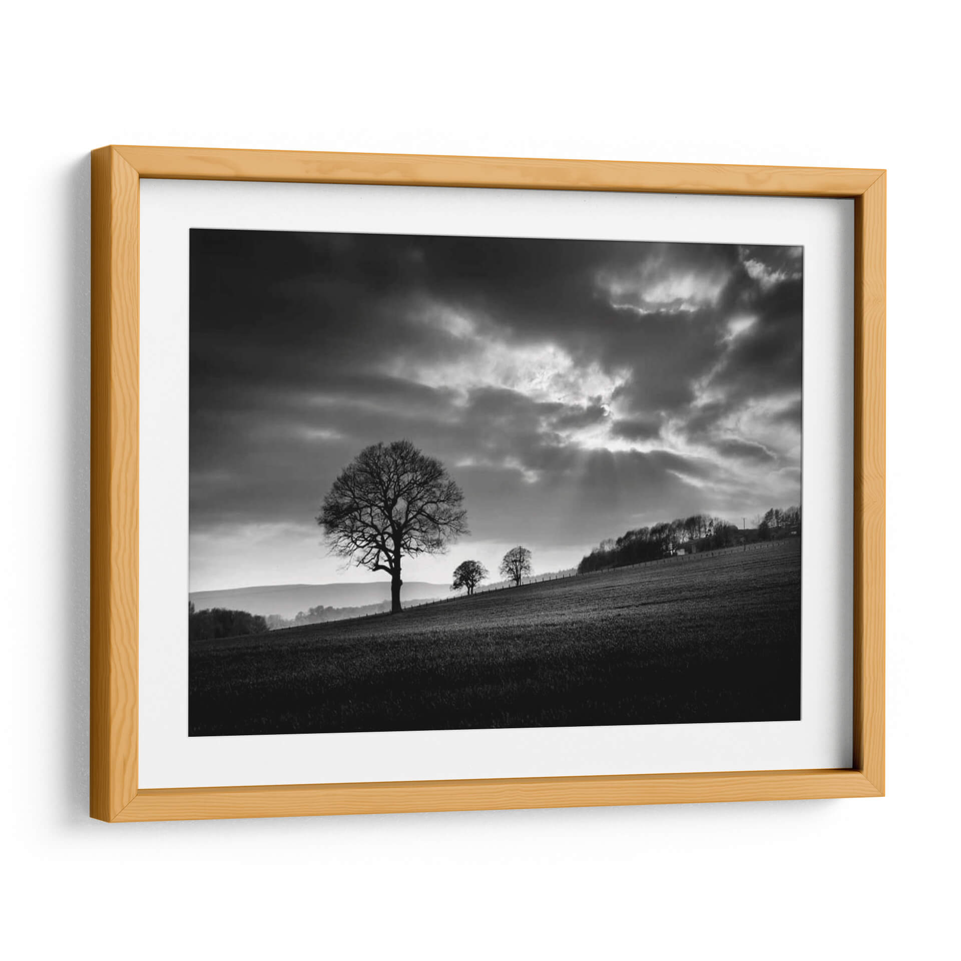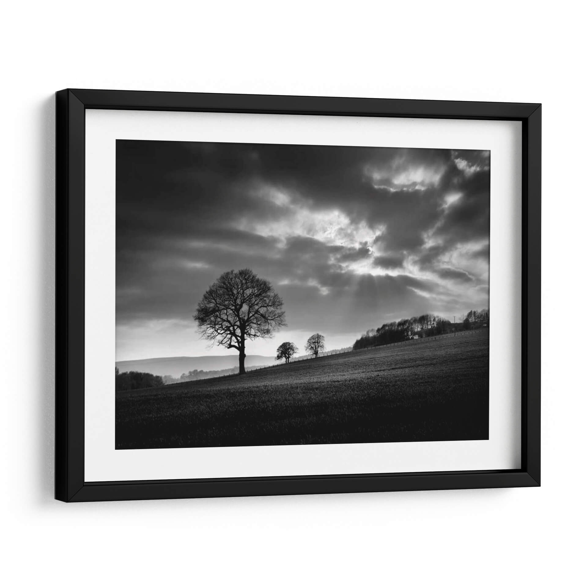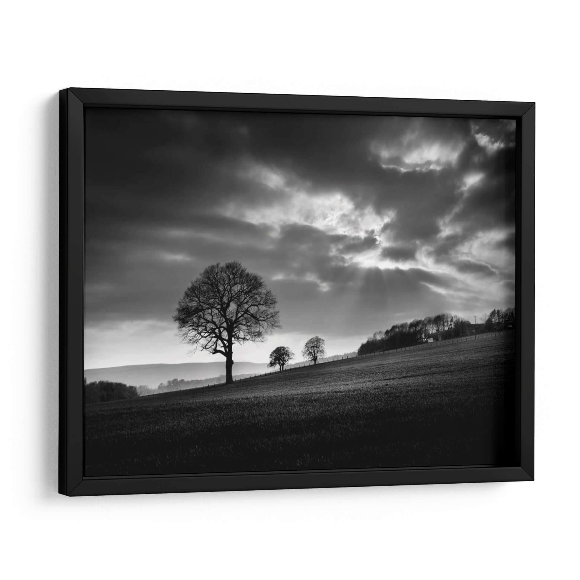 Captura la majestuosidad de la naturaleza con nuestro cuadro decorativo "Puesta Del Sol", una obra maestra en blanco y negro del aclamado artista Martin Henson. Esta pieza evoca una profunda sensación de calma y contemplación, transportándote a un paisaje sereno donde la luz solar se filtra dramáticamente a través de un cielo nublado. La composición se centra en un árbol solitario y robusto en la ladera de una colina, acompañado por la silueta de otros árboles y una línea de árboles en el horizonte, todo ello bañado por la suave luz del atardecer. La paleta de colores monocromática resalta las texturas y el juego de luces y sombras, creando una atmósfera casi etérea. El estilo fotográfico y dramático de Henson aporta una cualidad atemporal a la escena, invitando a la reflexión sobre la belleza efímera de los momentos naturales. Este cuadro decorativo es ideal para cualquier espacio que busque un toque de elegancia, profundidad y serenidad, ya sea en una sala de estar moderna, un estudio tranquilo o un dormitorio acogedor. Añade un toque de arte evocador a tu hogar con esta impresionante representación de la naturaleza, un recordatorio constante de la belleza que nos rodea.