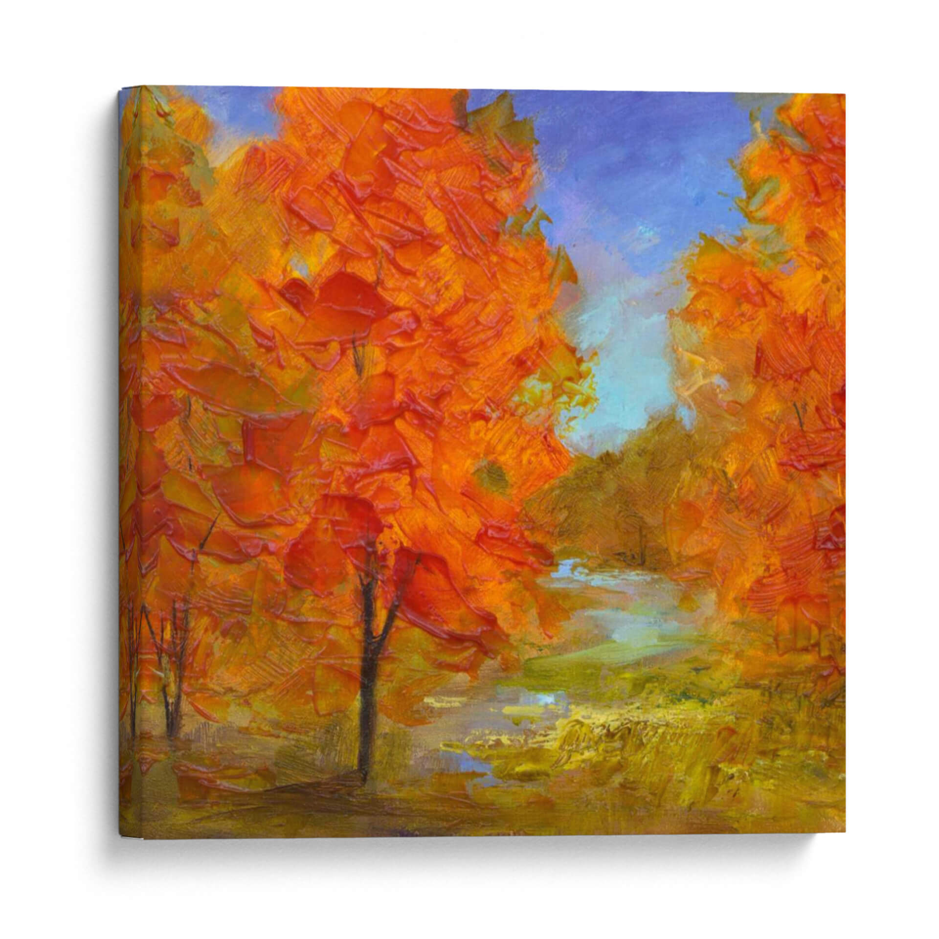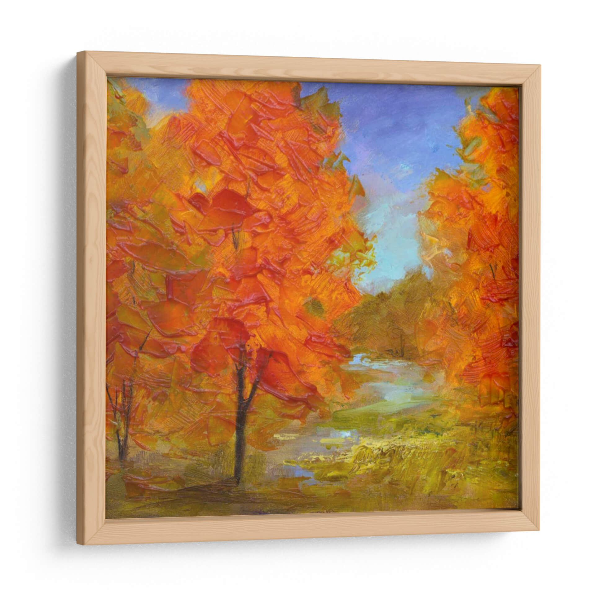 Sumérgete en la vibrante atmósfera de 'Ráfaga de Color Otoñal', una obra de arte cautivadora que captura la esencia del otoño con una explosión de tonos cálidos y energéticos. La artista Sheila Finch nos presenta un paisaje impresionista donde las texturas ricas y las pinceladas audaces dan vida a árboles frondosos y a un sereno cuerpo de agua. Los naranjas intensos, amarillos dorados y toques de azul cielo crean un contraste dinámico que evoca la vitalidad de la naturaleza en su máximo esplendor. Este cuadro decorativo es perfecto para añadir un toque de calidez y sofisticación a cualquier estancia, transformando salones, comedores u oficinas en espacios acogedores y llenos de vida. Ideal para quienes buscan una pieza que combine la belleza clásica de un paisaje con la fuerza expresiva del arte contemporáneo. 'Ráfaga de Color Otoñal' no es solo una decoración, es una ventana a la belleza efímera de la estación, invitando a la contemplación y al disfrute de los colores que solo la naturaleza sabe pintar. Añade esta pieza única a tu colección y siente la energía transformadora del otoño en tu hogar.