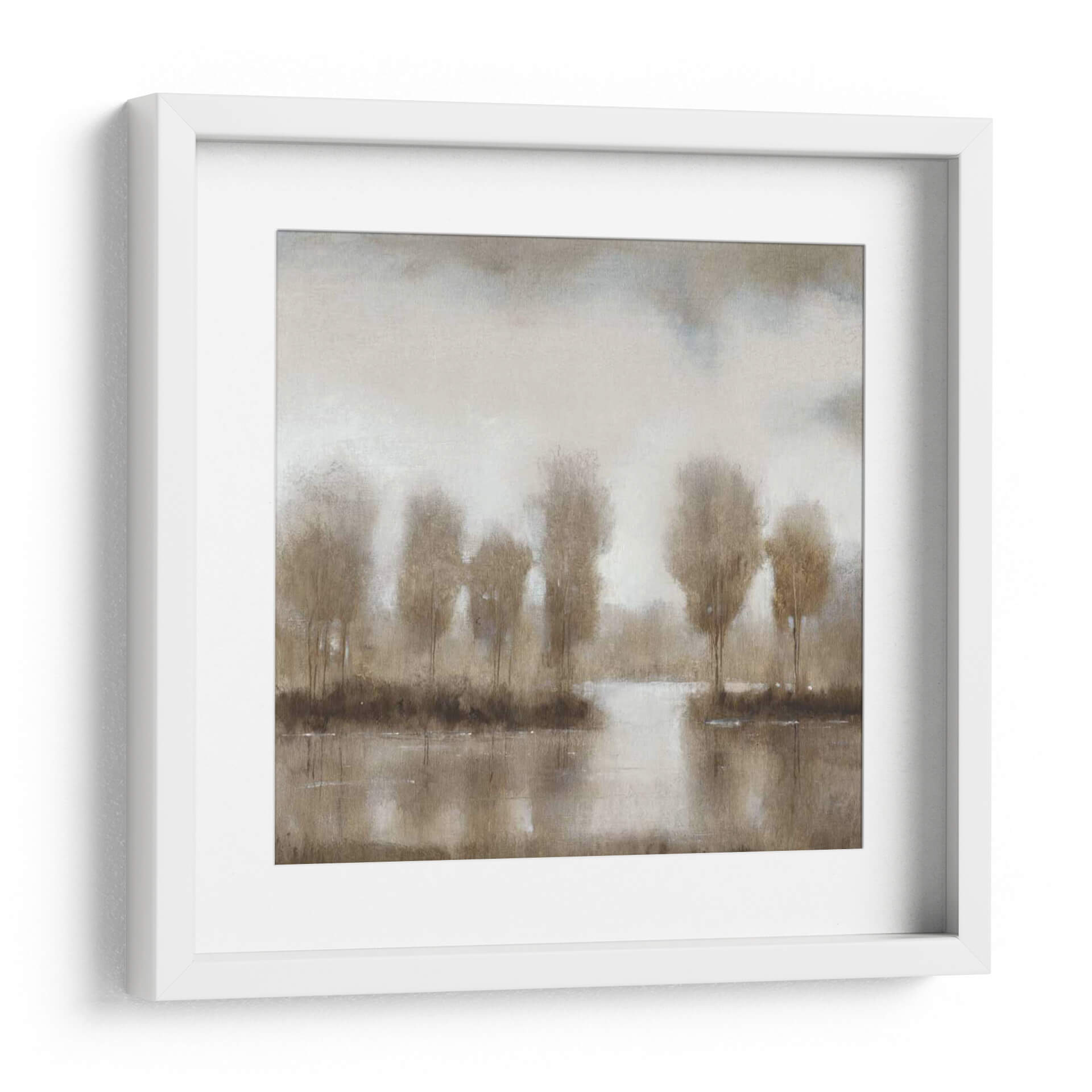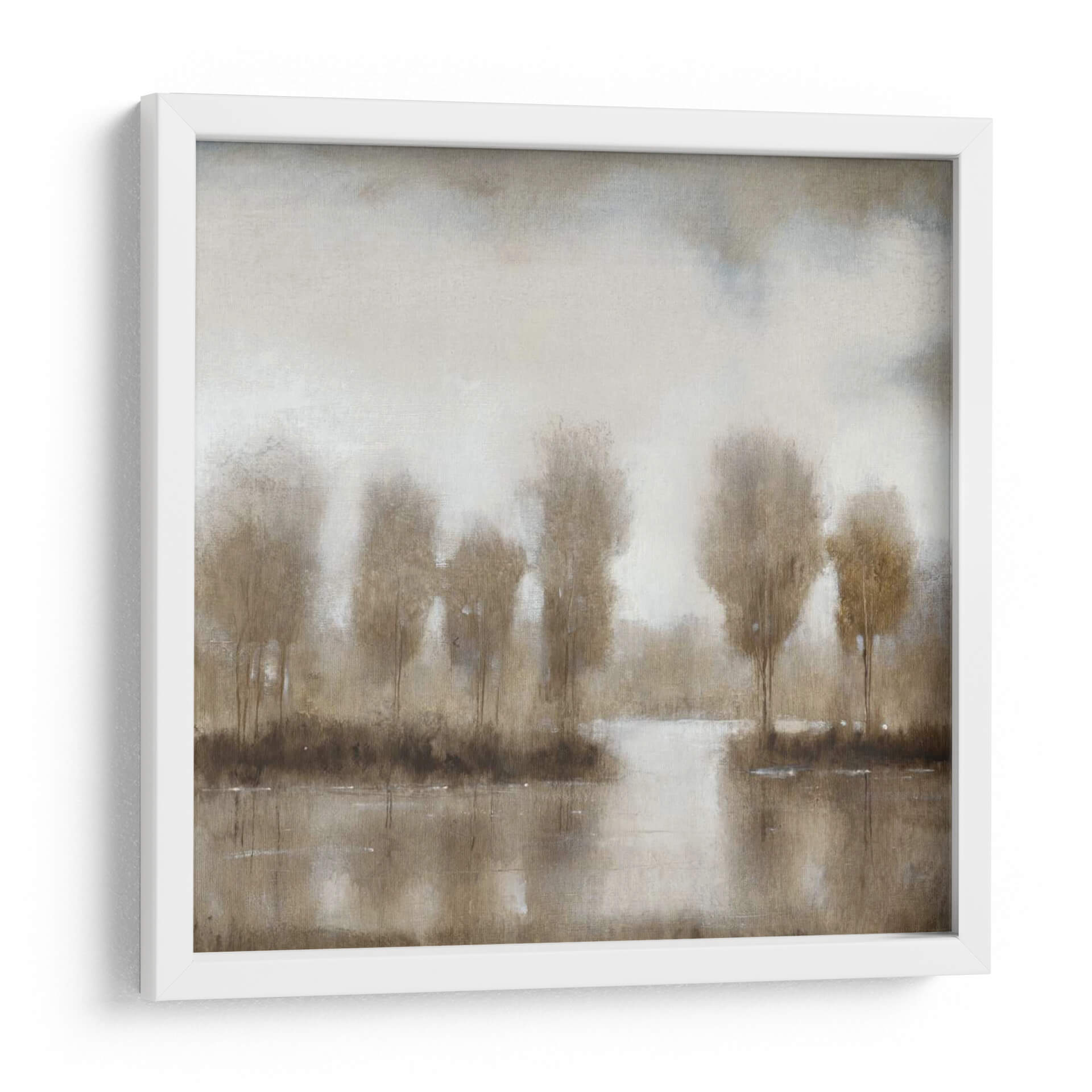 Sumérgete en la atmósfera serena y evocadora de "Reflexión Sutil II", un cuadro decorativo que captura la esencia de un paisaje tranquilo y enigmático. La obra presenta una interpretación abstracta de árboles desdibujados junto a un cuerpo de agua sereno, donde los reflejos crean una sensación de profundidad y misterio. La paleta de colores se centra en tonos tierra, grises suaves y blancos cremosos, generando una sensación de calma y contemplación. El estilo pictórico, con sus pinceladas difusas y texturas sutiles, invita a la meditación y a la conexión con la naturaleza en su forma más introspectiva. Este cuadro decorativo es perfecto para añadir un toque de sofisticación y serenidad a cualquier espacio, ya sea en un salón moderno, una oficina o un dormitorio que busque un refugio de paz. "Reflexión Sutil II" no es solo una obra de arte, es una invitación a pausar y reflexionar, aportando una atmósfera de tranquilidad y elegancia atemporal a tu hogar u oficina. Su diseño abstracto y su composición armónica lo convierten en una pieza versátil que complementa una amplia gama de estilos decorativos, desde el minimalista hasta el contemporáneo.
