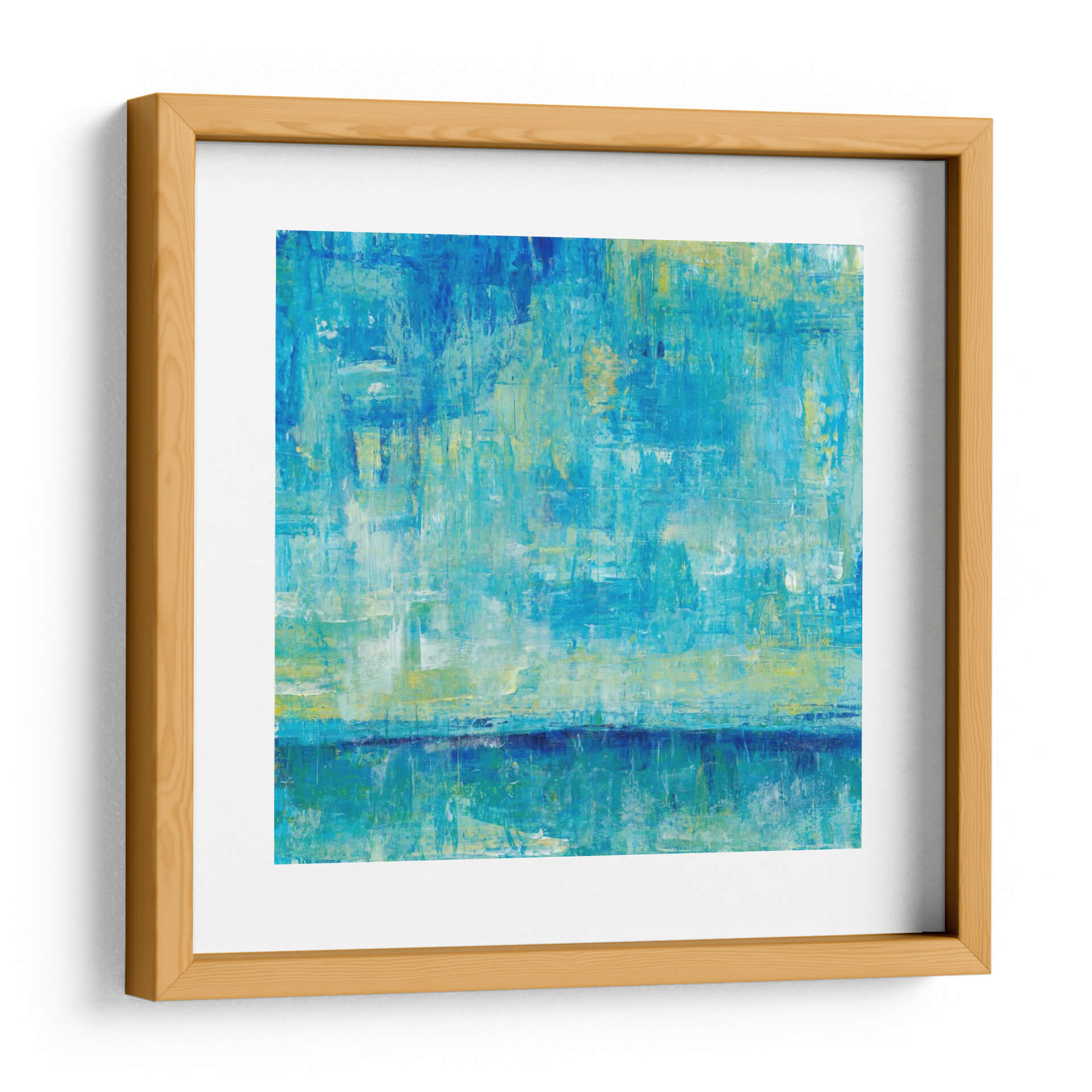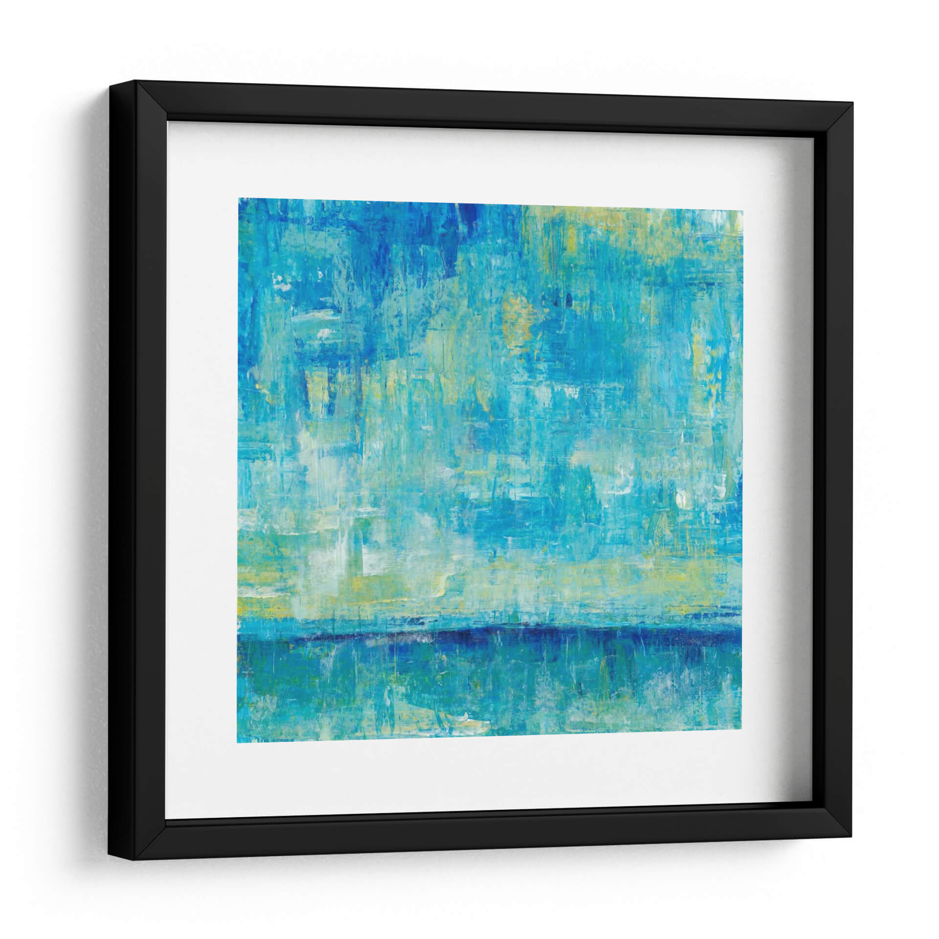 Sumérgete en la serena belleza de "Reflexiones De Agua Iii", una obra de arte abstracto que captura la esencia de la naturaleza acuática. Este cuadro decorativo presenta una paleta de colores vibrantes y calmantes, dominada por tonos de azul profundo, turquesa y toques sutiles de amarillo y blanco, evocando la inmensidad del océano o la tranquilidad de un lago al amanecer. Las pinceladas texturizadas y gestuales crean una sensación de movimiento y profundidad, invitando al espectador a perderse en sus capas. La composición, que sugiere un horizonte difuso y su reflejo en el agua, aporta una cualidad meditativa y pacífica a la pieza. "Reflexiones De Agua Iii" es ideal para infundir calma y sofisticación en cualquier espacio, desde una sala de estar moderna hasta un sereno dormitorio o una oficina que busca un toque de inspiración natural. Este cuadro decorativo contemporáneo se convertirá en un punto focal cautivador, añadiendo un aire de elegancia y serenidad a tu decoración.