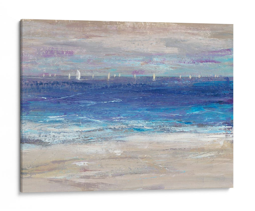Sumérgete en la serenidad del océano con 'Regatta Lejana I', una obra de arte contemporáneo que captura la esencia de un día tranquilo en el mar. Este cuadro decorativo presenta una vista evocadora de veleros navegando en un mar de intensos tonos azules, desde el cobalto profundo hasta el turquesa vibrante. La pincelada suelta y expresiva del artista Tim O'Toole transmite una sensación de movimiento y brisa marina, invitando a la contemplación. La paleta de colores se complementa con una franja de arena neutra en primer plano y un cielo con sutiles toques de lavanda y gris en el horizonte, creando una atmósfera de calma y armonía. Ideal para espacios que buscan un toque de sofisticación y paz, como salas de estar, dormitorios o estudios, este cuadro decorativo aportará una ventana al mar a tu hogar u oficina. Su estilo pictórico y su temática marítima lo convierten en una pieza versátil que inspira tranquilidad y escapismo, perfecta para renovar la energía de cualquier ambiente.