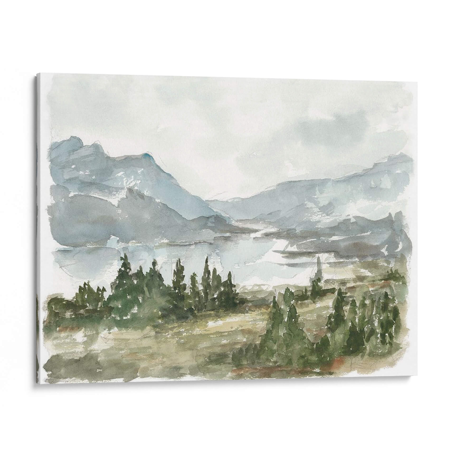 Sumérgete en la serena belleza de 'Reservorio Nublado I', una obra maestra de Ethan Harper que captura la majestuosidad de la naturaleza con una técnica de acuarela etérea. Este cuadro decorativo te transporta a un paisaje montañoso envuelto en brumas, donde un lago sereno se refleja bajo un cielo plomizo. La paleta de colores, dominada por suaves grises, azules tenues y verdes terrosos, crea una atmósfera de calma profunda y contemplación, ideal para quienes buscan infundir tranquilidad en sus espacios. Las pinceladas sueltas y la calidad traslúcida de la acuarela aportan una sensación de movimiento y aire, como si el viento susurrara entre los árboles que bordean el primer plano. La composición, que combina la inmensidad de las montañas distantes con la intimidad del bosque cercano, ofrece una perspectiva equilibrada y armoniosa. 'Reservorio Nublado I' es más que una simple imagen; es una invitación a la introspección y a la conexión con la naturaleza, perfecta para añadir un toque de sofisticación y paz a tu sala de estar, dormitorio u oficina. Descubre cómo este cuadro decorativo puede transformar tu ambiente, aportando un respiro visual y emocional a tu día a día.