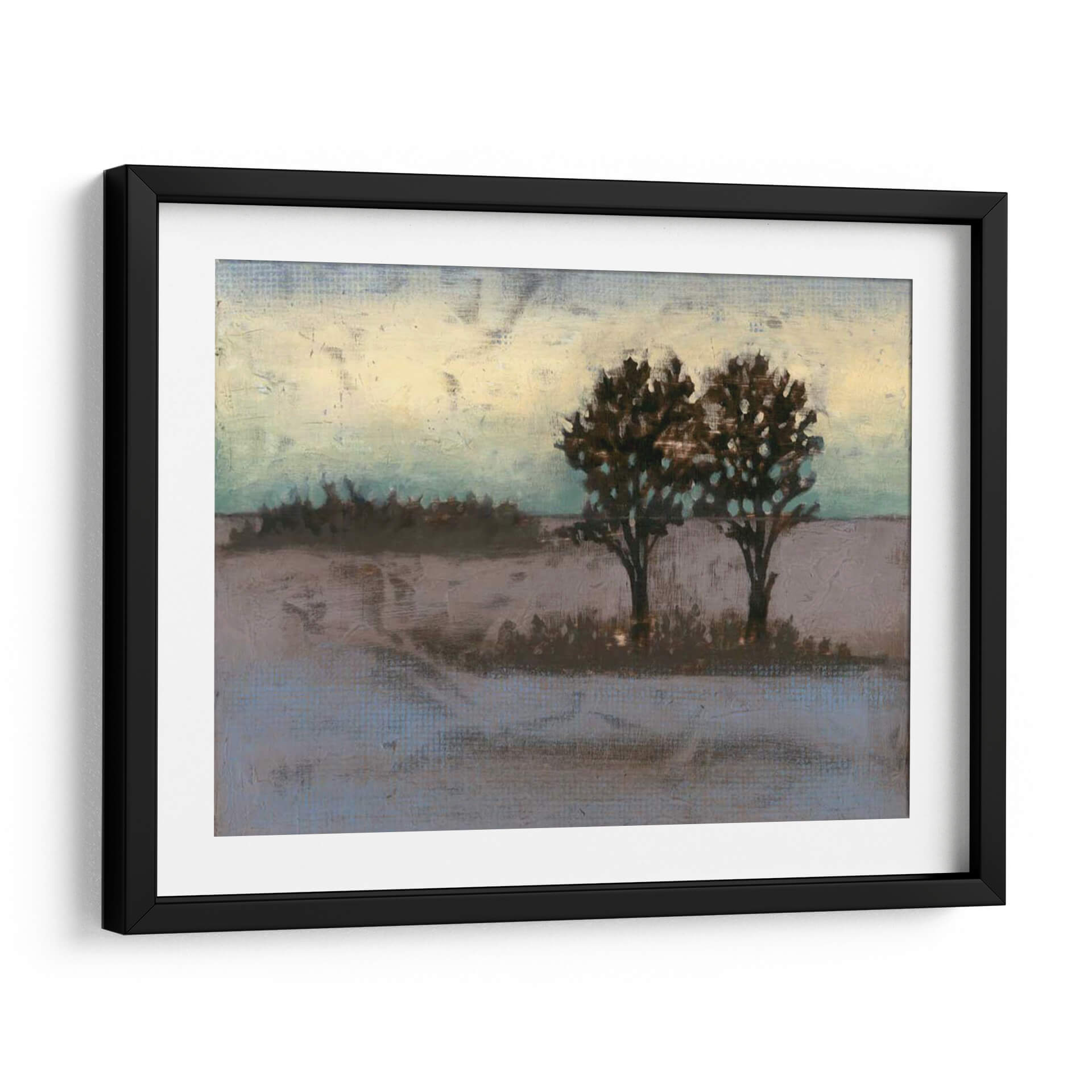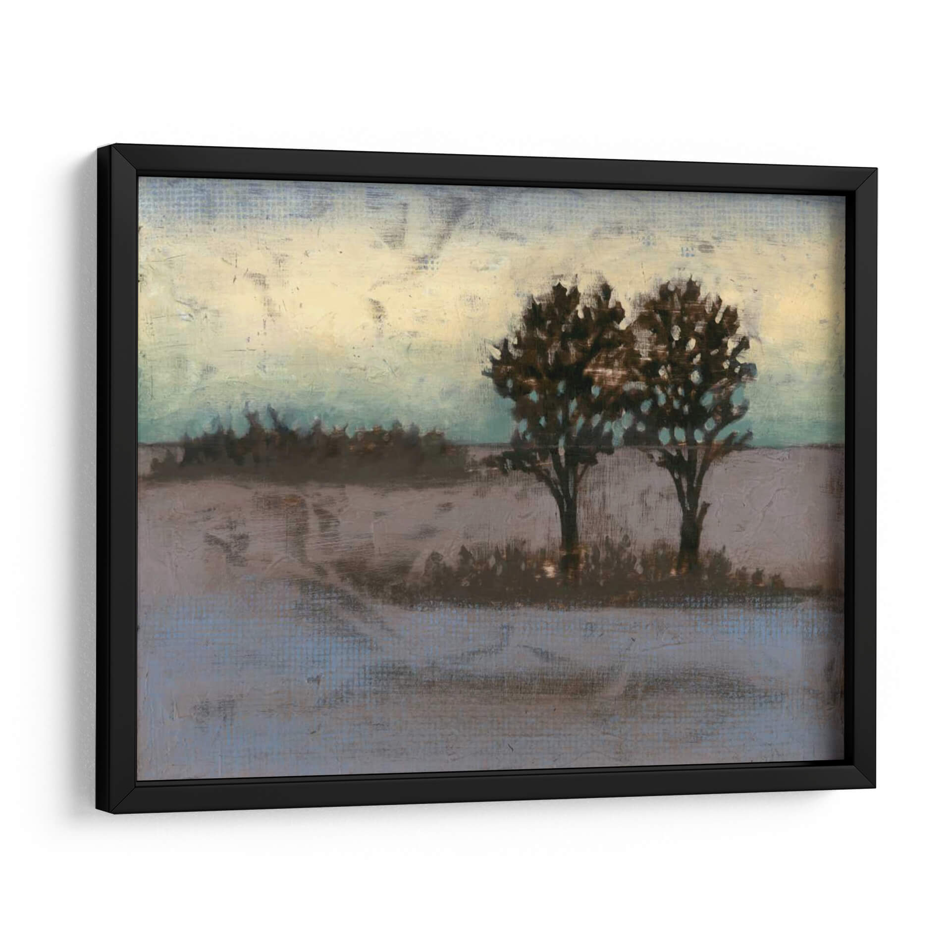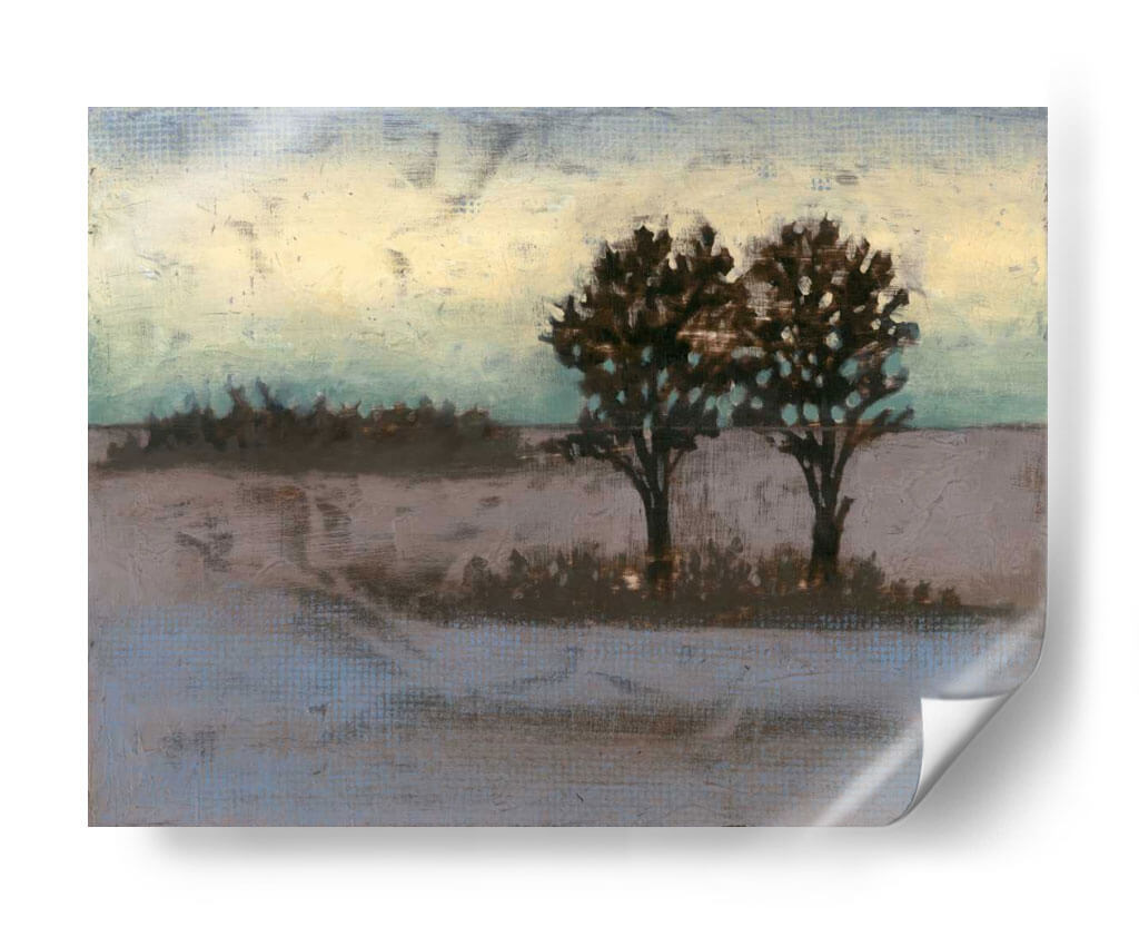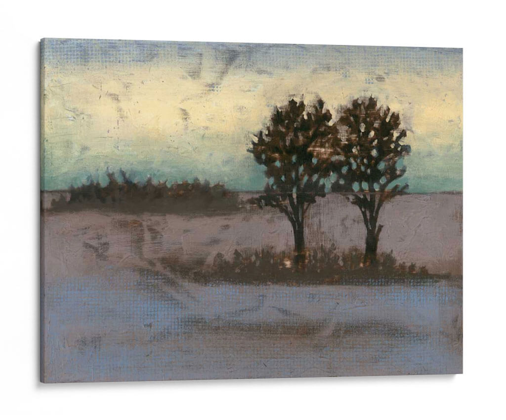 Sumérgete en la serena belleza del paisaje rural con "Rústico Prado II", una obra de arte contemporáneo que captura la esencia de la naturaleza en su forma más evocadora. La artista Jennifer Goldberger nos transporta a un campo tranquilo, dominado por dos árboles robustos cuyas siluetas oscuras contrastan con un cielo etéreo que transita entre tonos cálidos de amarillo pálido y azules verdosos sutiles. La paleta de colores, compuesta por tonos tierra, grises suaves y toques de aguamarina, crea una atmósfera de calma y contemplación, perfecta para añadir un toque de serenidad a cualquier espacio. Las pinceladas texturizadas y el estilo semi-abstracto invitan a la introspección, sugiriendo la belleza efímera de un atardecer o amanecer en el campo. Este cuadro decorativo es ideal para salones, dormitorios o estudios, aportando un aire de sofisticación rústica y una conexión palpable con la naturaleza. "Rústico Prado II" no es solo una pieza decorativa, sino una ventana a un momento de paz y reflexión, un recordatorio de la belleza que se encuentra en la simplicidad del mundo natural, transformando cualquier pared en un refugio de tranquilidad y estilo.
