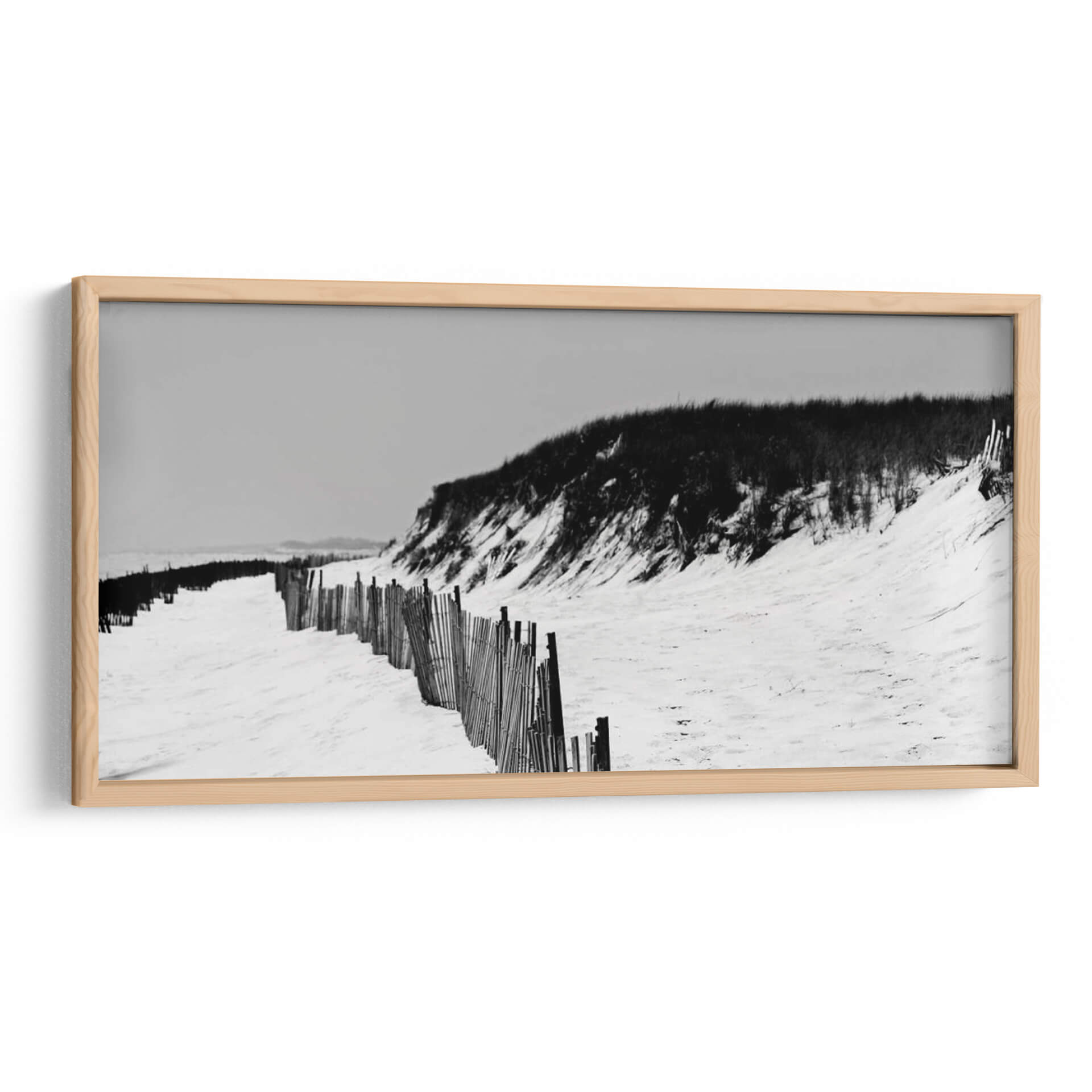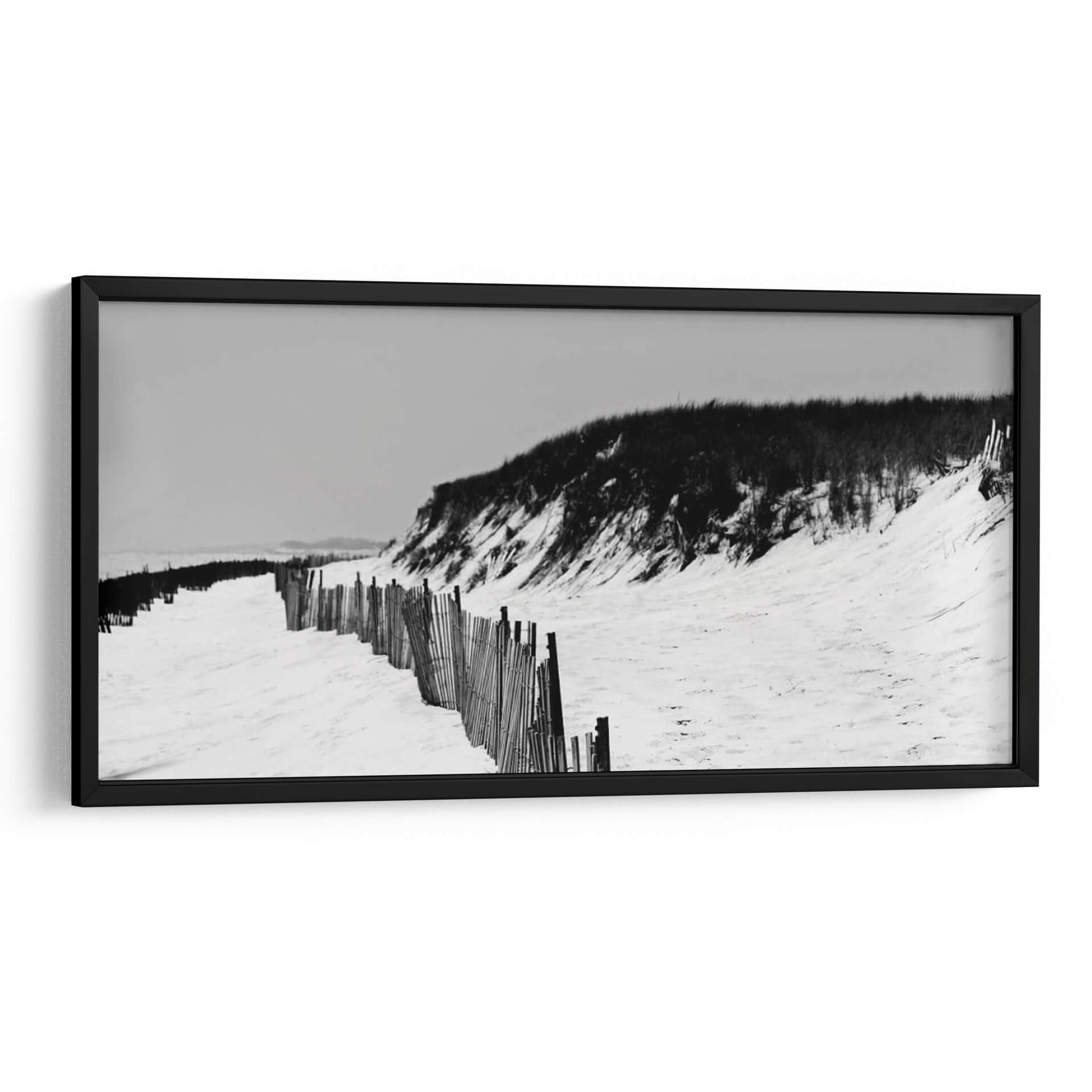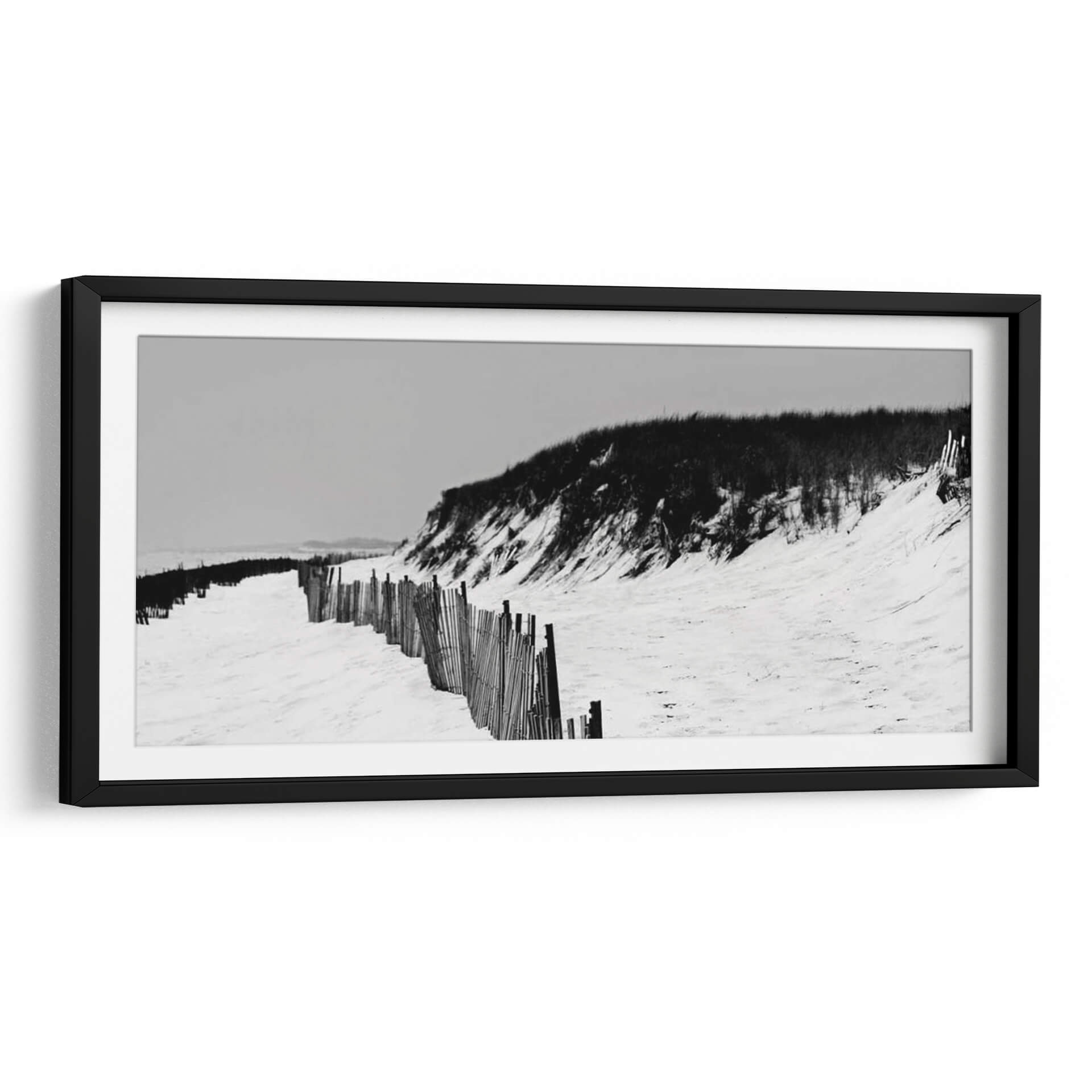 Sumérgete en la serena belleza de "Shore Panorama I" de Jeff Pica, una obra de arte que captura la esencia etérea de una costa invernal. Este cuadro decorativo en blanco y negro presenta una perspectiva panorámica de dunas de arena cubiertas de nieve, delineadas por una hilera de vallas rústicas de madera. La iluminación suave y la paleta monocromática crean una atmósfera de calma profunda y contemplación, invitando a la reflexión sobre la quietud de la naturaleza y la resistencia del paisaje ante los elementos. Los detalles sutiles en la textura de la nieve y la vegetación escasa añaden una capa de realismo introspectivo, haciendo de esta pieza un punto focal sereno para cualquier espacio. Ideal para salones, dormitorios u oficinas que busquen un toque de elegancia minimalista y una conexión con la tranquilidad del mar en su versión más despojada. Este cuadro es perfecto para quienes aprecian la fotografía de paisajes y el arte que evoca paz y soledad.