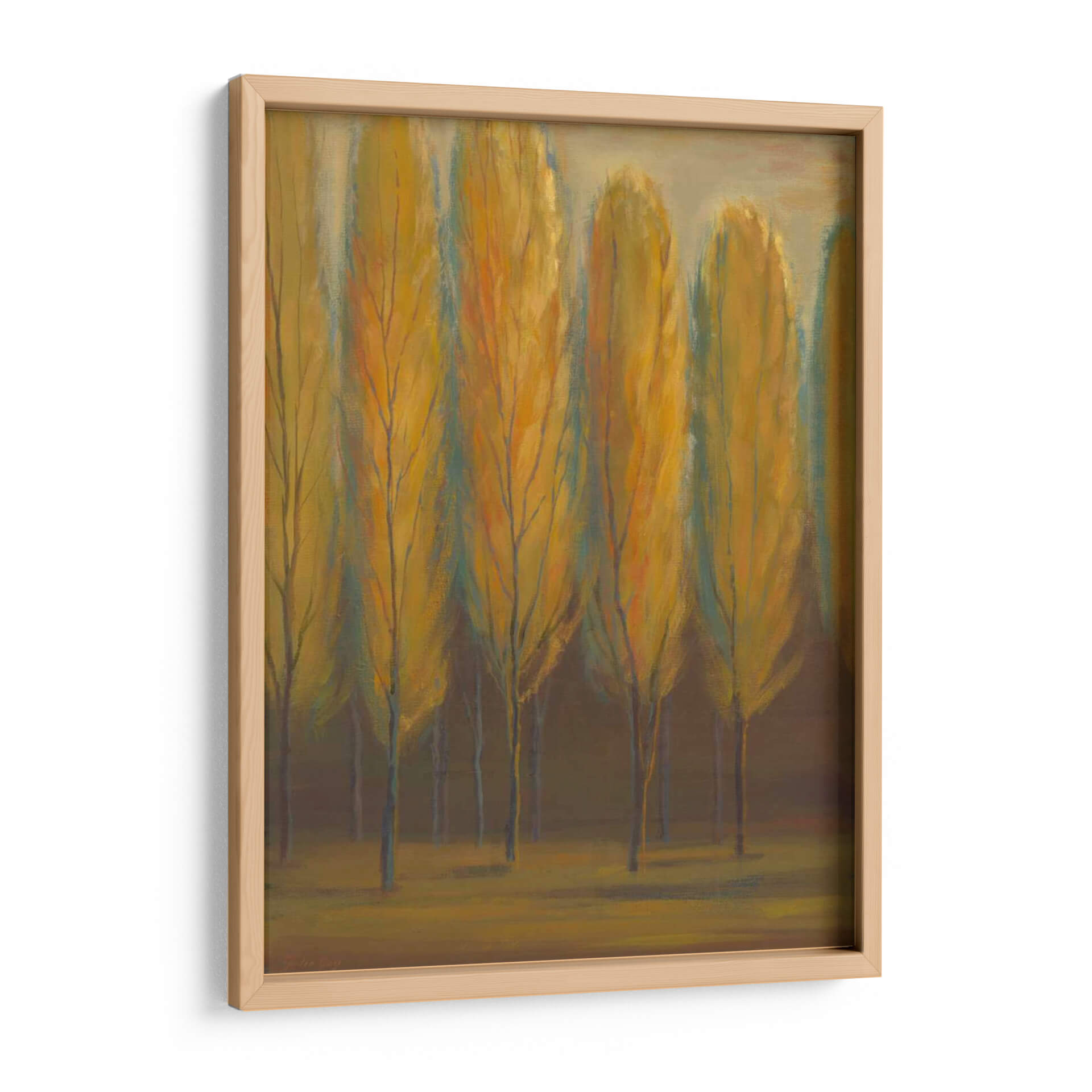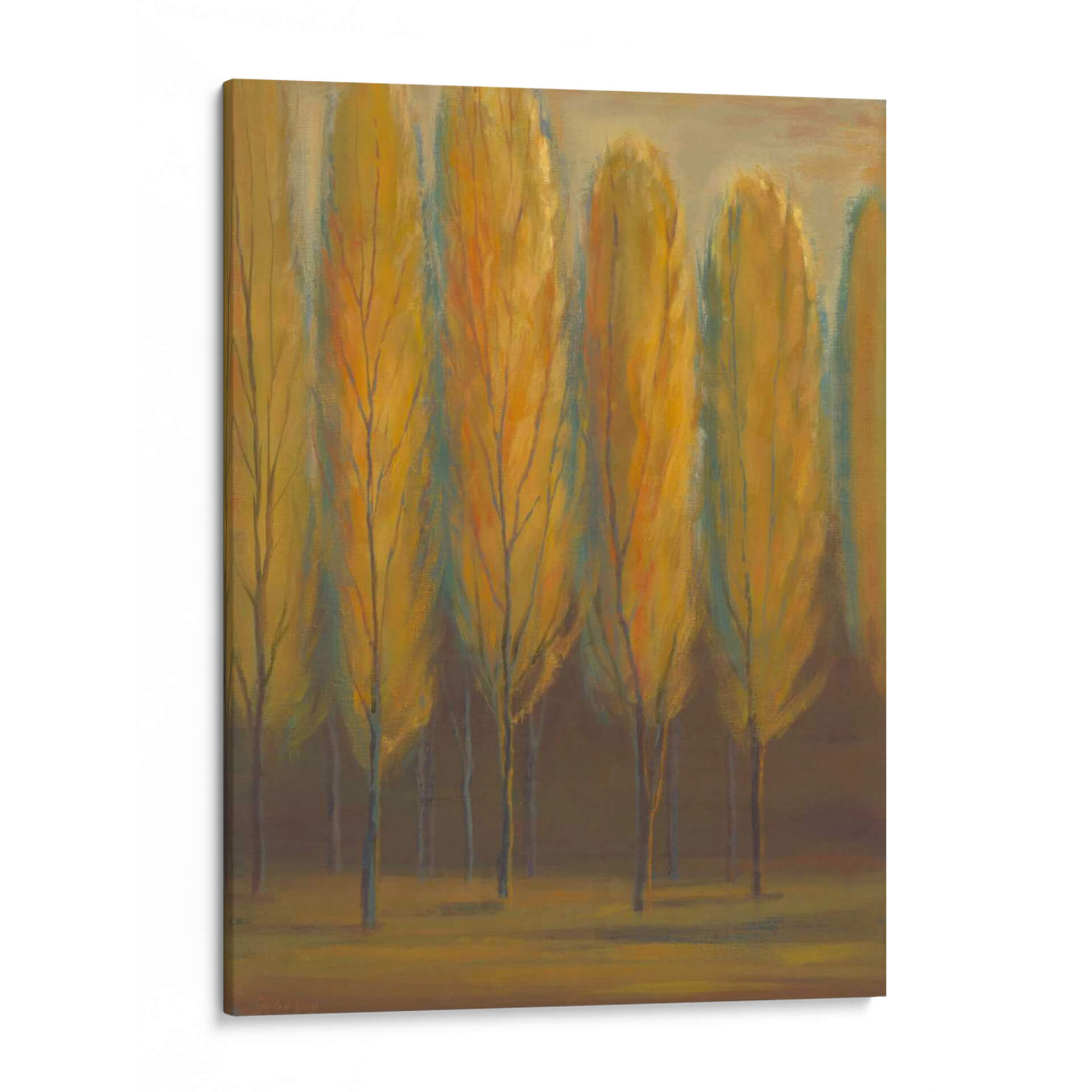 Sumérgete en la serena belleza de "Siena Soft", una obra de arte contemporáneo que captura la esencia de un bosque otoñal con una paleta de colores cálidos y envolventes. Las esbeltas siluetas de los árboles, bañadas en tonos dorados, ocres y toques de verde azulado, crean una atmósfera de profunda calma y contemplación. El estilo, que evoca el impresionismo con pinceladas sueltas y un enfoque en la luz y el color, transforma la escena en una experiencia visual meditativa. Cada árbol, representado con un tronco delgado y delicadas ramas, parece susurrar historias de estaciones pasadas, invitando a la reflexión. Este cuadro decorativo es ideal para espacios que buscan un refugio de paz y elegancia, como un dormitorio principal, un estudio tranquilo o una sala de estar que desee transmitir serenidad. Su composición vertical y la profundidad sugerida por las sombras invitan a la mirada a adentrarse en el paisaje, creando una conexión íntima con la naturaleza. "Siena Soft" no es solo una pieza decorativa, sino una ventana a un momento de tranquilidad, perfecta para quienes aprecian el arte que calma el alma y embellece el hogar con una estética atemporal y sofisticada.