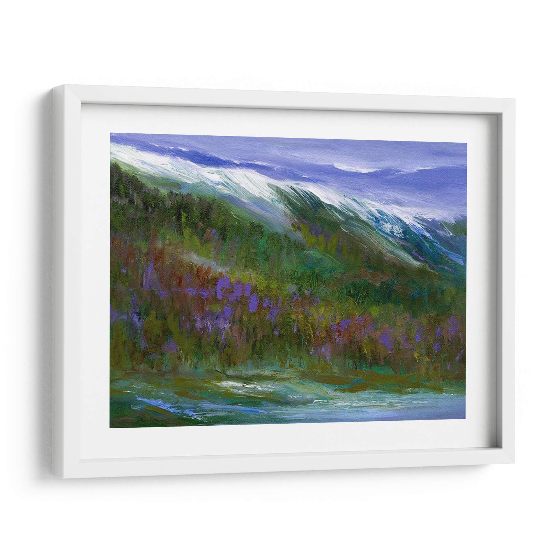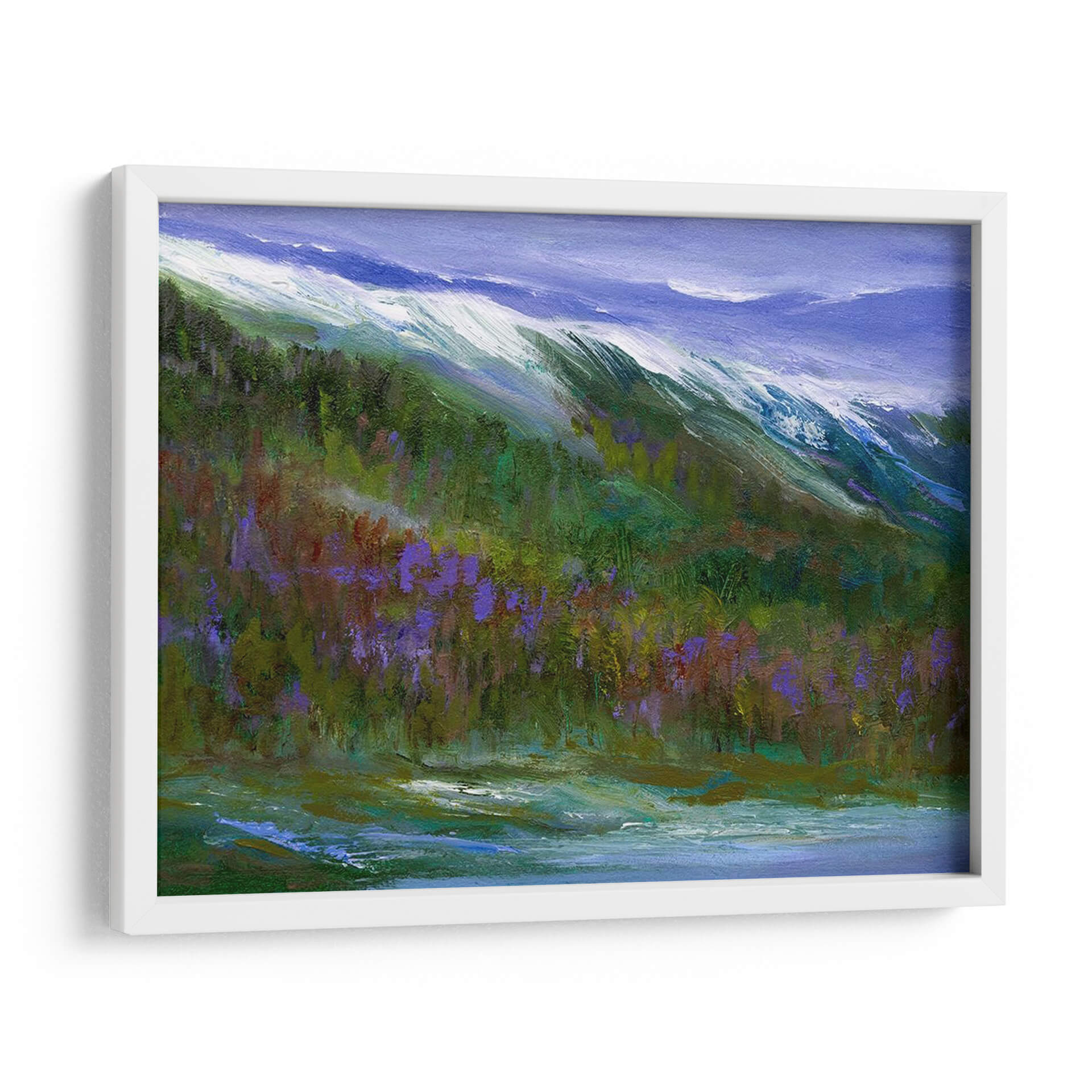 Sumérgete en la majestuosidad de la naturaleza con "Sierras", una cautivadora obra de arte de Sheila Finch. Este cuadro decorativo captura la esencia serena de una cadena montañosa, donde las cumbres nevadas se funden con el cielo en un abrazo etéreo. La paleta de colores, dominada por verdes profundos, toques vibrantes de púrpura y el blanco níveo de la nieve, evoca una sensación de paz y asombro ante la grandeza del paisaje. La pincelada impresionista de Finch da vida a la textura de los árboles y la fluidez del agua en primer plano, invitando a la contemplación. Ideal para añadir un toque de calma y sofisticación a tu sala de estar, dormitorio u oficina, "Sierras" es más que una simple decoración; es una ventana a la serenidad de la montaña que transformará tu espacio en un refugio de tranquilidad. Descubre la belleza del arte contemporáneo que inspira y renueva.