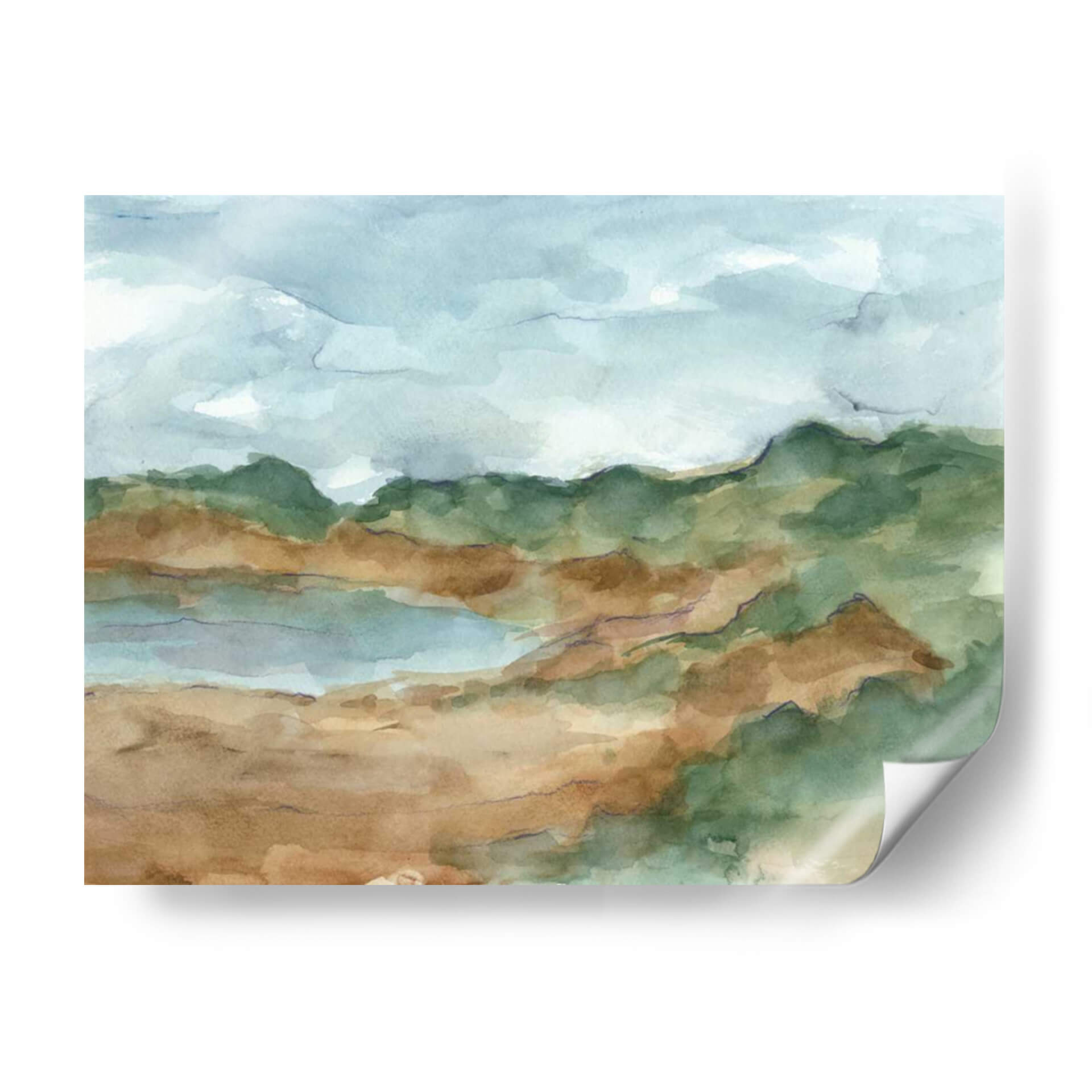 Sumérgete en la serenidad del paisaje con "Sketchbook De Acuarela Viii", una obra de arte que captura la esencia de la naturaleza con trazos etéreos y una paleta de colores inspirada en la tierra. Este cuadro decorativo, del artista Ethan Harper, presenta una composición abstracta de colinas ondulantes, cuerpos de agua serenos y un cielo nublado, todo ejecutado con la delicadeza de la acuarela. Los tonos tierra, verdes profundos y azules celestes se mezclan armoniosamente, creando una atmósfera de calma y contemplación. Las pinceladas sueltas y las texturas orgánicas invitan a la introspección, haciendo de esta pieza un refugio visual para tu hogar u oficina. Ideal para quienes buscan añadir un toque de naturaleza y tranquilidad a su decoración, este cuadro es perfecto para espacios que buscan un equilibrio entre lo moderno y lo orgánico. Su estilo abstracto permite que se integre fácilmente en diversas estéticas, desde la nórdica hasta la contemporánea, aportando una dosis de arte orgánico y relajante. "Sketchbook De Acuarela Viii" no es solo una imagen, es una invitación a conectar con la belleza sutil del mundo natural y a encontrar paz en tu entorno.