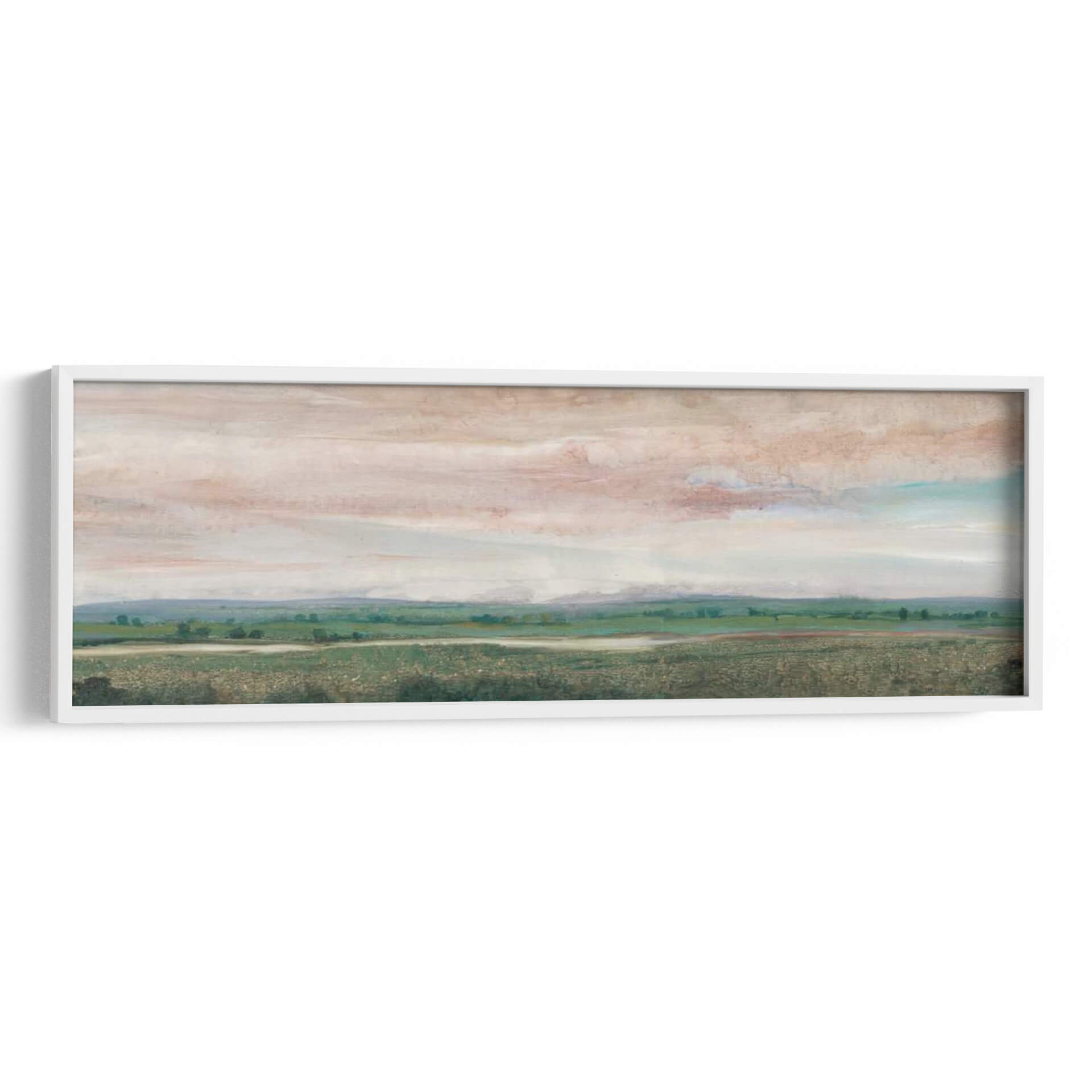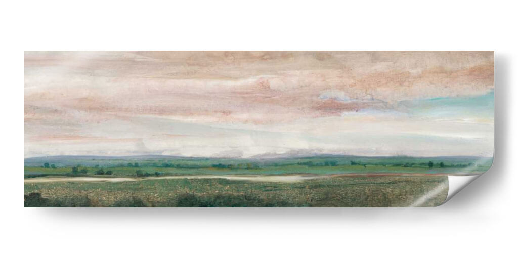 Transporta tu imaginación a paisajes serenos y evocadores con "Sky Line Ii", una obra de arte contemporáneo que captura la esencia de un horizonte tranquilo. Este cuadro decorativo, pintado por Tim O'Toole, despliega una paleta de colores suaves y terrosos, dominada por tonos pastel en el cielo que se funden con verdes exuberantes en la tierra. La composición, de estilo impresionista, sugiere una vista panorámica de campos abiertos y un cielo cargado de nubes sutiles, creando una atmósfera de calma y contemplación. Cada pincelada evoca la sensación del aire libre y la inmensidad de la naturaleza, invitando a la reflexión y al descanso visual. Ideal para salones que buscan un toque de elegancia natural, dormitorios que anhelan paz o estudios que inspiran serenidad, "Sky Line Ii" es más que una decoración; es una ventana a un mundo de tranquilidad. Añade esta pieza a tu colección y transforma cualquier espacio en un santuario personal de belleza y calma. Una elección perfecta para quienes aprecian el arte paisajístico sutil y lleno de atmósfera.