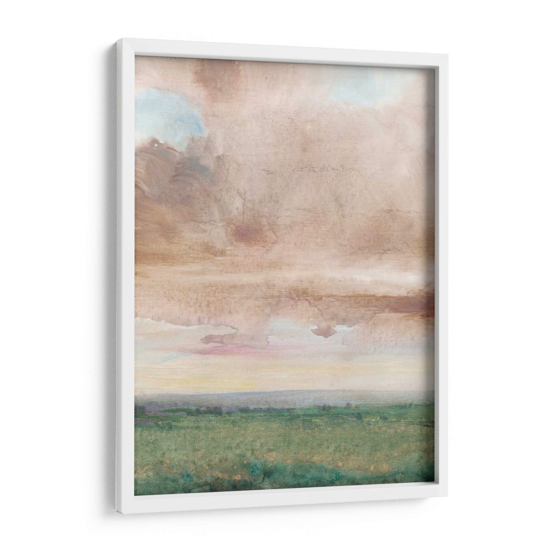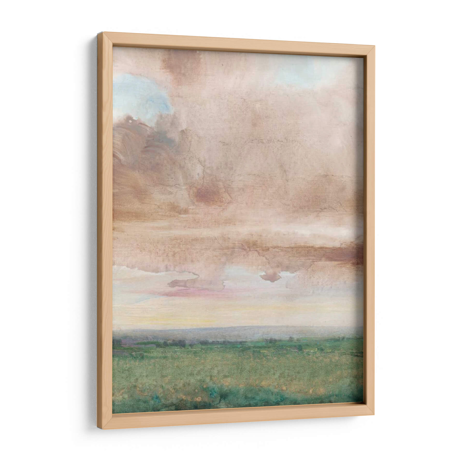 Sumérgete en la serenidad de "Sky Line III", una cautivadora obra de arte de Tim O'Toole que evoca la inmensidad y la calma de un paisaje abierto. Esta pieza se caracteriza por su atmósfera etérea, donde un cielo texturizado en tonos cálidos de ocre, marrón y sutiles toques de rosa y azul pálido se funde con un horizonte apenas perceptible. Debajo, un vibrante campo de hierba verde se extiende, sugiriendo vida y naturaleza en su estado más puro. La técnica pictórica, con pinceladas sueltas y un juego de luces y sombras que recuerda al impresionismo, crea una sensación de profundidad y movimiento. Es un cuadro decorativo ideal para aquellos que buscan añadir un toque de paz y conexión con la naturaleza a su hogar u oficina. Su paleta de colores terrosos y suaves lo convierte en una adición versátil para cualquier espacio, aportando una sensación de tranquilidad y contemplación. "Sky Line III" no es solo una imagen, es una invitación a la introspección y al disfrute de la belleza serena del mundo natural, transformando cualquier pared en una ventana hacia un paisaje soñado y apacible.