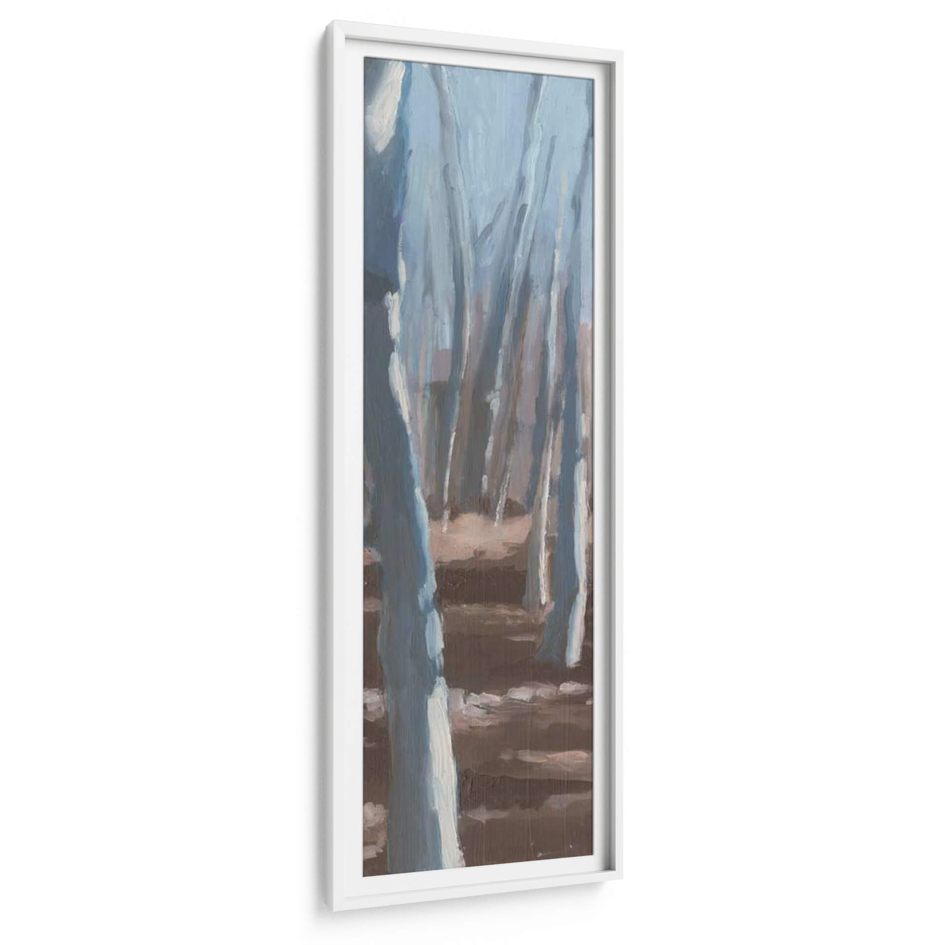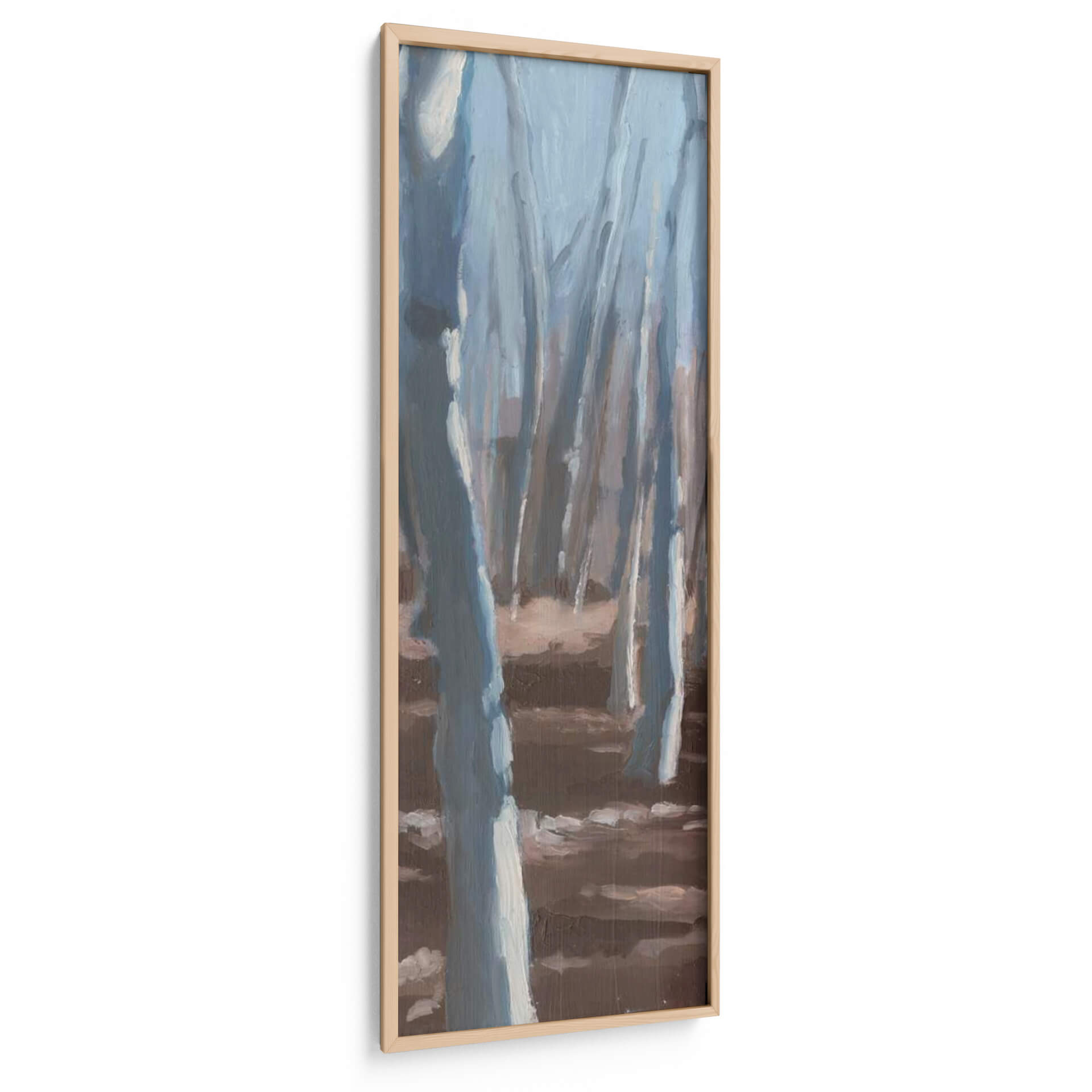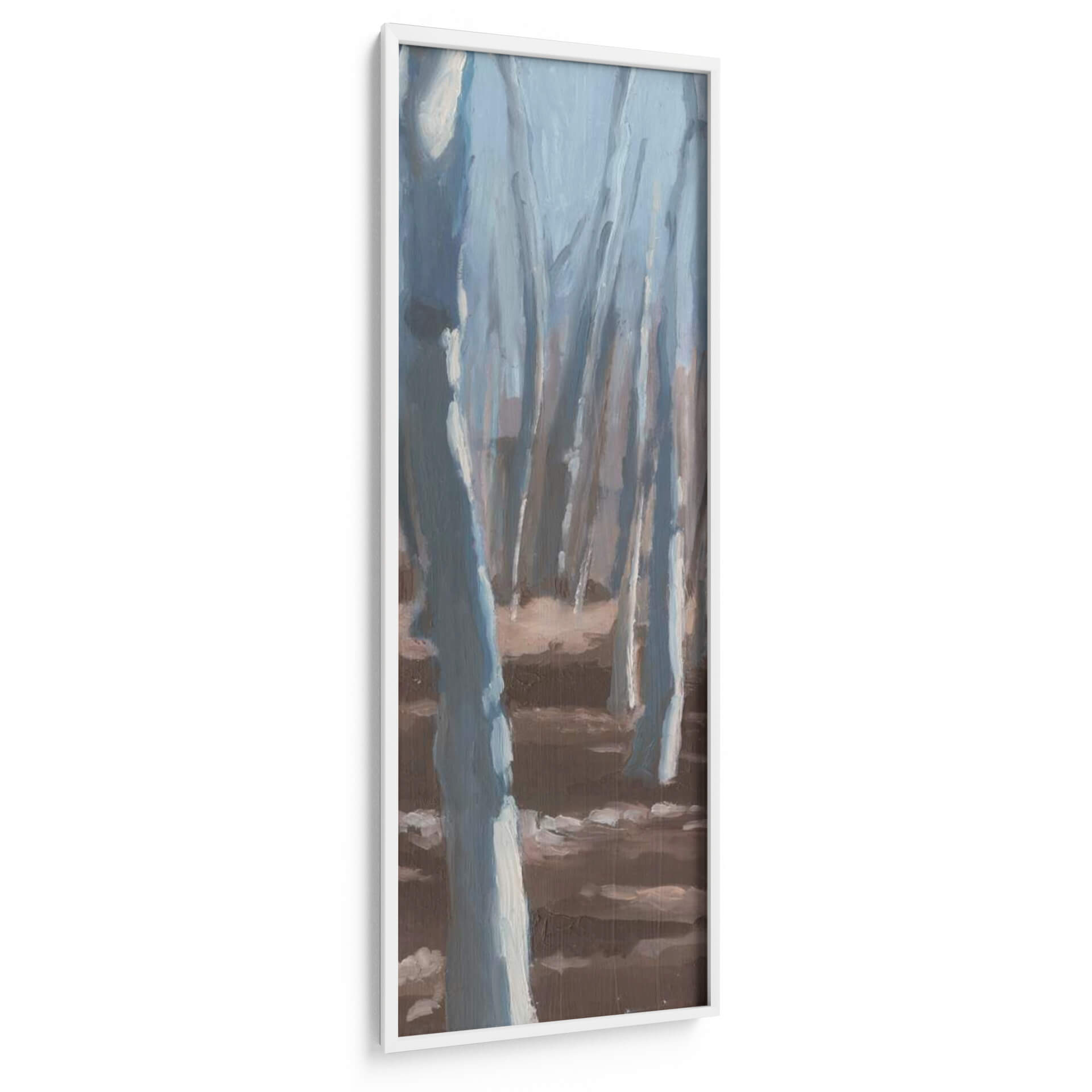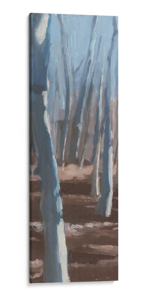 Sumérgete en la serena belleza del invierno con 'Solsticio de Invierno III', una obra de arte que captura la esencia de la temporada con una paleta de colores sutil y evocadora. Este cuadro decorativo presenta un paisaje boscoso estilizado, donde los troncos de los árboles se alzan como guardianes silenciosos bajo un cielo teñido de azules pálidos y grises. Las pinceladas sueltas y expresivas transmiten una sensación de movimiento y vida, a pesar de la quietud inherente al invierno. El suelo, representado con tonos tierra y ocres, contrasta suavemente con los azules fríos, creando una atmósfera de calma y contemplación. Esta pieza de Ethan Harper es perfecta para añadir un toque de naturaleza y tranquilidad a cualquier espacio, desde un acogedor salón hasta una oficina serena. Imagina este cuadro decorativo como un portal a un momento de paz invernal, ideal para quienes buscan una conexión con la naturaleza y una decoración que inspire reflexión y serenidad. Su composición vertical lo hace especialmente adecuado para pasillos o espacios estrechos que necesiten una presencia artística elegante y atemporal.
