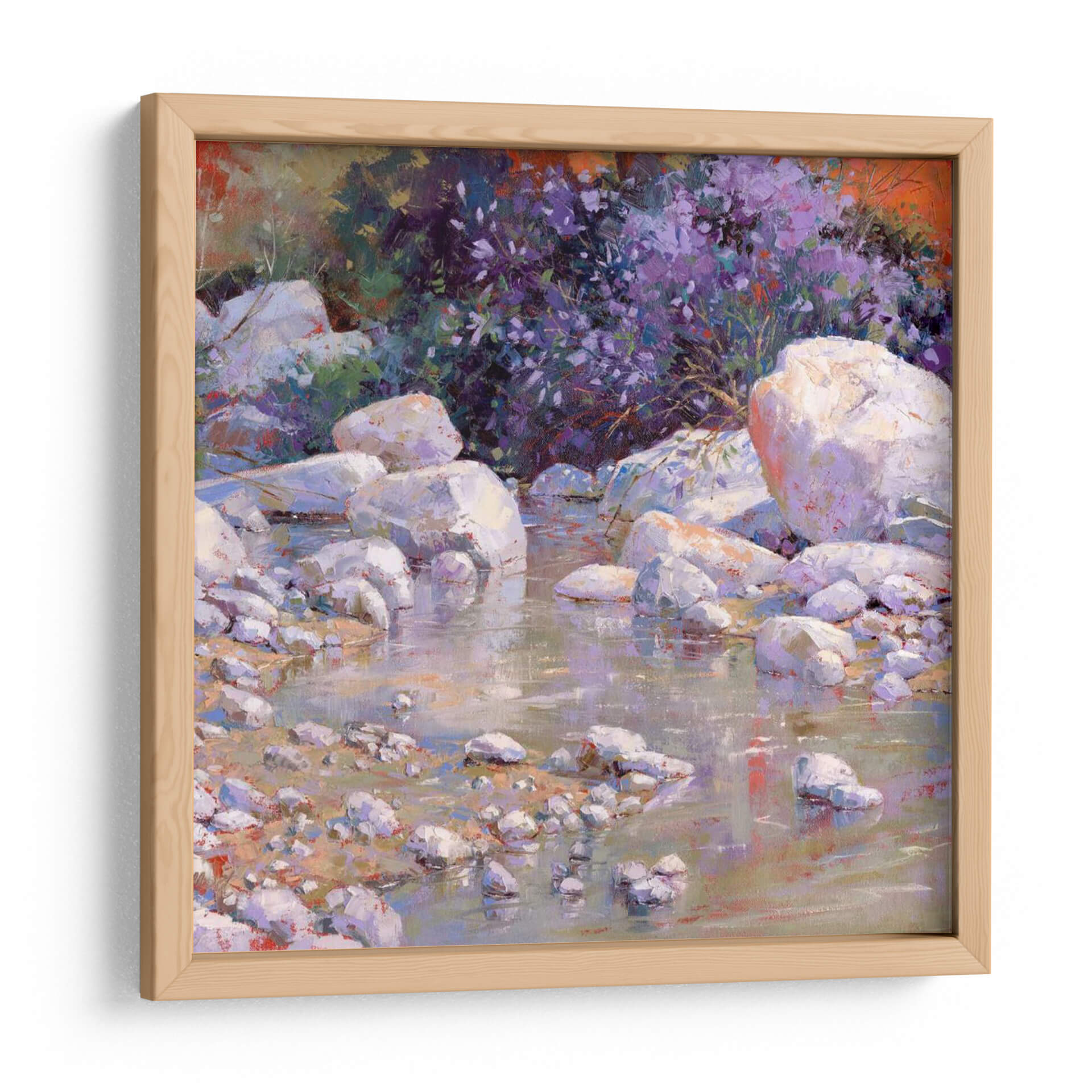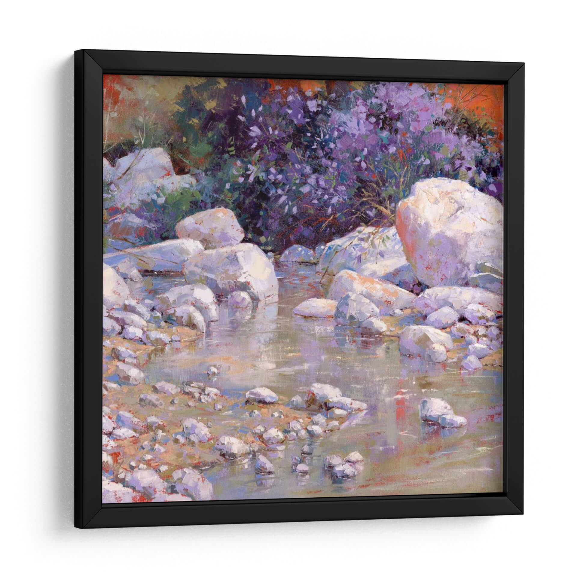 Sumérgete en la serenidad del desierto con "Sorpresa Del Desierto", una obra de arte que captura la belleza inesperada de un oasis escondido. La pieza presenta un vibrante estallido de flores moradas y follaje exuberante, enmarcado por grandes rocas de tonos claros y un arroyo sereno que fluye a través de un paisaje árido. La paleta de colores es una sinfonía de morados intensos, blancos luminosos, ocres terrosos y toques de naranja quemado, creando una atmósfera de paz y descubrimiento. La técnica pictórica, con pinceladas visibles y una rica textura, aporta profundidad y vitalidad a la escena, invitando al espectador a sentir la frescura del agua y la calidez del sol. Este cuadro decorativo es ideal para añadir un toque de naturaleza y tranquilidad a cualquier espacio, desde un salón moderno hasta un dormitorio acogedor, transformando tu hogar en un refugio personal. Es una pieza que evoca la resiliencia y la belleza oculta, perfecta para aquellos que aprecian la sutileza de la naturaleza en su máxima expresión. Añade esta impresionante obra a tu colección y deja que su magia impregne tu ambiente.