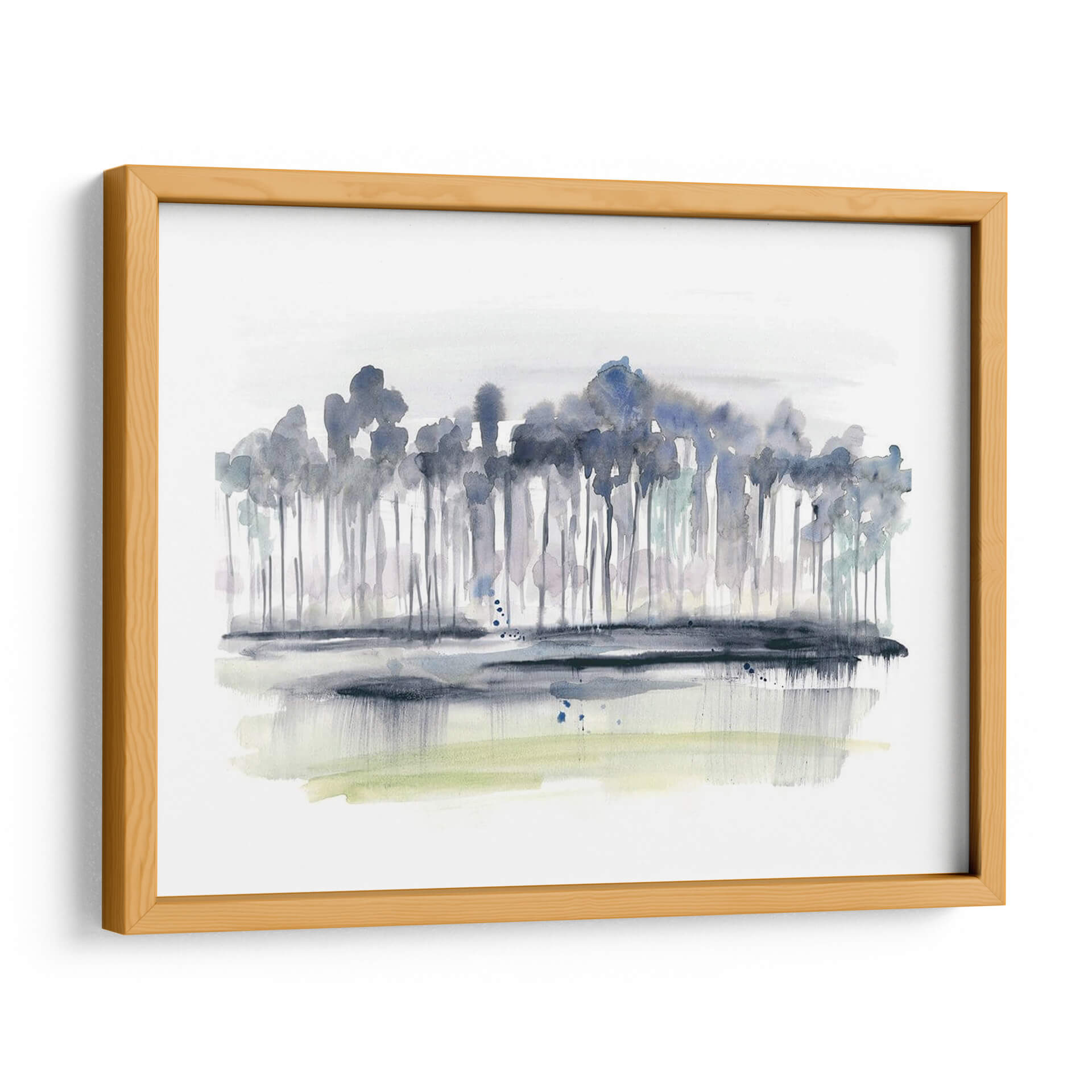 Sumérgete en la serenidad de 'Splash II Treeline', una obra de arte contemporáneo que evoca la atmósfera de un paisaje boscoso bañado por una luz tenue. Jennifer Goldberger captura con maestría la esencia de un bosque a través de trazos etéreos y una paleta de colores suave, dominada por tonos grises, azules profundos y toques sutiles de verde y ocre. La técnica de acuarela, aplicada con soltura, crea una sensación de movimiento y profundidad, con las formas de los árboles desdibujándose en el fondo y reflejándose en un plano de agua sereno. Este cuadro decorativo es ideal para añadir un toque de calma y sofisticación a cualquier espacio, ya sea una sala de estar, un dormitorio o una oficina que busque un refugio visual. La composición abstracta, aunque inspirada en la naturaleza, permite una interpretación personal, invitando a la contemplación y al sosiego. 'Splash II Treeline' es más que una simple pieza decorativa; es una invitación a la tranquilidad y a la conexión con la naturaleza a través del arte.