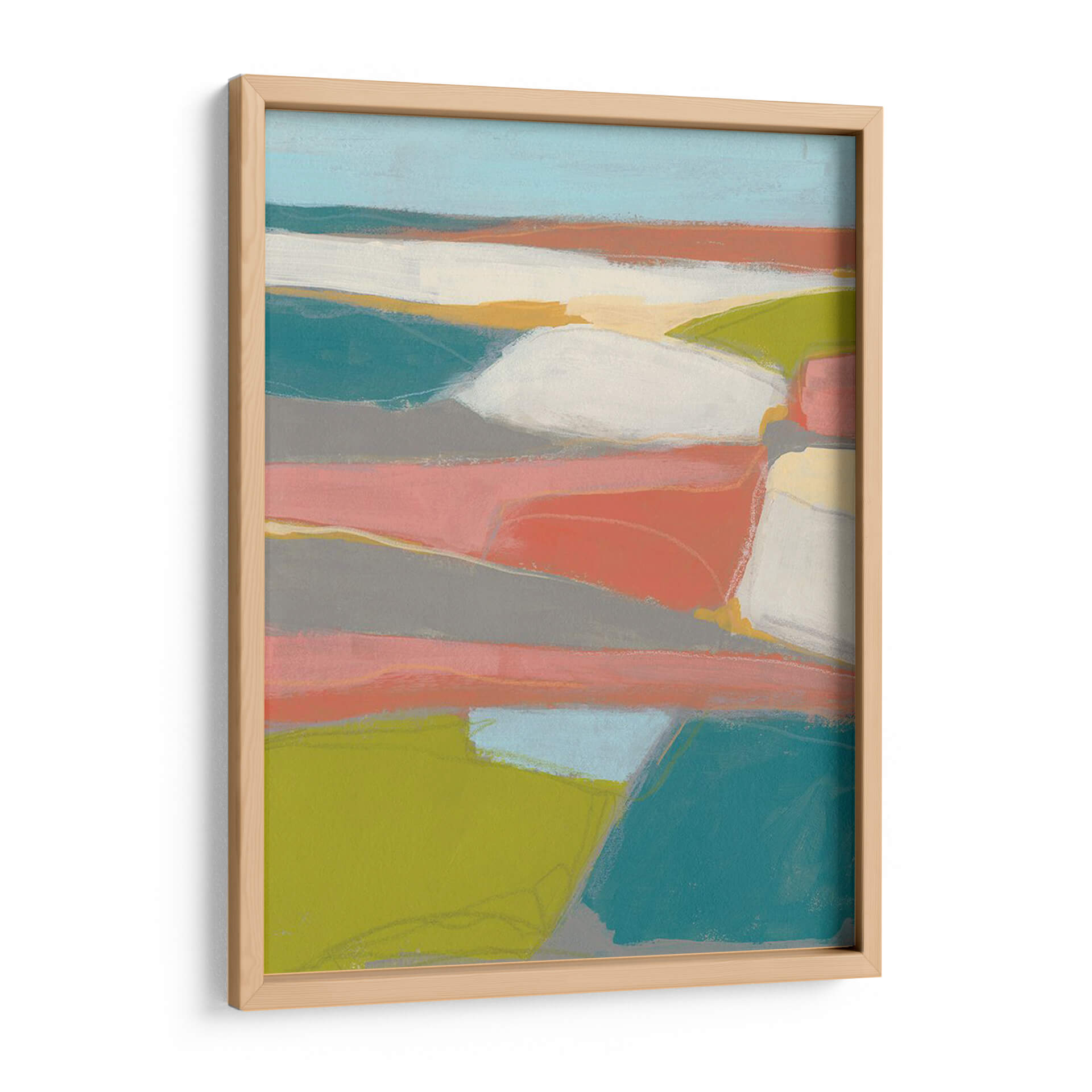 Sumérgete en la serenidad abstracta de "Sun Valley II", una cautivadora obra de arte de June Erica Vess que transforma el paisaje en una sinfonía de formas y colores. Esta pieza explora capas horizontales y orgánicas, evocando la sensación de un valle bañado por la luz del sol, con un cielo azul claro que se funde con la tierra en una danza de texturas y tonalidades. Los bloques de color vibrante, que incluyen corales, verdes intensos, grises suaves y blancos puros, se entrelazan con delicadeza, creando una composición dinámica pero equilibrada. Las pinceladas audaces y el trazo sutil sugieren un enfoque expresionista moderno, invitando a la contemplación y añadiendo profundidad visual. "Sun Valley II" es más que un simple cuadro; es una invitación a la calma y a la belleza del mundo natural, interpretada a través de una lente contemporánea. Ideal para espacios que buscan un toque de color y sofisticación, este cuadro decorativo es perfecto para salas de estar, dormitorios o estudios, aportando una atmósfera de tranquilidad y estilo.