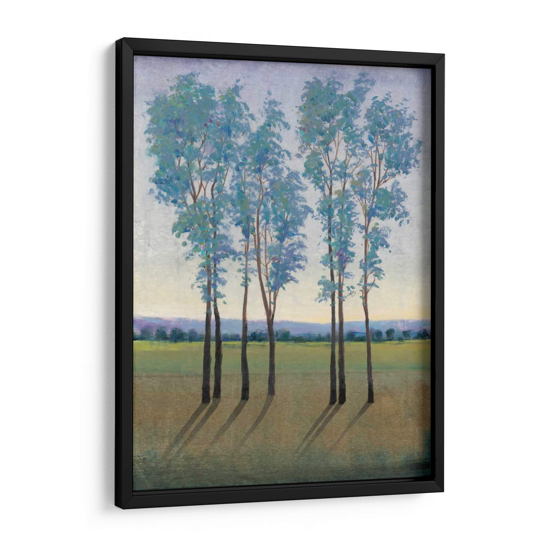 Sumérgete en la serenidad del paisaje con "Superficie Yo", una obra de arte que captura la esencia de un bosque tranquilo bañado por la luz del atardecer. Este cuadro decorativo presenta una arboleda de álamos esbeltos, cuyas copas se visten de un vibrante azul verdoso, contrastando suavemente con los tonos tierra del suelo y la luz cálida del horizonte. La composición, con sus líneas verticales definidas por los troncos y las sombras alargadas que se proyectan, evoca una sensación de calma y profundidad. El estilo pictórico, con pinceladas sueltas y una paleta de colores que oscila entre los azules etéreos, verdes naturales y ocres cálidos, crea una atmósfera de paz y contemplación. "Superficie Yo" es ideal para añadir un toque de naturaleza serena y sofisticada a cualquier espacio, ya sea un salón, un dormitorio o una oficina que busque un refugio visual de la rutina diaria. Transforma tu hogar en un santuario de tranquilidad con este evocador cuadro decorativo.