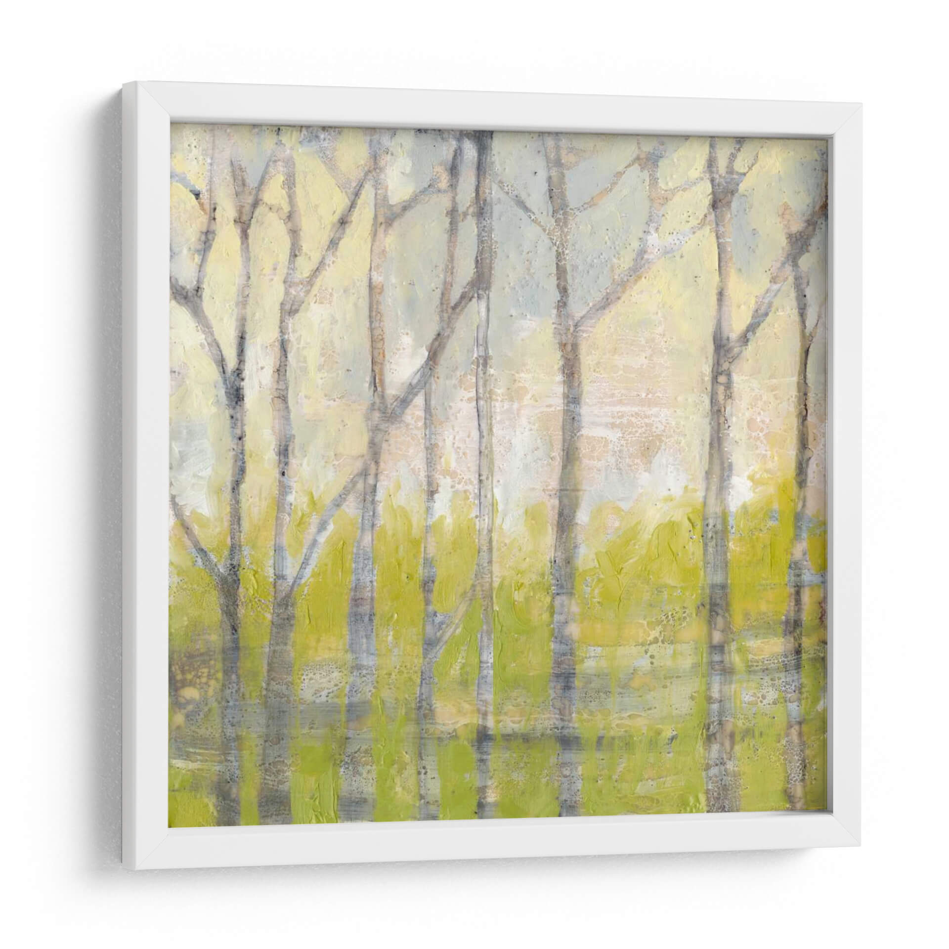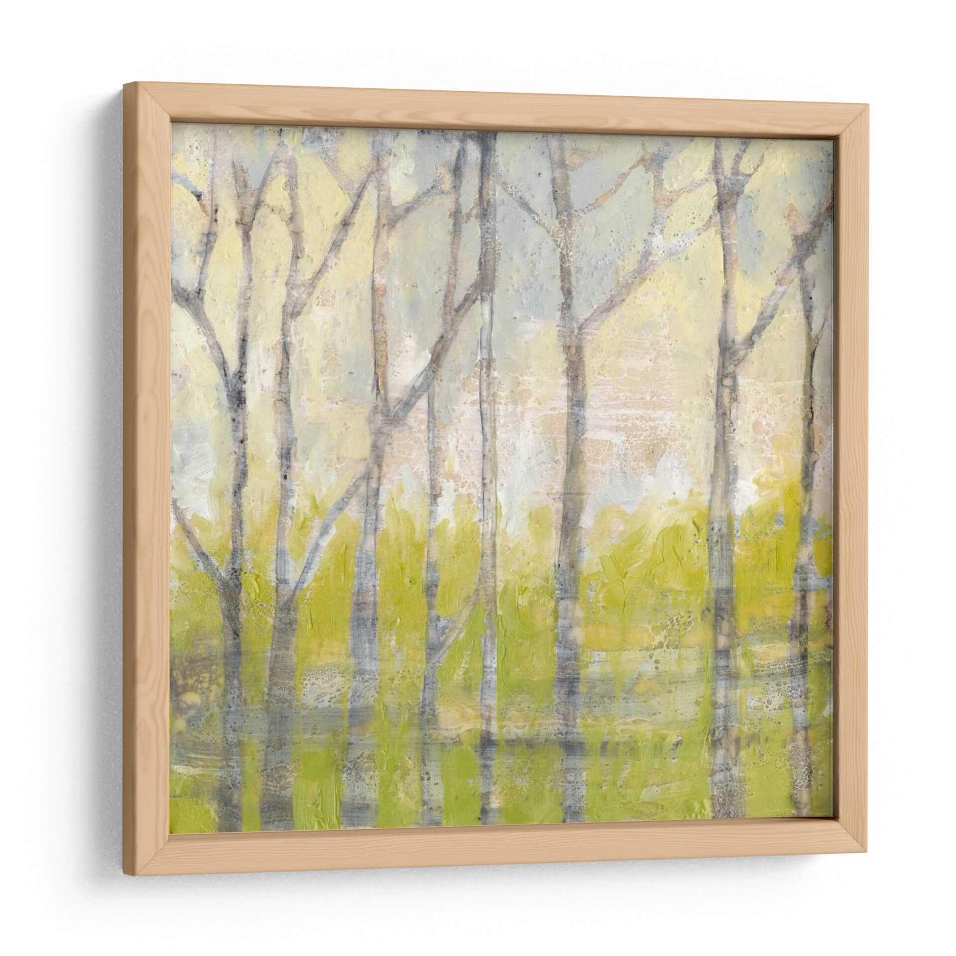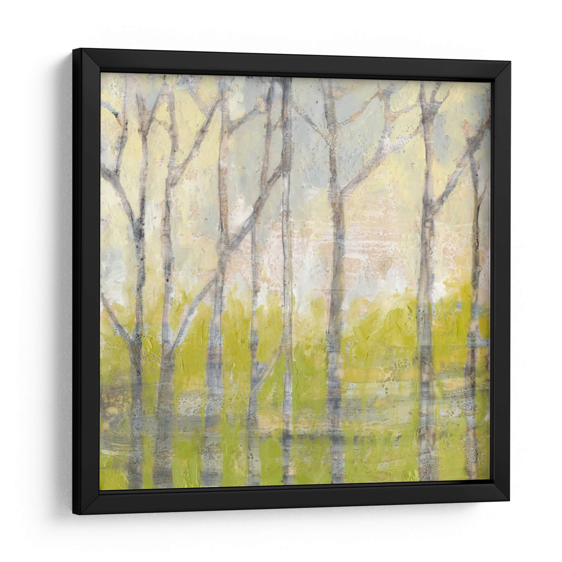 Sumérgete en la serena belleza de "Susurrando Treeline II", una cautivadora obra de arte de Jennifer Goldberger que evoca la tranquilidad de un bosque bañado por la luz. Las esbeltas siluetas de los árboles se alzan como guardianes silenciosos, enmarcados por una vibrante capa de follaje verde y un cielo difuminado en tonos pastel y amarillos cálidos. La técnica de Goldberger, caracterizada por sus pinceladas sueltas y texturas ricas, confiere a la pieza una cualidad casi etérea, invitando a la contemplación. Este cuadro decorativo es ideal para aquellos que buscan infundir calma y una conexión con la naturaleza en su hogar u oficina. Su paleta de colores suave y luminosa, dominada por verdes brillantes y amarillos tenues, complementa a la perfección espacios que buscan un toque de frescura y optimismo. "Susurrando Treeline II" no es solo una decoración, es una ventana a un paisaje interior que promueve la paz y la serenidad, convirtiéndose en un punto focal inspirador para cualquier estancia moderna o rústica.