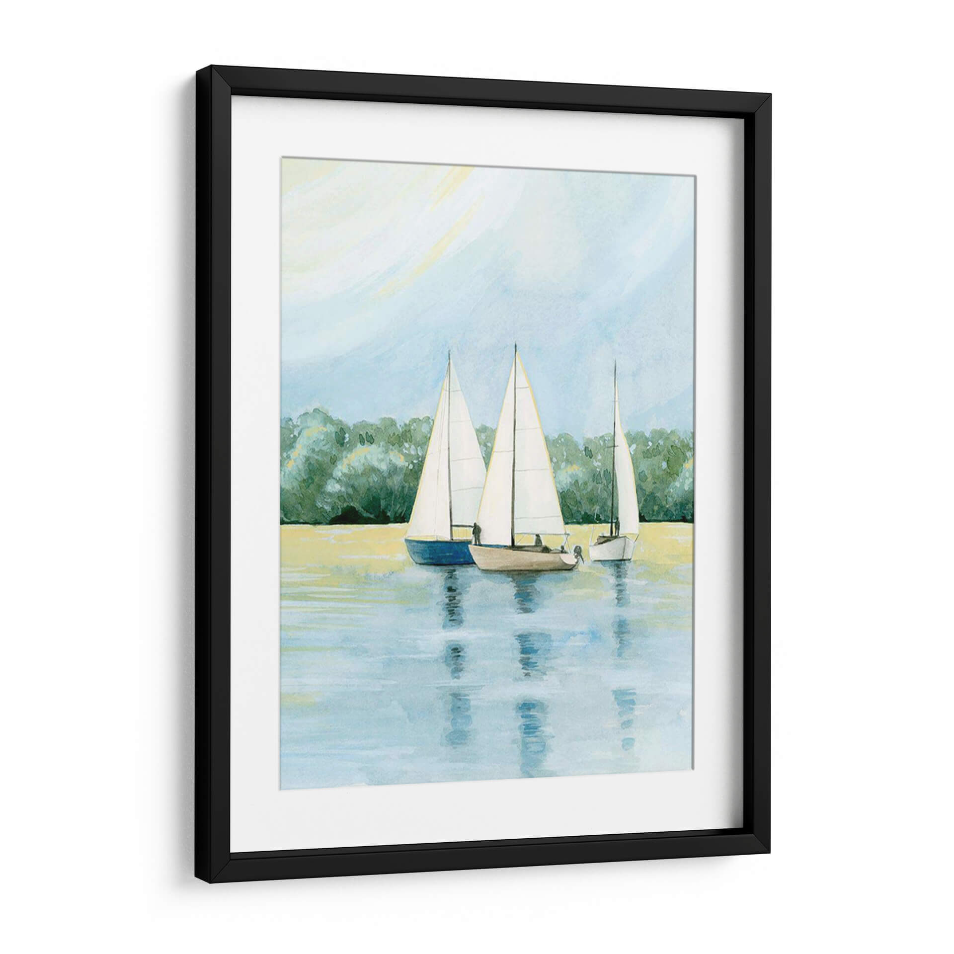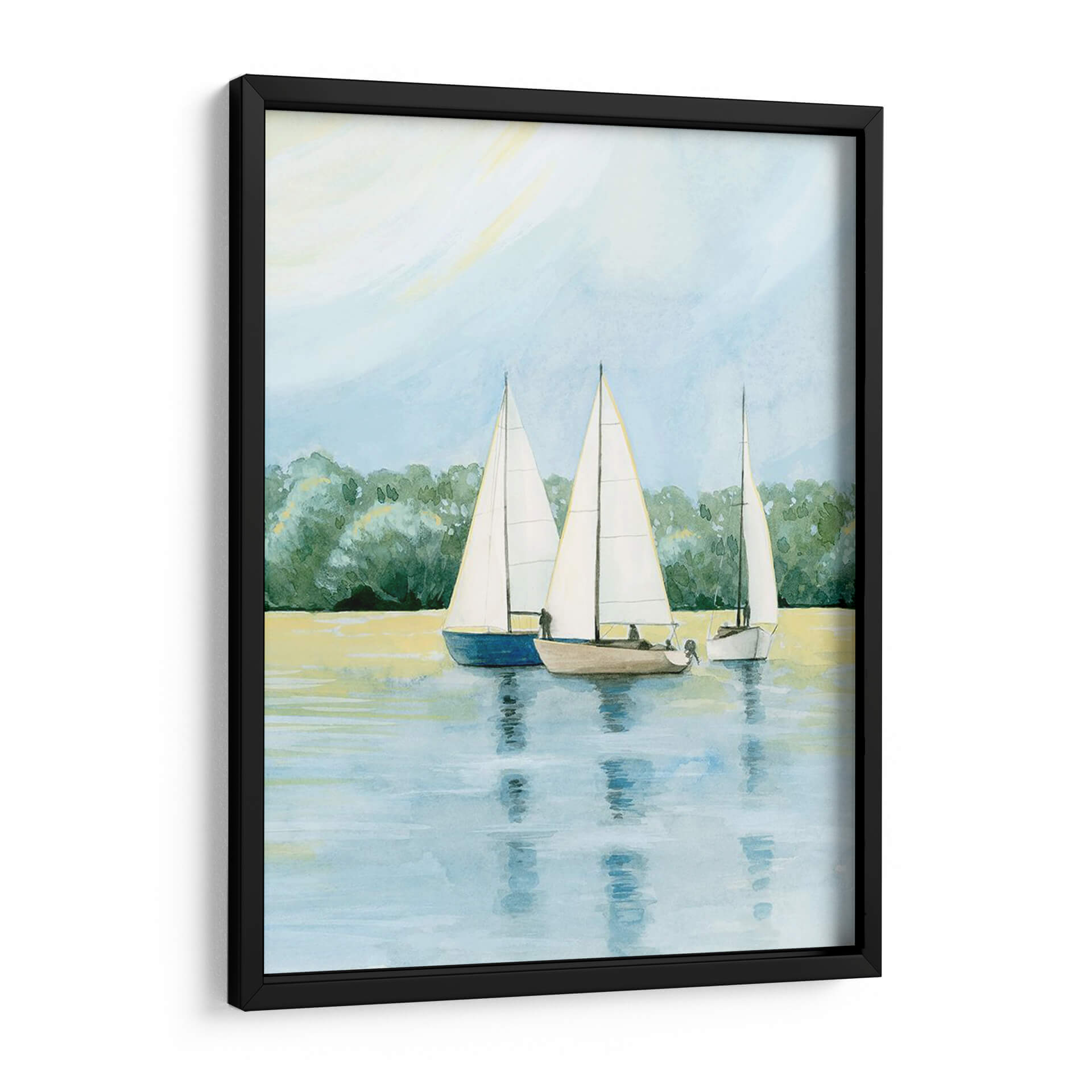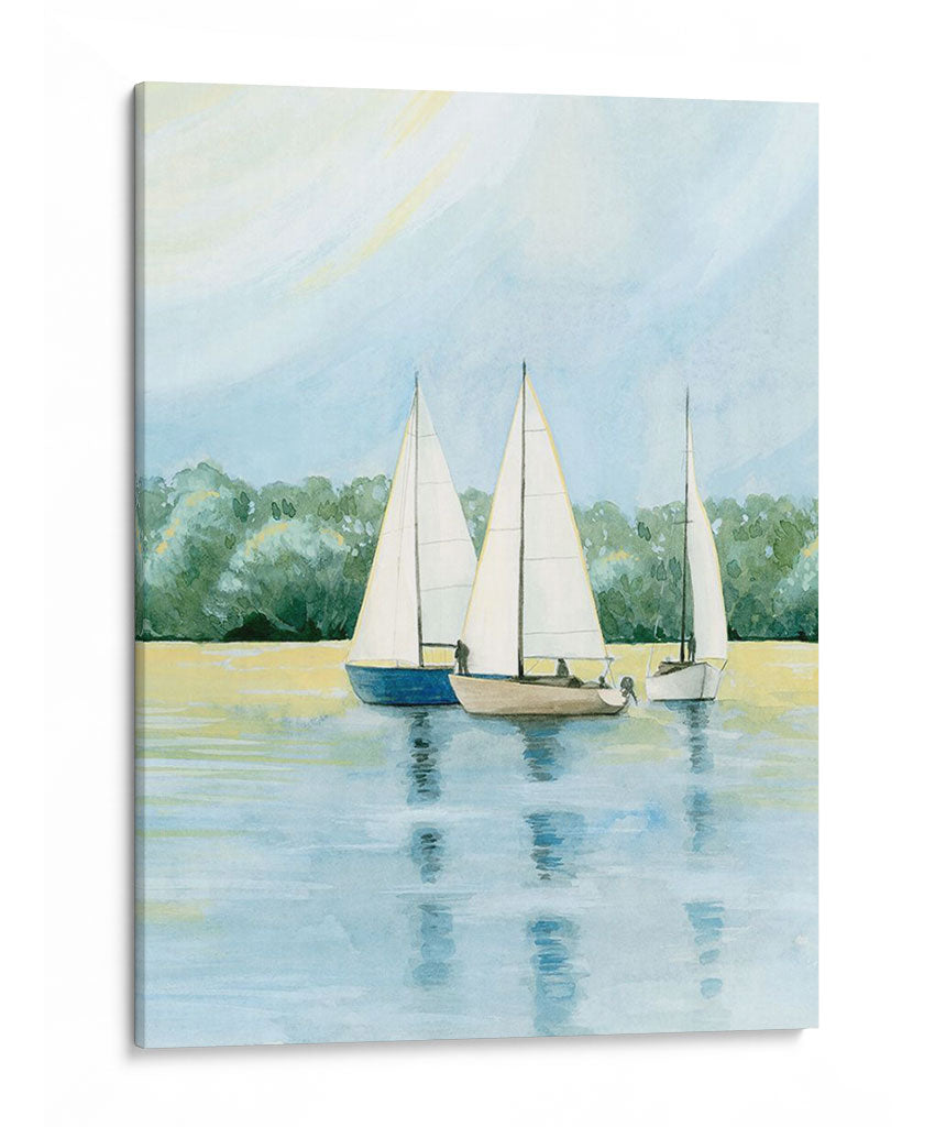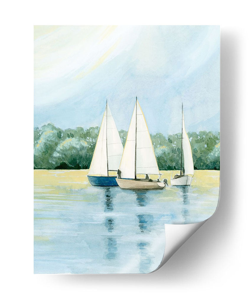Embárquese en un viaje sereno con "Tarde Zarpa Yo" de Grace Popp, una obra de arte que captura la tranquilidad de un día de navegación. Esta pieza presenta tres veleros navegando juntos en aguas tranquilas, con un exuberante fondo de árboles verdes que se funden con un cielo azul pálido y un toque de sol amarillo pálido. La paleta de colores, dominada por tonos azules, verdes y amarillos suaves, crea una atmósfera de calma y contemplación. El estilo, que recuerda a la acuarela, aporta una ligereza etérea a la escena, invitando a la reflexión y al escape. "Tarde Zarpa Yo" es ideal para añadir un toque de paz y naturaleza a cualquier espacio, ya sea una sala de estar, un dormitorio o una oficina. Este cuadro decorativo evoca la libertad del mar y la belleza de un momento de tranquilidad, convirtiéndolo en una adición perfecta para quienes buscan un refugio visual y una conexión con la naturaleza en su hogar. Su composición equilibrada y su temática náutica la hacen versátil para diversos estilos de decoración, desde el costero hasta el contemporáneo, aportando una dosis de serenidad y elegancia.