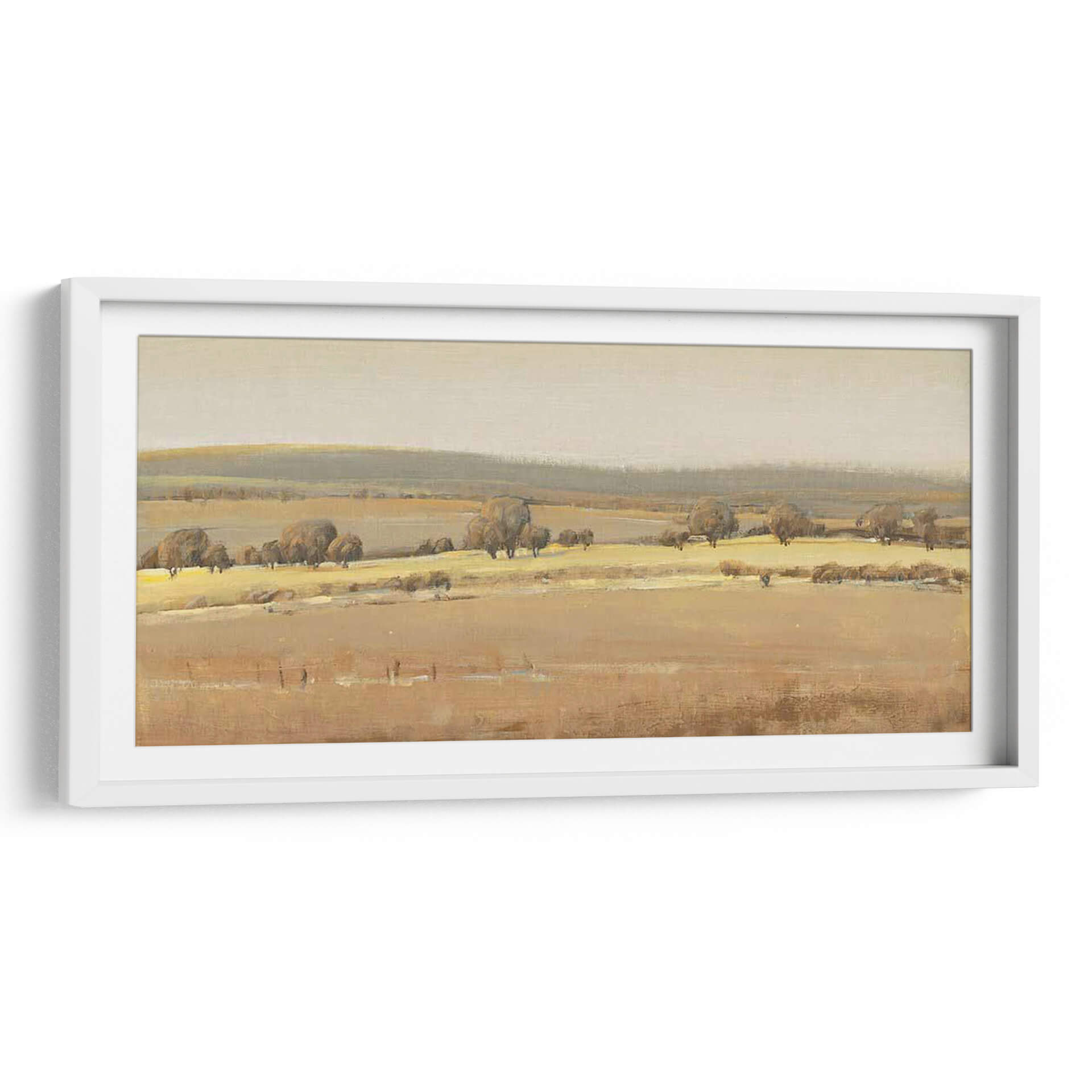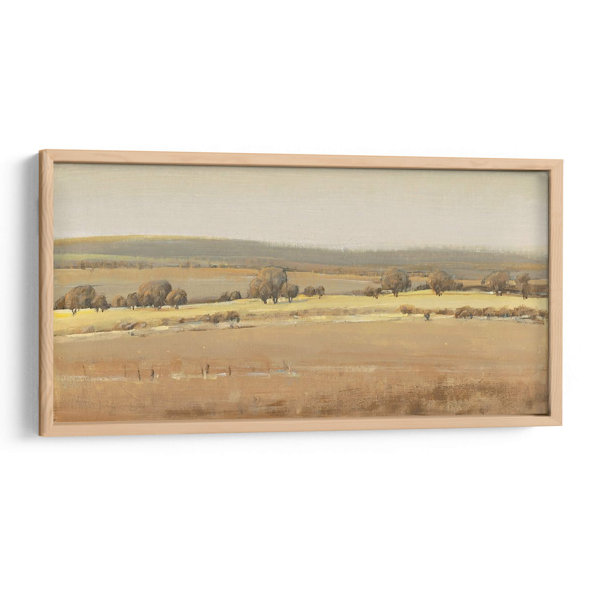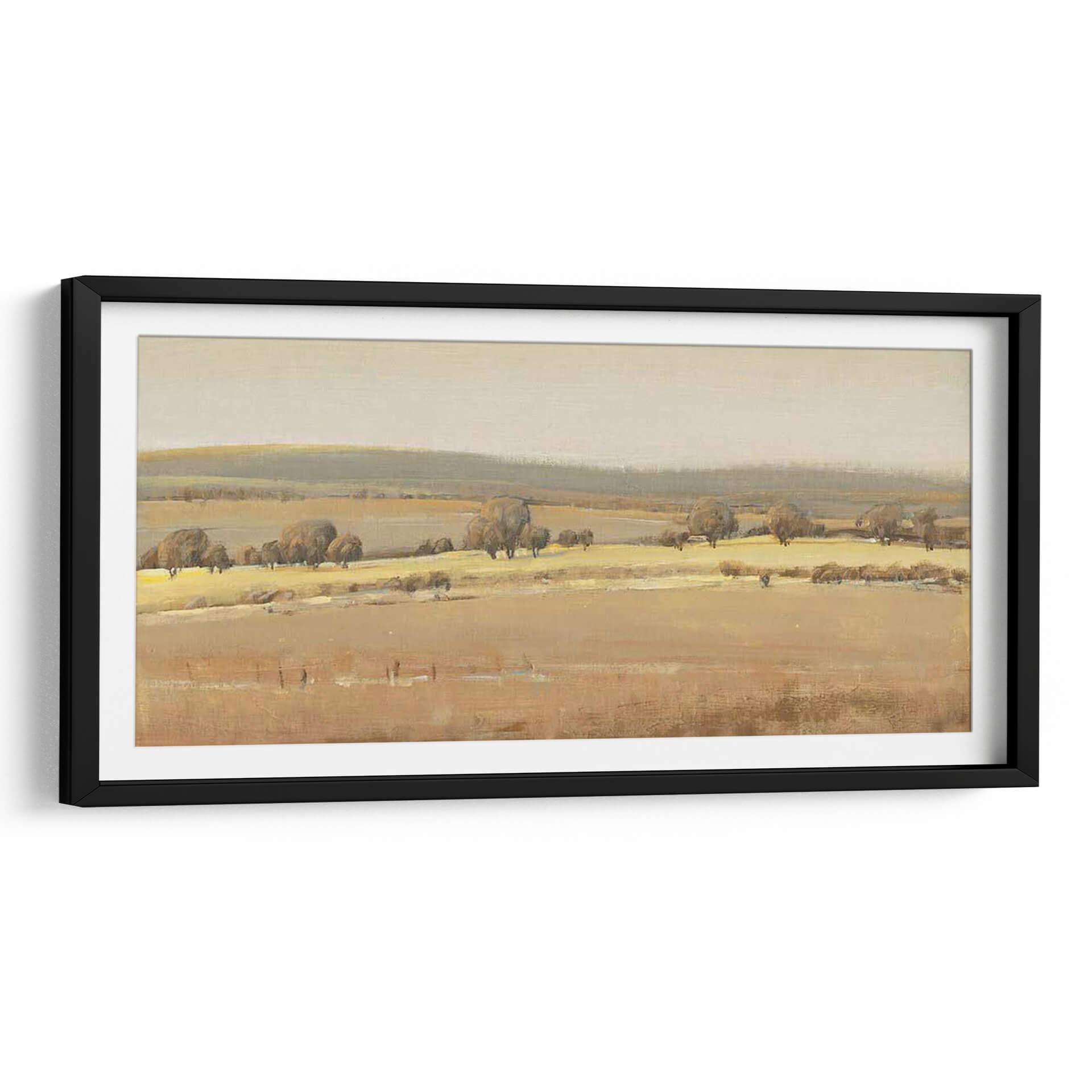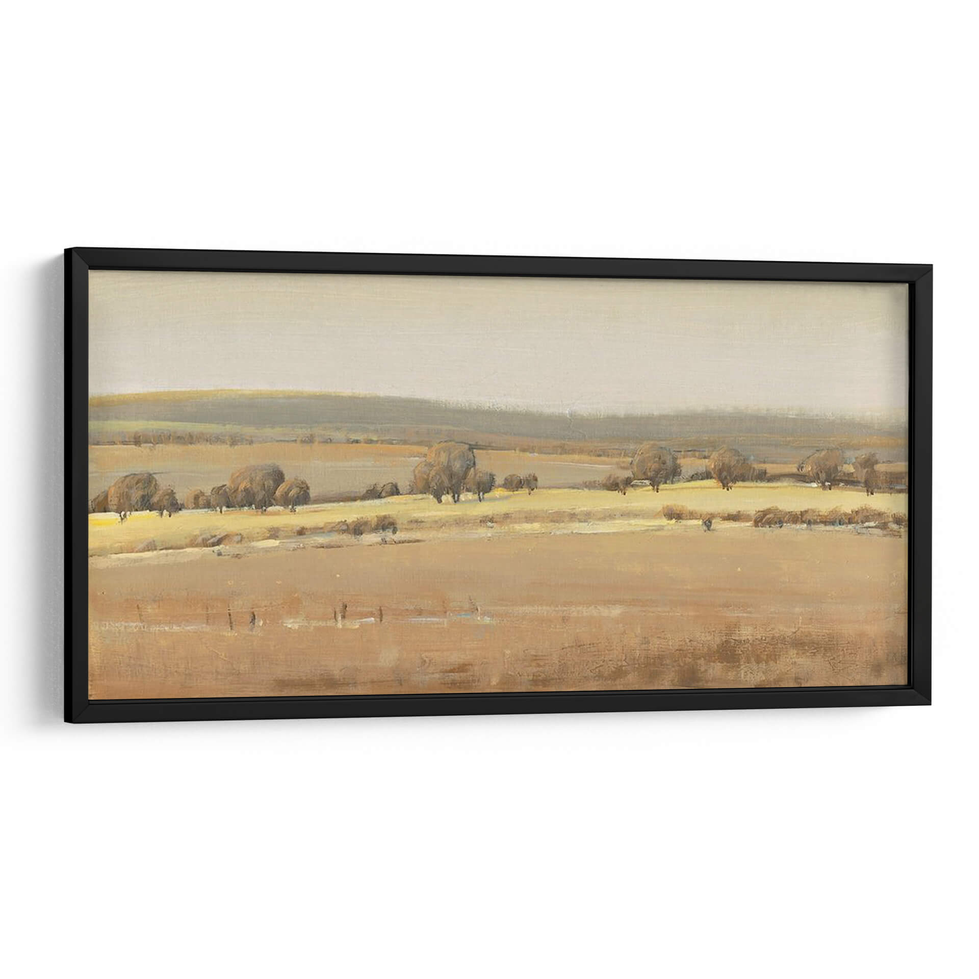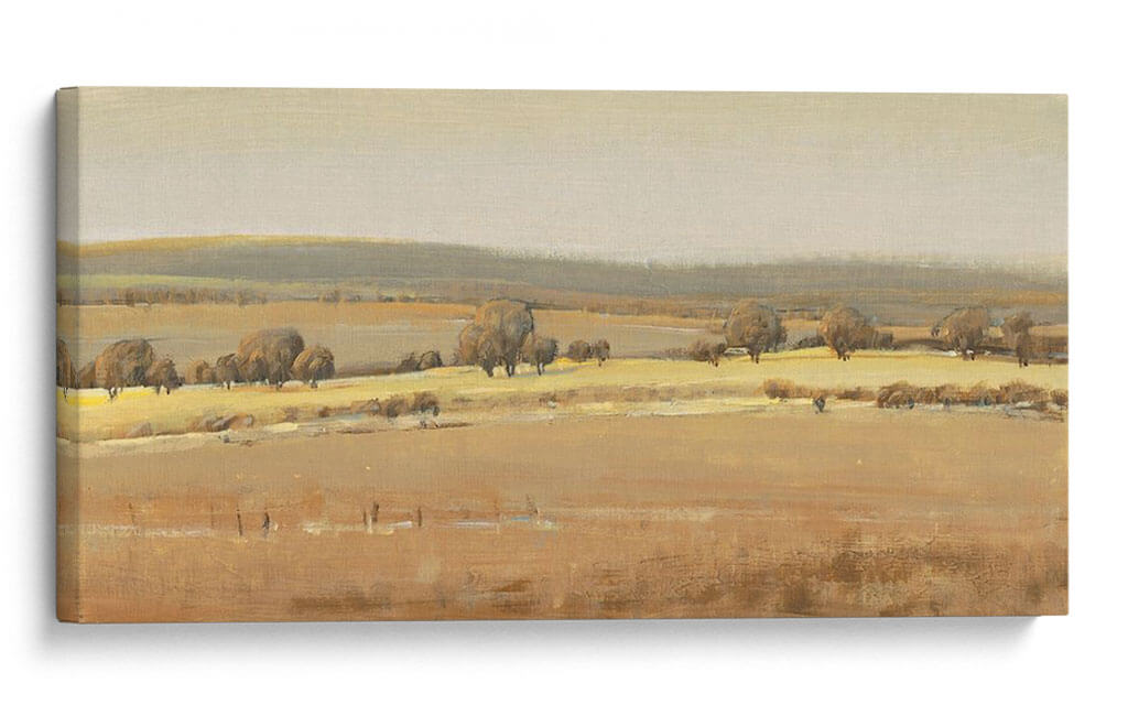Sumérgete en la serenidad del campo con "Temporadas Fin I", una obra de arte que captura la esencia de un paisaje atemporal. El artista Tim OToole nos presenta una escena bucólica donde las tonalidades ocres y doradas se funden con suaves grises y beige, evocando la calma de un atardecer otoñal o la quietud de una mañana brumosa. La composición se despliega en capas, desde el primer plano texturizado hasta las colinas ondulantes en el horizonte, creando una sensación de profundidad y amplitud. Los árboles dispersos, con sus formas orgánicas y sombras sutiles, añaden carácter y un toque de melancolía a la escena, invitando a la contemplación. Este cuadro decorativo es ideal para quienes buscan infundir paz y una conexión con la naturaleza en su hogar u oficina. Su paleta de colores terrosos lo hace versátil, complementando una amplia gama de estilos decorativos, desde rústico y tradicional hasta moderno y minimalista. "Temporadas Fin I" no es solo una pieza decorativa, sino una ventana a un momento de tranquilidad, perfecta para crear un rincón de relajación y reflexión en cualquier espacio, aportando una atmósfera de sosiego y belleza natural. Añade este lienzo a tu colección y transforma tu entorno en un refugio de paz.