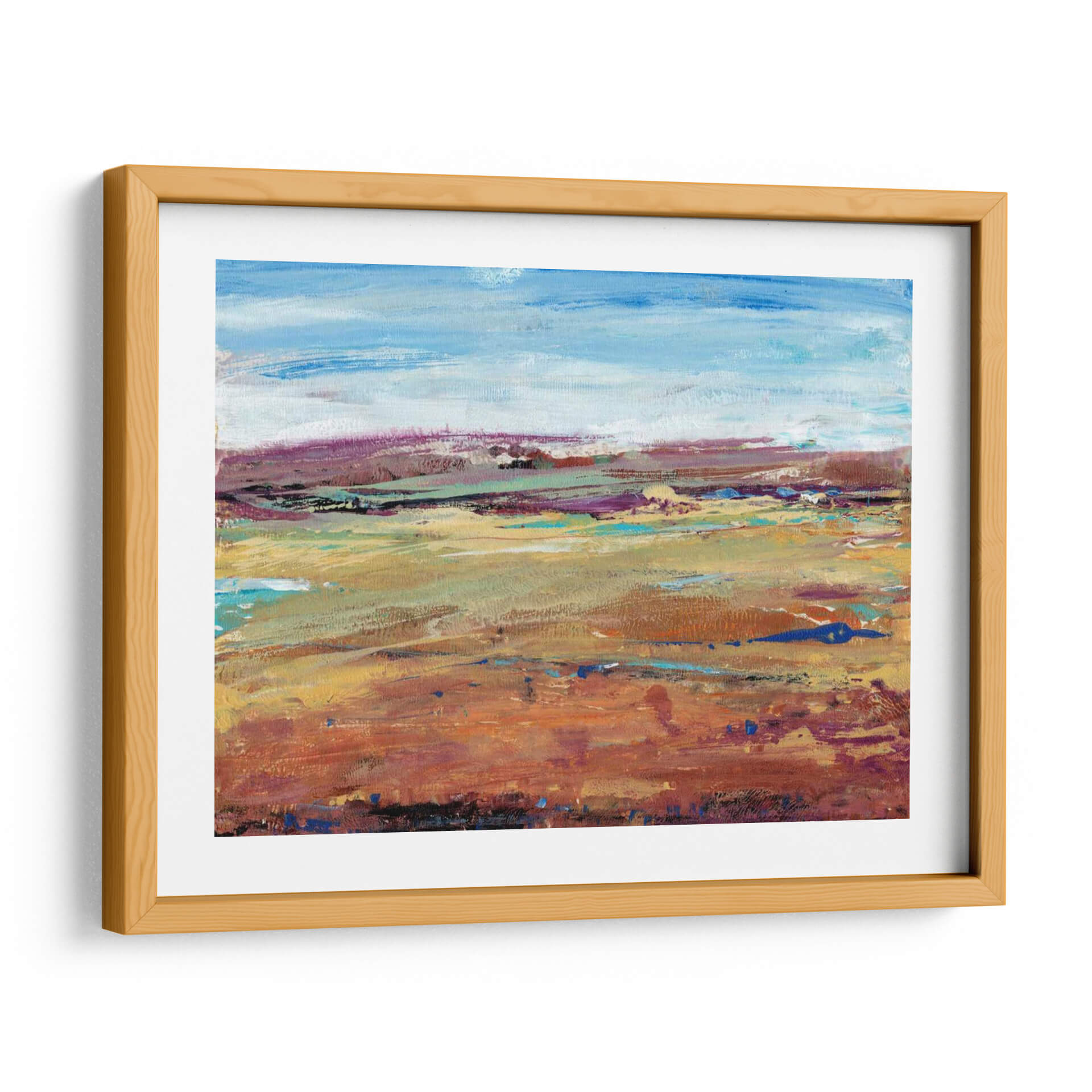 Sumérgete en la evocadora belleza de "Terra Vista I", una obra maestra abstracta del artista Tim O'Toole. Este cuadro decorativo captura la esencia de un paisaje expansivo con una paleta de colores rica y texturizada. Los tonos tierra dominantes, que van desde el ocre cálido hasta el terracota profundo, se entrelazan con pinceladas vibrantes de azul cobalto, verde esmeralda y toques de púrpura, creando una sensación de profundidad y dinamismo. La composición evoca la perspectiva de una vista aérea, similar a la que se obtendría al observar la tierra desde el cielo, de ahí su nombre "Terra Vista". Las pinceladas audaces y expresivas transmiten una energía contenida y una conexión con la naturaleza, invitando a la contemplación. Ideal para añadir un toque de sofisticación rústica a tu sala de estar, oficina o dormitorio, este cuadro decorativo abstracto es una pieza que genera conversación y añade carácter a cualquier espacio moderno o contemporáneo. Su atmósfera serena pero enérgica lo convierte en el punto focal perfecto para aquellos que buscan arte que inspire y eleve su entorno diario, transformando cualquier pared en una ventana a un mundo de color y textura.