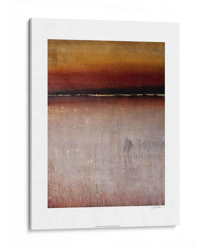 Sumérgete en la contemplación de "Terreno I", una obra de arte abstracto que evoca la inmensidad y la serenidad de un paisaje onírico. Tim O'Toole nos presenta una composición cautivadora donde los degradados de color transitan desde cálidos tonos ámbar y rojizos en el horizonte hacia una base más neutra y texturizada en primer plano. Una fina línea dorada, casi etérea, cruza la obra, sugiriendo la presencia de agua o un horizonte distante que invita a la reflexión. La técnica pictórica, con sus veladuras y texturas sutiles, otorga profundidad y un carácter orgánico a la pieza, creando una atmósfera de calma y misterio. Este cuadro decorativo es ideal para añadir un toque de sofisticación y profundidad a cualquier espacio, ya sea una sala de estar moderna, un dormitorio tranquilo o una oficina que busca inspiración. "Terreno I" no es solo una obra de arte, es una invitación a la introspección y a la apreciación de la belleza sutil en el mundo que nos rodea, un lienzo que transforma cualquier pared en un portal a la serenidad.