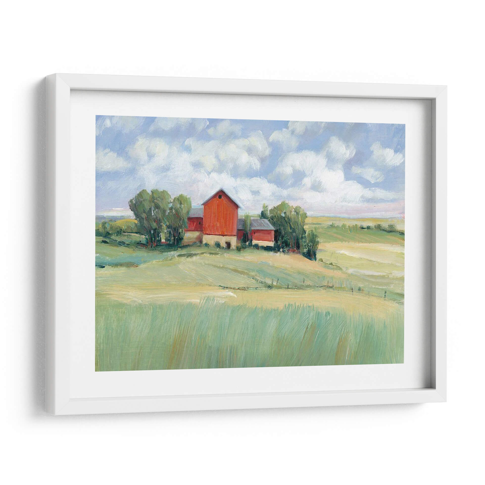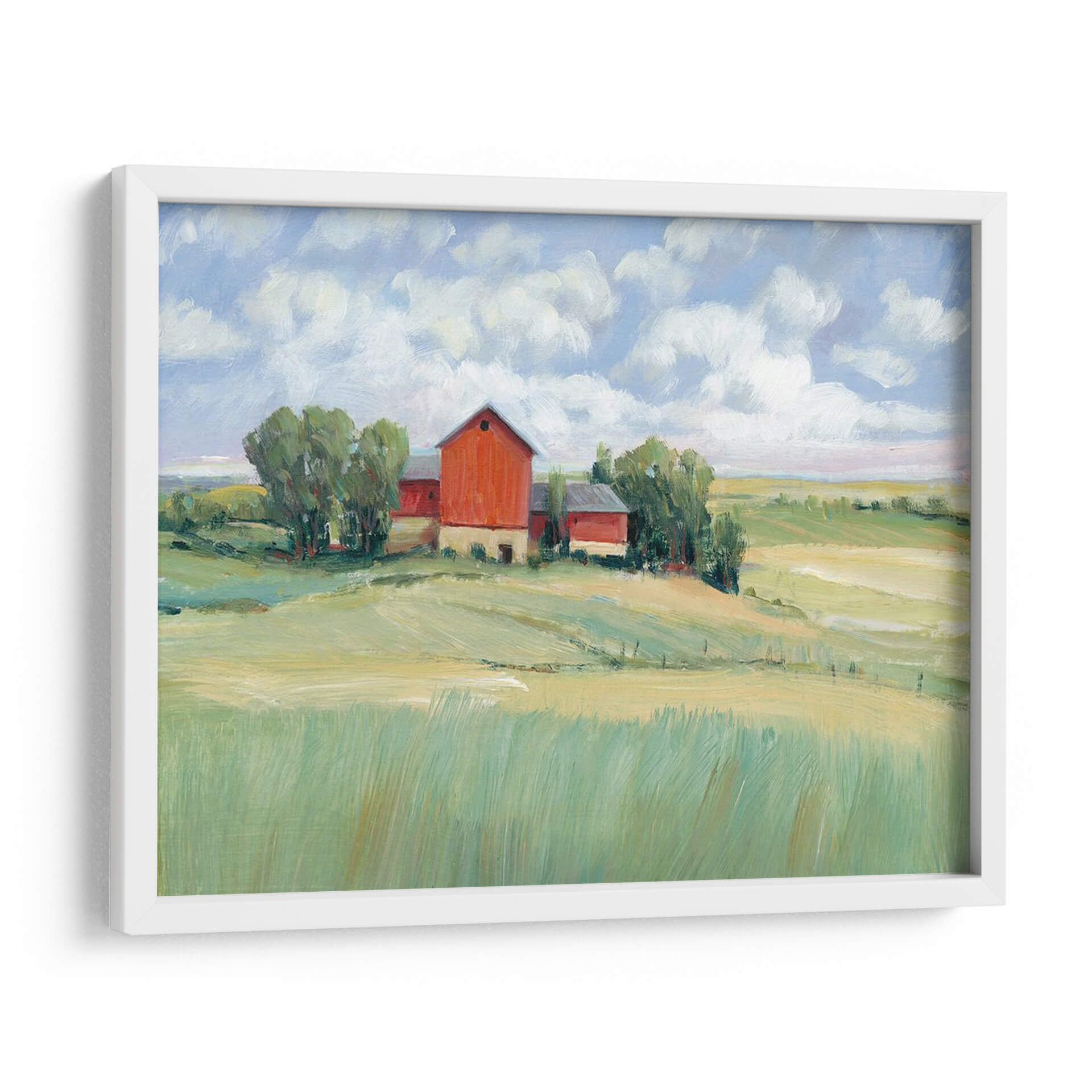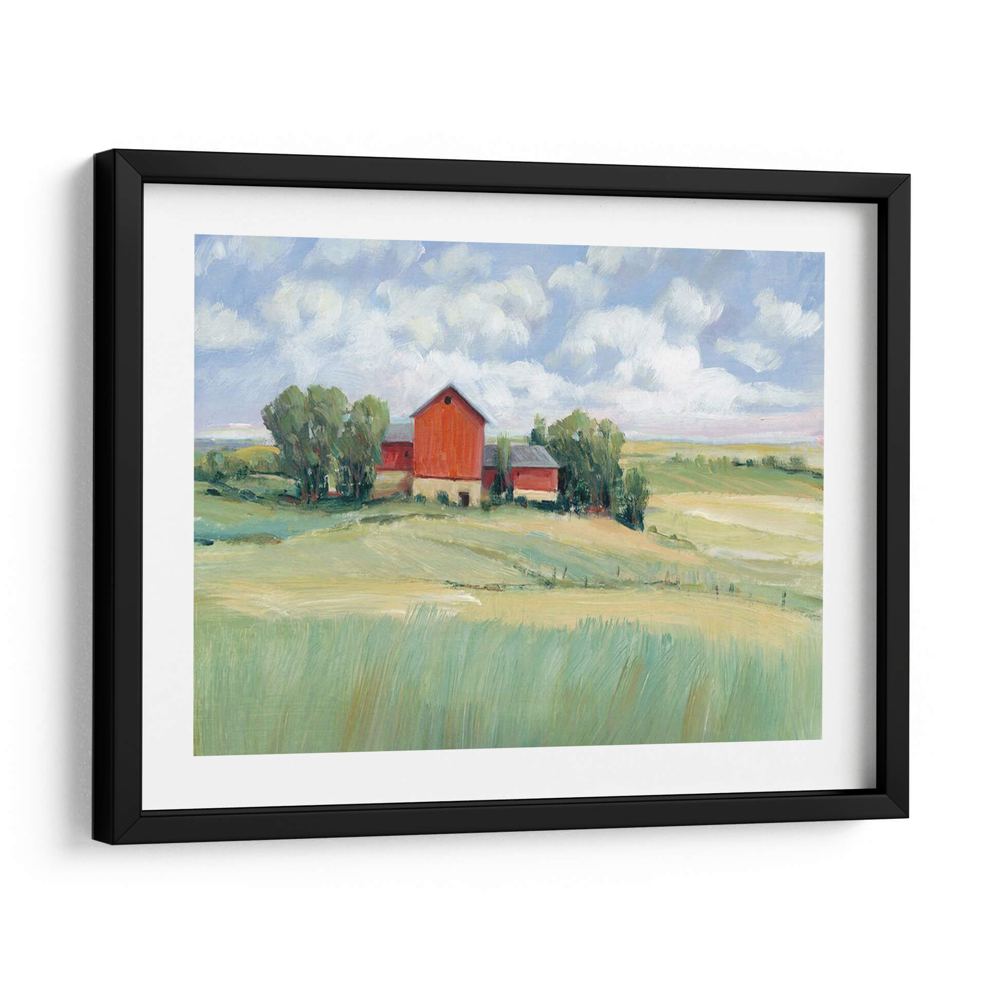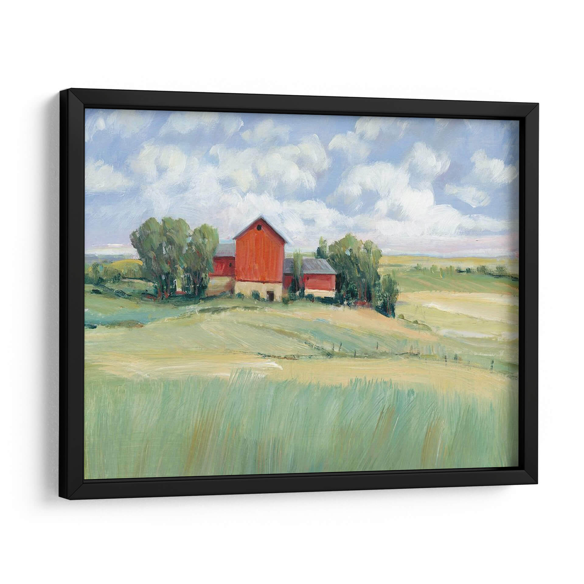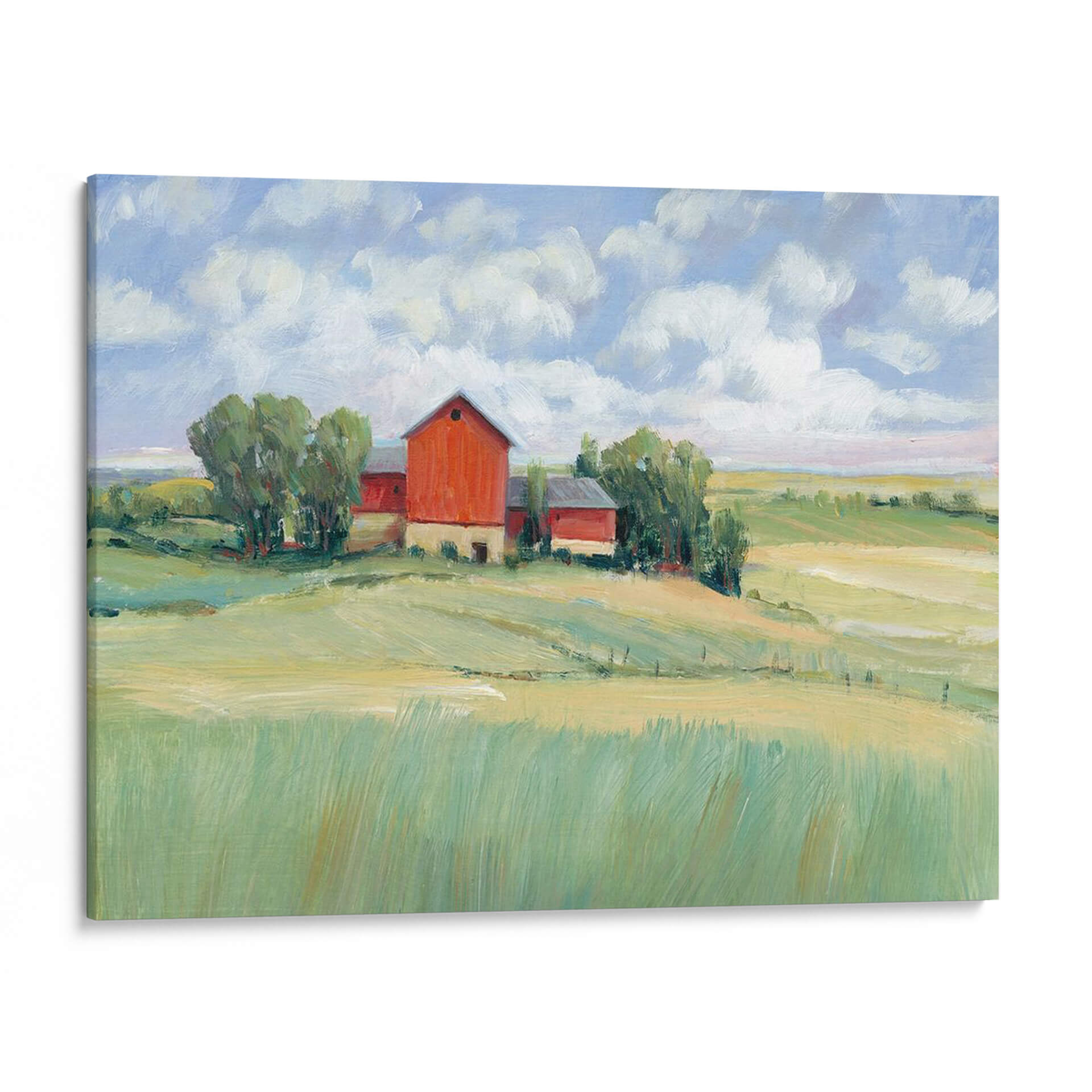 Sumérgete en la serena belleza del campo con "Tierras Agrícolas Rurales II" de Tim O'Toole. Esta obra captura la esencia de un idílico paisaje rural, dominado por una vibrante granja de color rojo intenso que se alza majestuosamente sobre colinas ondulantes y campos verdes. La pincelada suelta y expresiva del artista evoca una atmósfera de tranquilidad y nostalgia, invitando a la contemplación. La paleta de colores, rica en tonos tierra, verdes naturales y azules celestes salpicados de nubes algodonosas, crea una armonía visual que transporta al espectador a un día apacible al aire libre. Ideal para quienes buscan añadir un toque de calidez y conexión con la naturaleza a su hogar u oficina, este cuadro decorativo funciona como un punto focal encantador en cualquier estancia. Su estilo pictórico, que recuerda al impresionismo, permite apreciar la textura y el movimiento, dotando a la pieza de una profundidad cautivadora. "Tierras Agrícolas Rurales II" no es solo una imagen, sino una invitación a respirar la paz del campo y a disfrutar de la simplicidad y el encanto del entorno rural.