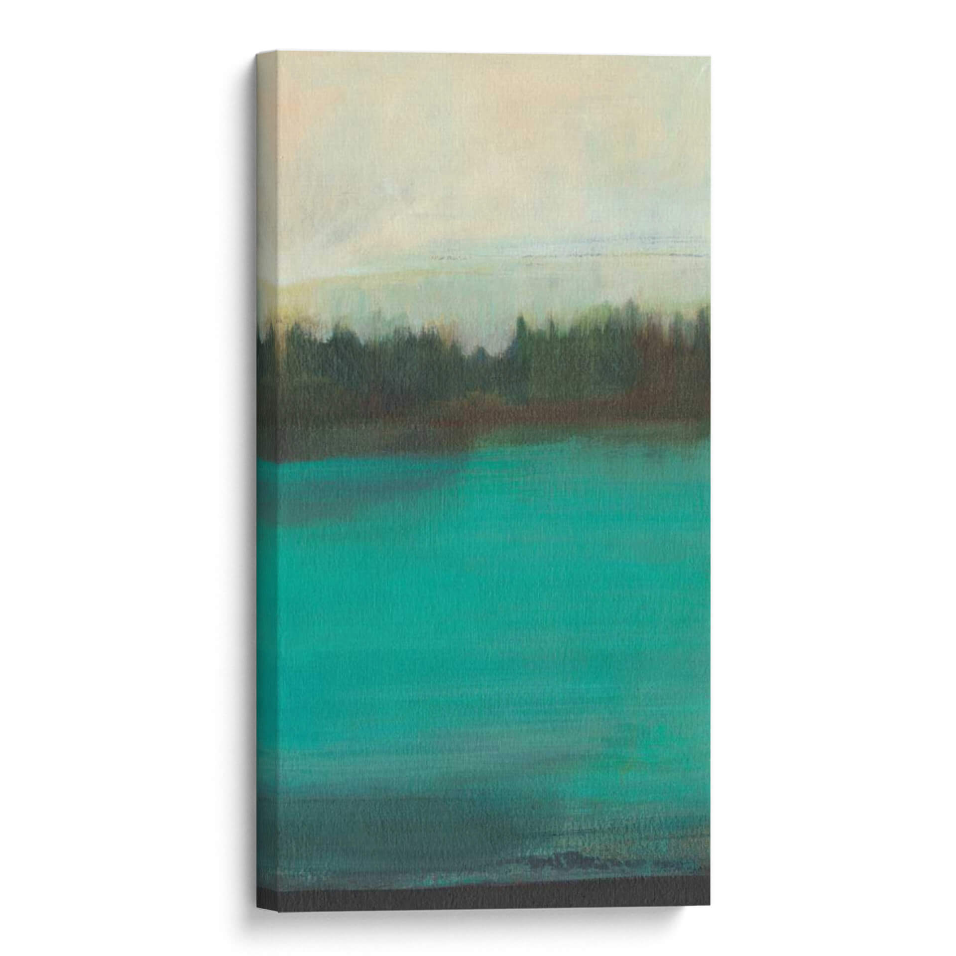 Sumérgete en la serenidad de "Treal Lake View I", una cautivadora obra de arte abstracto que evoca la tranquilidad de un paisaje lacustre al amanecer. La pieza se caracteriza por una paleta de colores serenos, dominada por vibrantes tonos turquesa que representan el agua en primer plano, fusionándose sutilmente con verdes profundos y terrosos que sugieren una línea de árboles o un horizonte distante. El cielo, representado con suaves toques de blanco y beige con sutiles matices de rosa, aporta una atmósfera etérea y pacífica. La composición, con sus horizontes horizontales y la aplicación de pintura texturizada, crea una sensación de profundidad y calma, invitando a la contemplación. Este cuadro decorativo es una adición perfecta para cualquier espacio que busque un toque de naturaleza y serenidad, ideal para salas de estar, dormitorios o estudios. Su estilo abstracto pero evocador permite que sea una pieza focal versátil, capaz de complementar tanto decoraciones modernas como contemporáneas, infundiendo paz y sofisticación en tu hogar. Deja que "Treal Lake View I" transforme tu espacio en un refugio de calma y belleza.