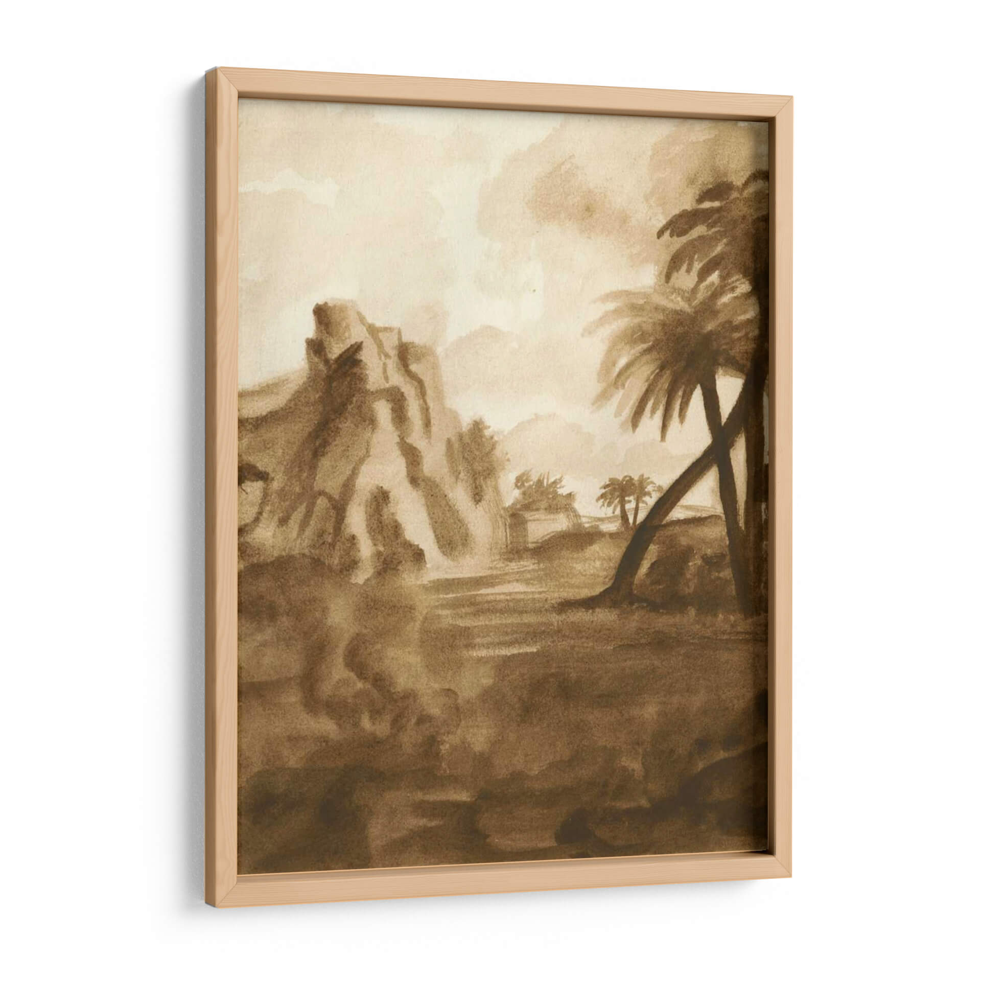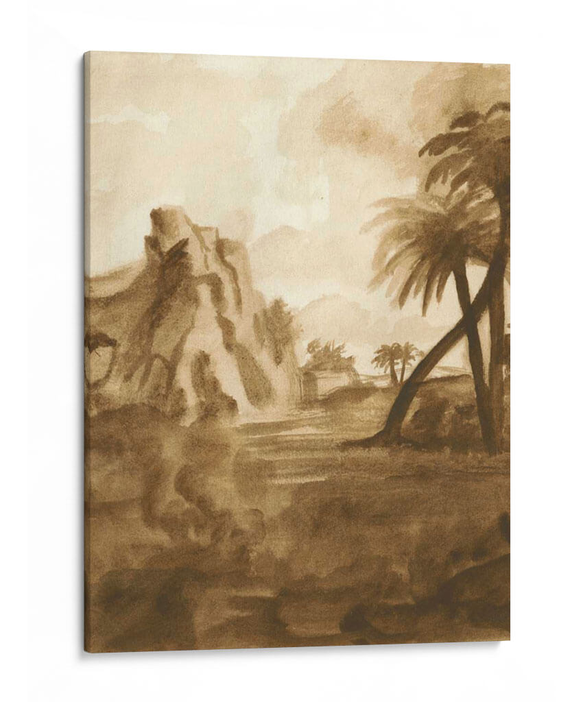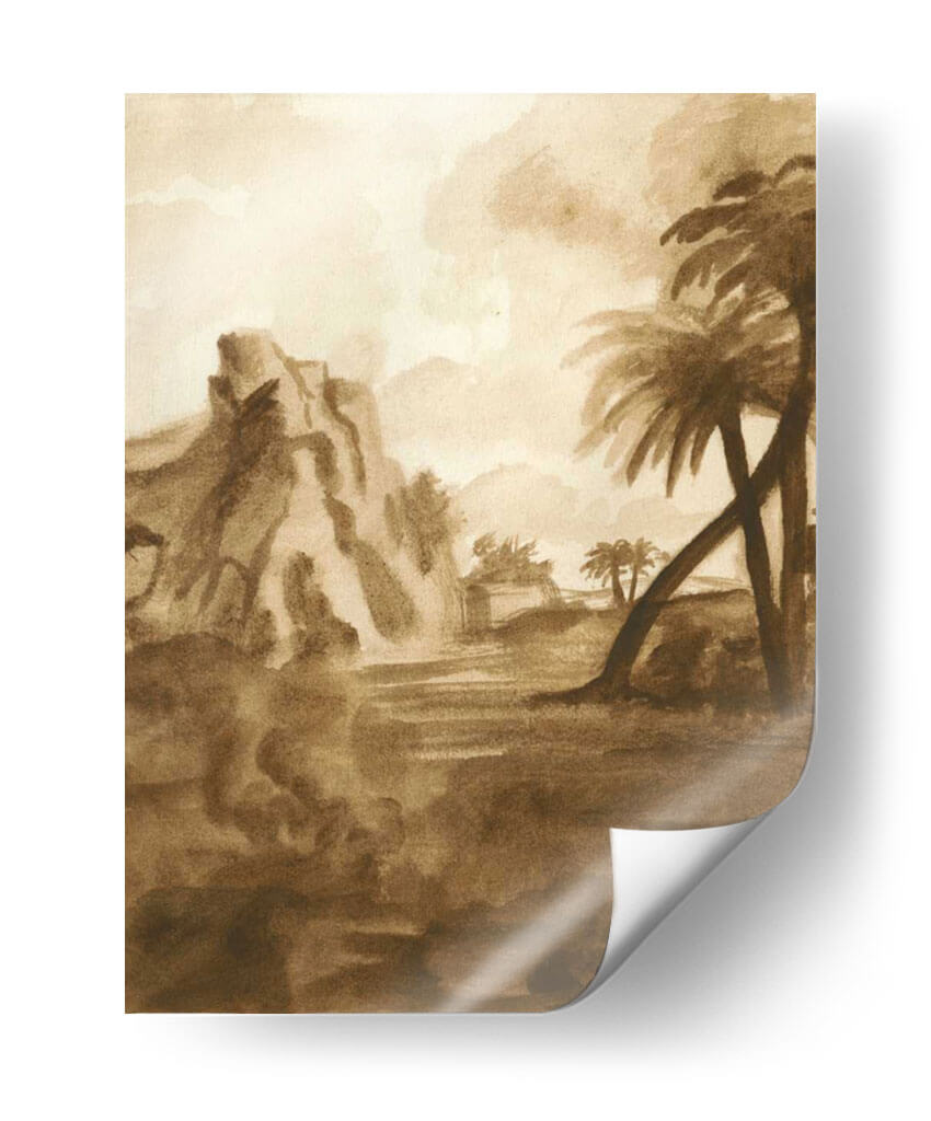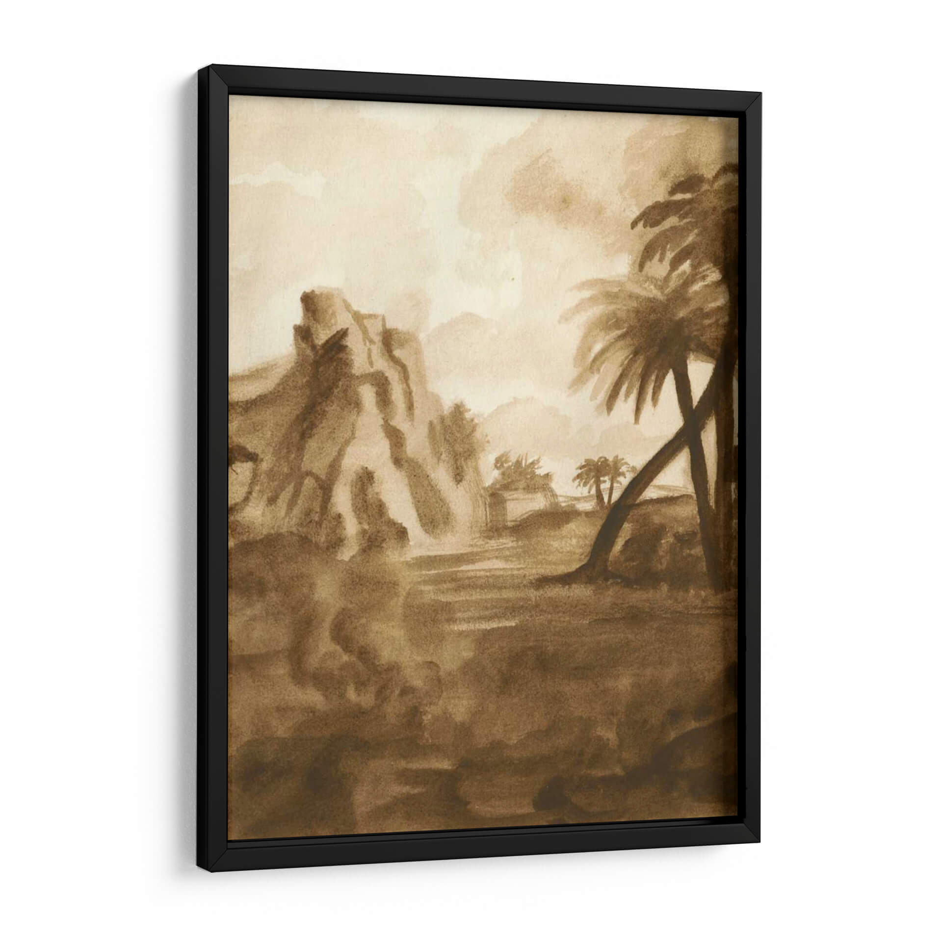 Sumérgete en la serena belleza de "Trópicos Británicos II", una obra de arte cautivadora de Naomi McCavitt. Este cuadro decorativo evoca una atmósfera de tranquilidad y escape, transportándote a un paisaje exuberante bañado en tonos sepia. La obra presenta una composición magistral que combina elementos naturales, como imponentes formaciones rocosas y palmeras soñadoras, con sutiles indicios de estructuras humanas, sugiriendo un refugio o un asentamiento remoto. La técnica de acuarela, con sus suaves gradaciones y la delicadeza de las pinceladas, crea una sensación de profundidad y misterio, invitando a la contemplación. Los colores cálidos y terrosos dominan la paleta, infundiendo una sensación de calma y naturalidad que se adapta perfectamente a cualquier espacio que busque un toque de serenidad y sofisticación. Ideal para salas de estar, dormitorios o estudios, este cuadro decorativo es una invitación a la relajación y la evasión. Su estilo atemporal y su evocadora atmósfera lo convierten en una pieza esencial para coleccionistas de arte y amantes de la decoración que buscan añadir una dimensión de paz y belleza a su entorno.