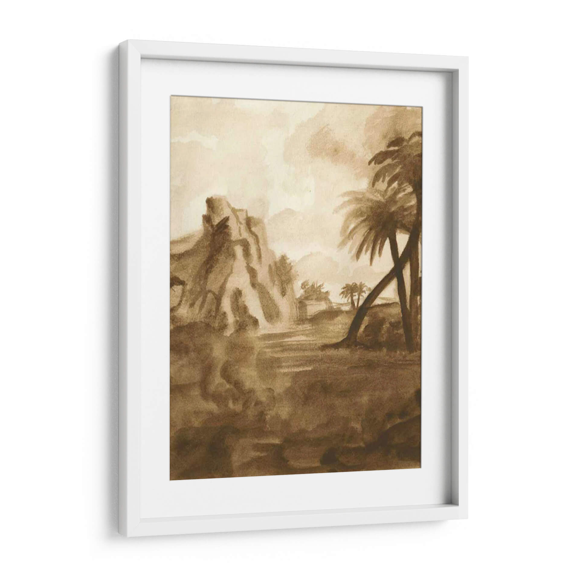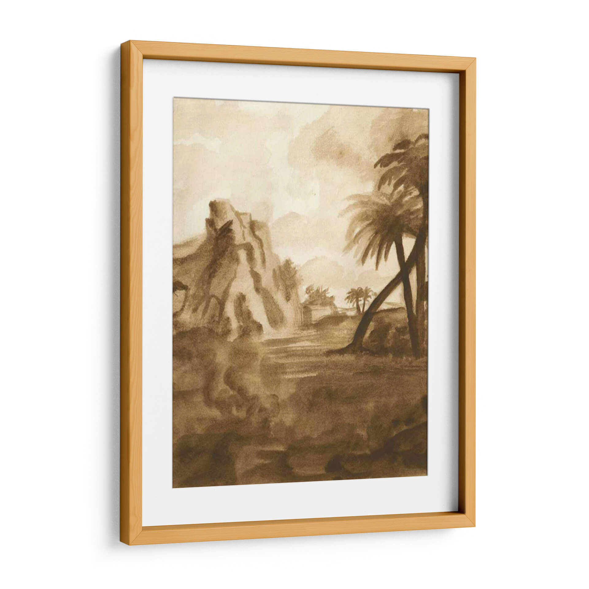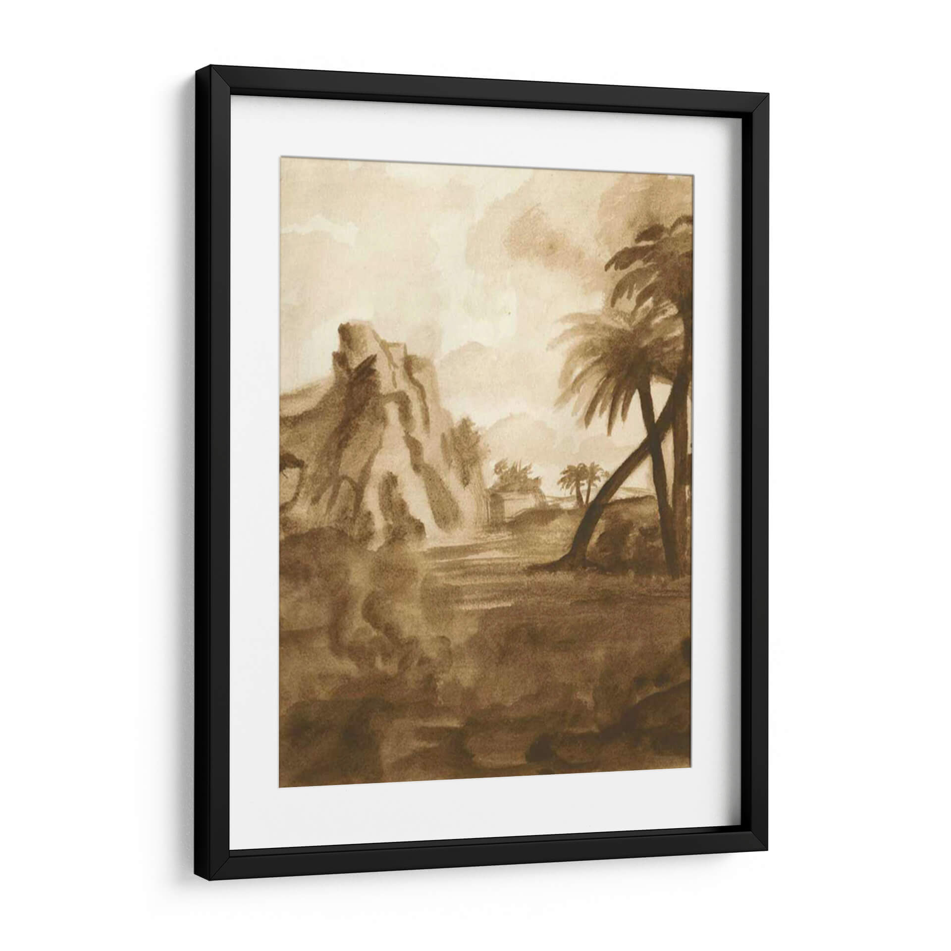 Sumérgete en la serena belleza de "Trópicos Británicos II", una obra de arte cautivadora de Naomi McCavitt. Este cuadro decorativo evoca una atmósfera de tranquilidad y escape, transportándote a un paisaje exuberante bañado en tonos sepia. La obra presenta una composición magistral que combina elementos naturales, como imponentes formaciones rocosas y palmeras soñadoras, con sutiles indicios de estructuras humanas, sugiriendo un refugio o un asentamiento remoto. La técnica de acuarela, con sus suaves gradaciones y la delicadeza de las pinceladas, crea una sensación de profundidad y misterio, invitando a la contemplación. Los colores cálidos y terrosos dominan la paleta, infundiendo una sensación de calma y naturalidad que se adapta perfectamente a cualquier espacio que busque un toque de serenidad y sofisticación. Ideal para salas de estar, dormitorios o estudios, este cuadro decorativo es una invitación a la relajación y la evasión. Su estilo atemporal y su evocadora atmósfera lo convierten en una pieza esencial para coleccionistas de arte y amantes de la decoración que buscan añadir una dimensión de paz y belleza a su entorno.