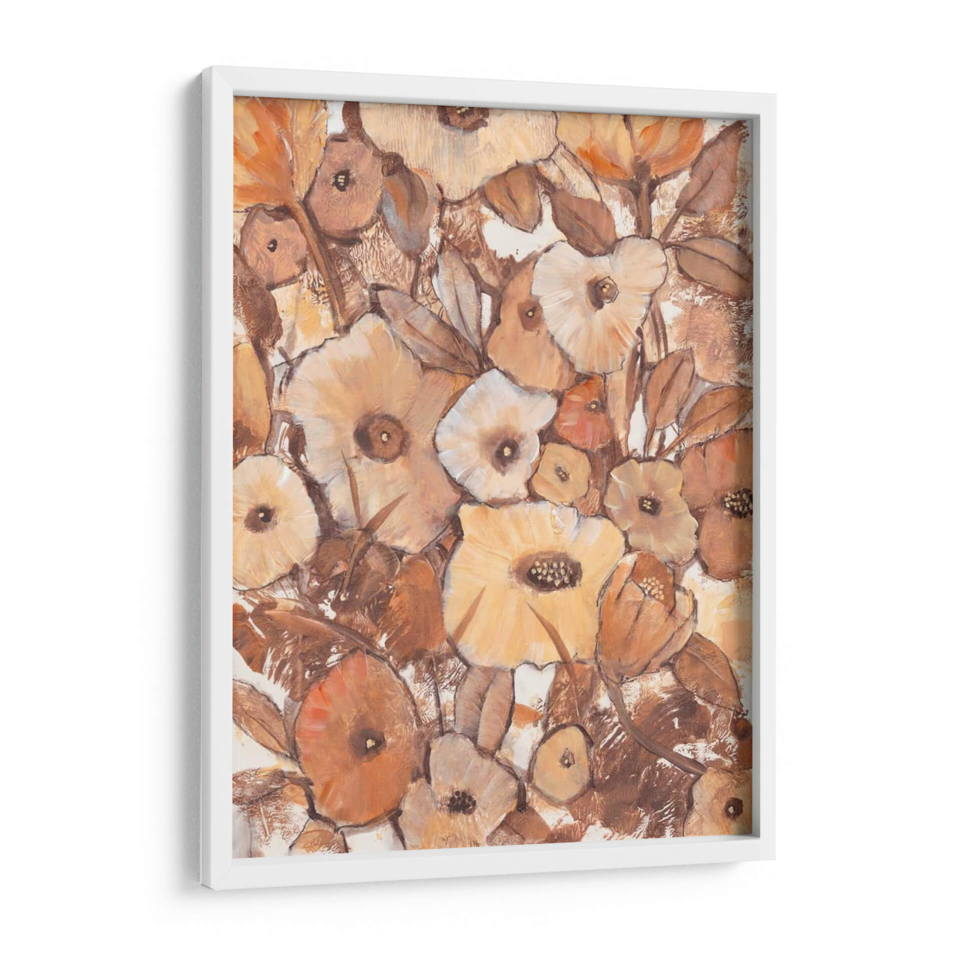 Sumérgete en la calidez y la serenidad de "Umber Garden II", una obra de arte contemporáneo del artista Tim O'Toole. Este cautivador cuadro decorativo presenta una exuberante representación de flores y follaje, ejecutada con una paleta de colores tierra que evoca una sensación de naturaleza y tranquilidad. Las pinceladas texturizadas y la composición dinámica crean profundidad y movimiento, invitando al espectador a contemplar la belleza intrincada de cada pétalo y hoja. Los tonos cálidos de ocre, marrón y blanco roto se entrelazan para formar un jardín etéreo, perfecto para añadir un toque de sofisticación orgánica a cualquier espacio. Ideal para salas de estar, dormitorios o estudios que buscan una atmósfera acogedora y elegante, este cuadro abstracto floral es una pieza versátil que complementa tanto la decoración moderna como la tradicional. "Umber Garden II" no es solo una obra de arte, es una invitación a la calma y a la apreciación de la naturaleza en su forma más artística, convirtiéndose en el punto focal que transformará tu hogar.