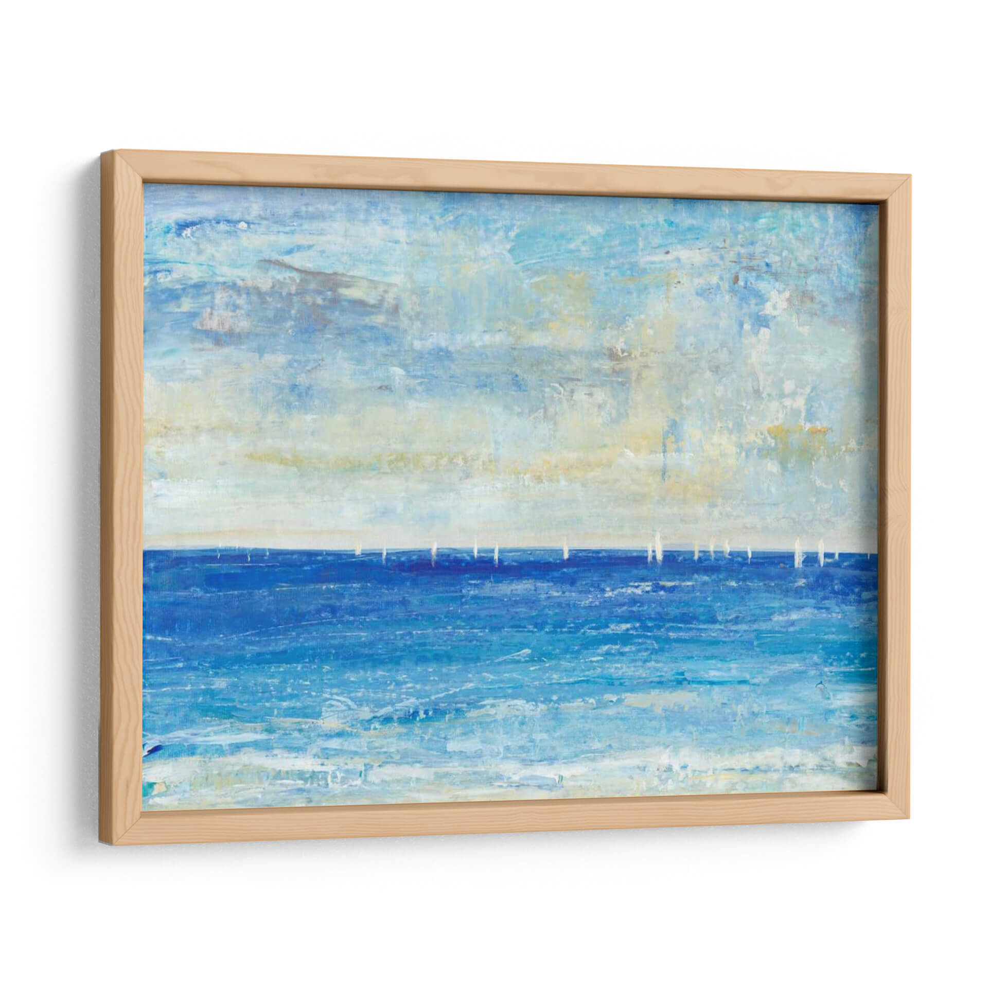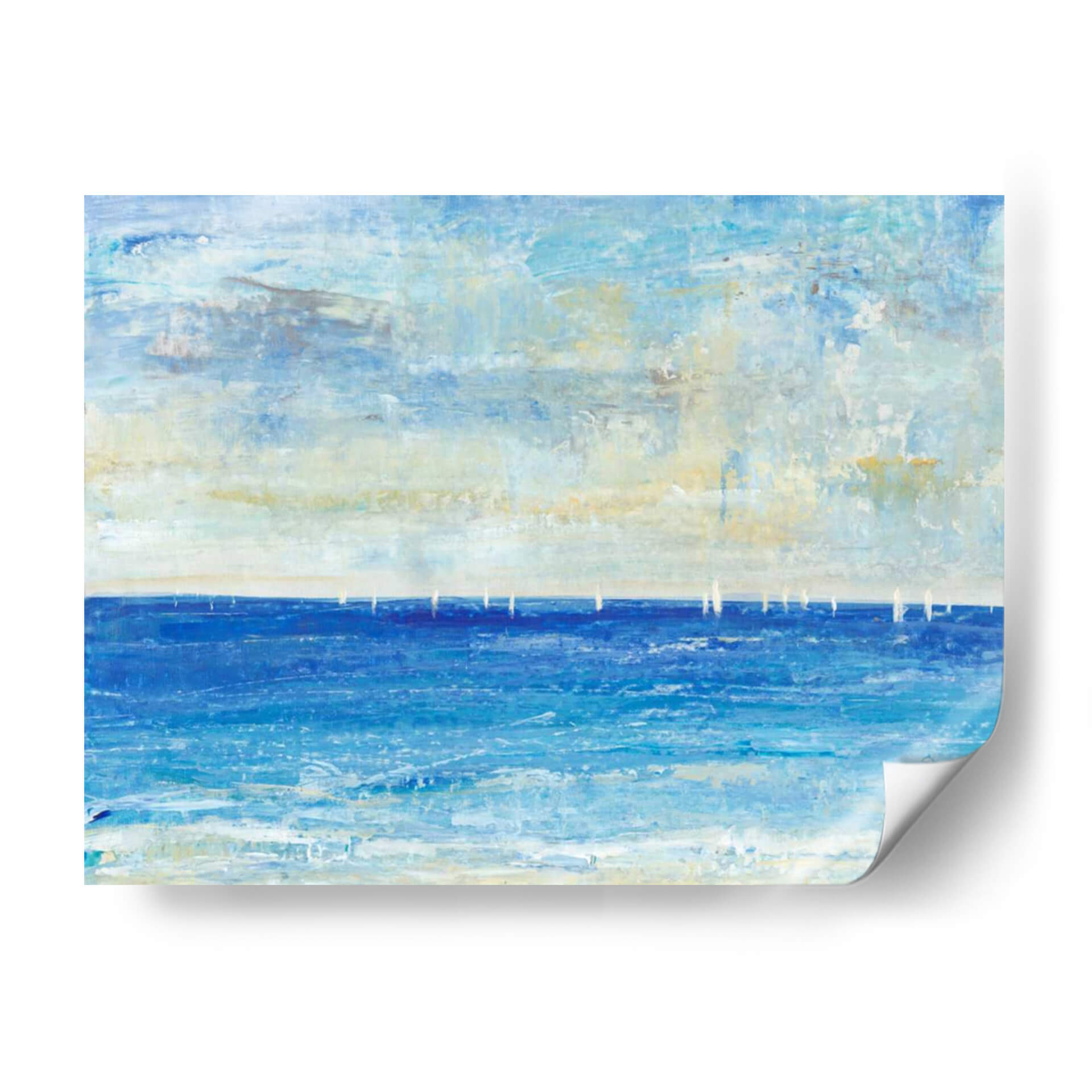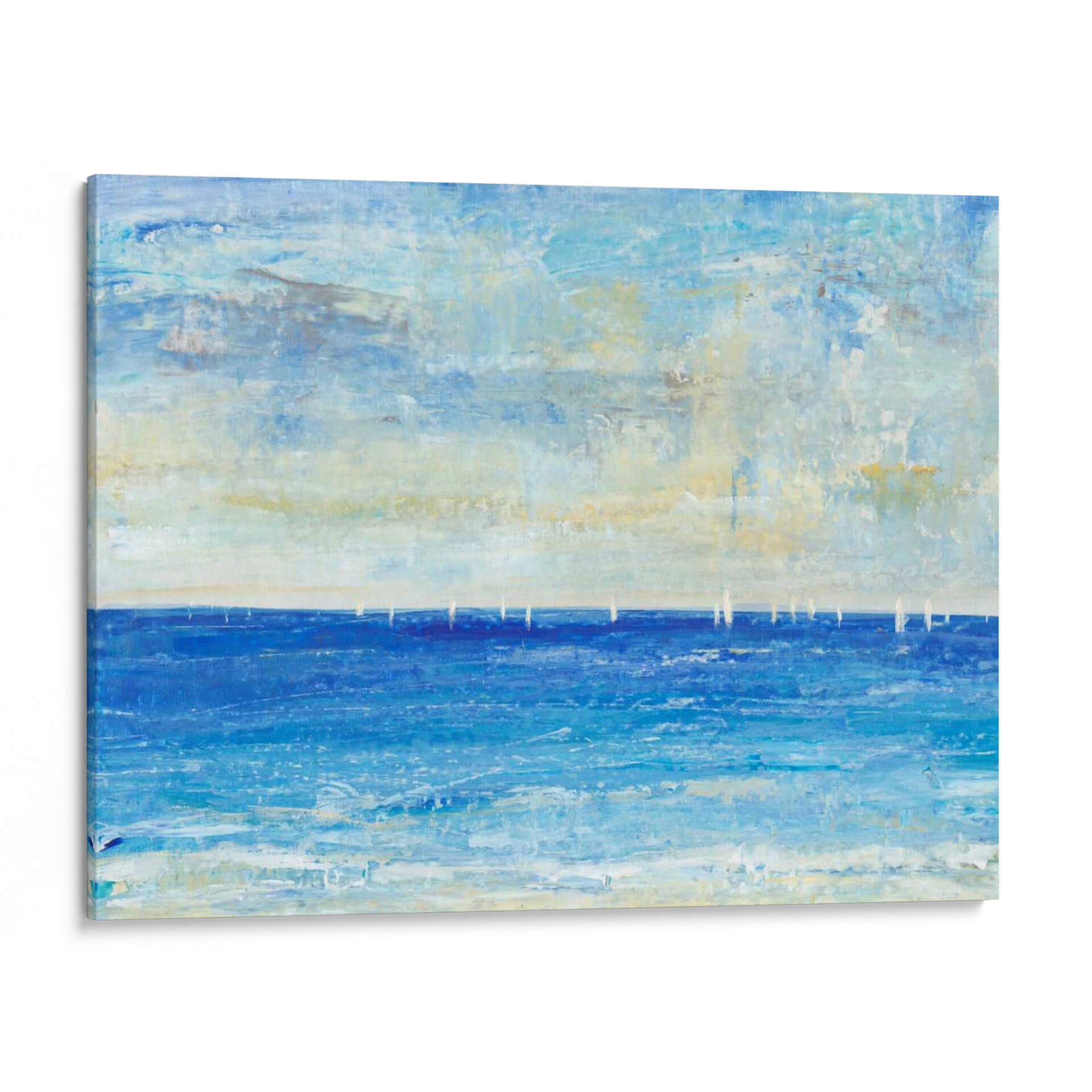 Embárquese en un viaje sereno con "Un Día Perfecto Para Navegar I", una obra de arte que captura la inmensidad y la tranquilidad del océano. El artista Tim O'Toole nos presenta una escena marina vibrante, donde el azul profundo del mar se funde con el cielo en un horizonte apenas perceptible. Las pinceladas expresivas y la textura rica crean una sensación de movimiento y profundidad, evocando la brisa marina y el vaivén de las olas. Una hilera de veleros blancos, sutilmente representados, navega en la distancia, añadiendo un toque de vida y aventura a la composición, sugiriendo la libertad y la alegría de un día perfecto en el mar. Esta pieza es ideal para añadir un aire de calma y sofisticación a cualquier espacio, ya sea una sala de estar, un dormitorio o una oficina. Su paleta de azules y blancos, con toques sutiles de amarillo y gris, la convierte en una adición versátil que complementa una variedad de estilos decorativos, desde el moderno hasta el costero. Traiga la serenidad del mar a su hogar con este cuadro decorativo que inspira paz y contemplación.