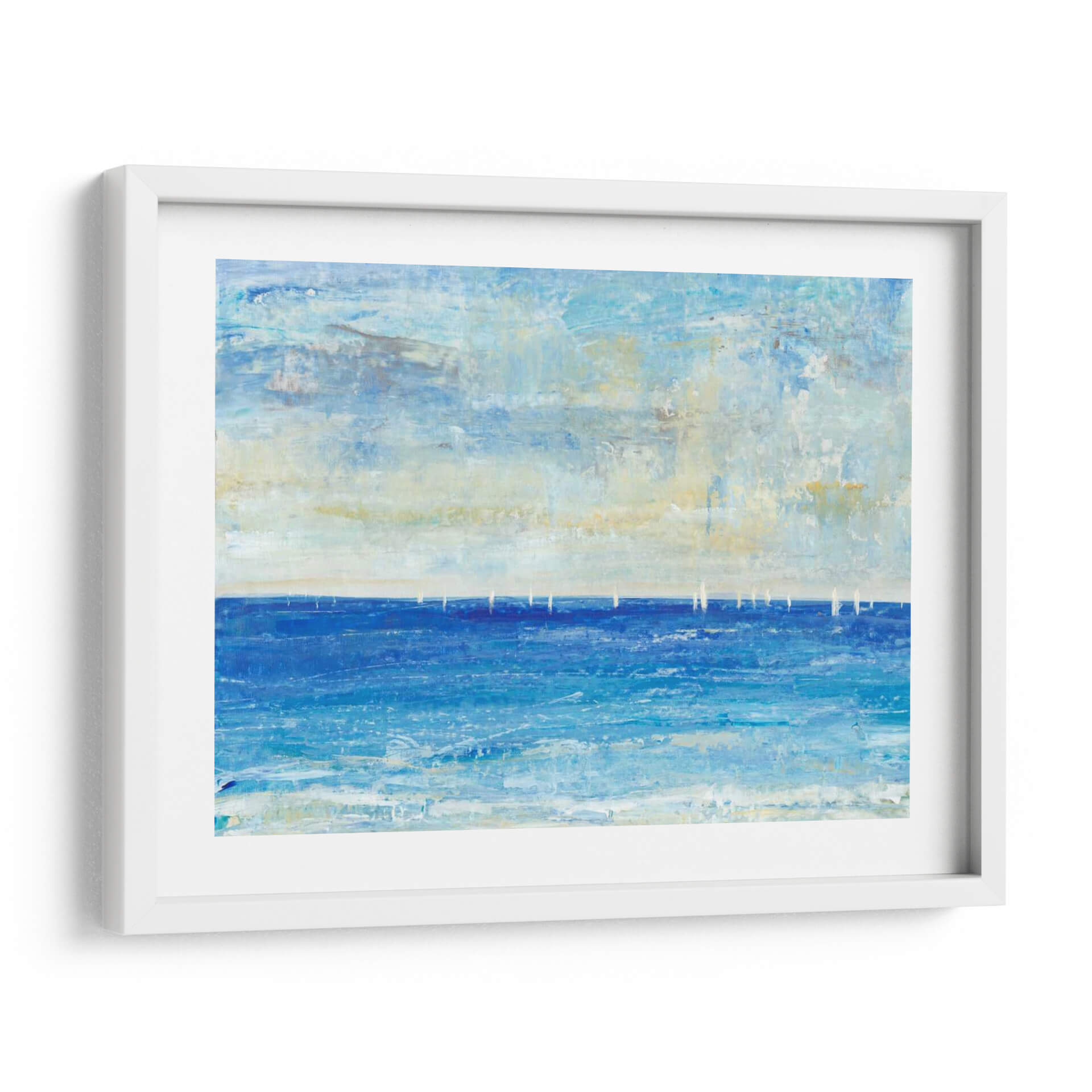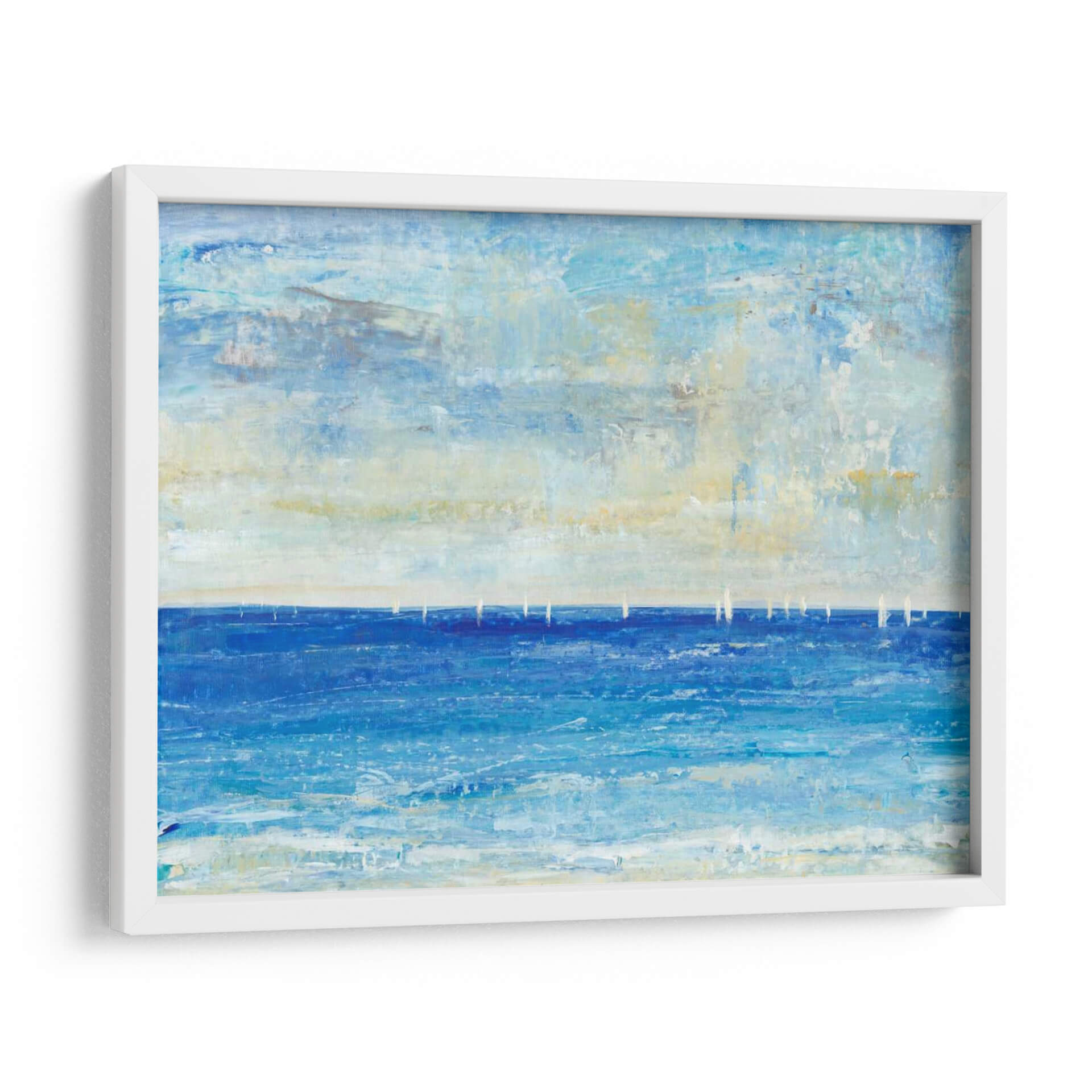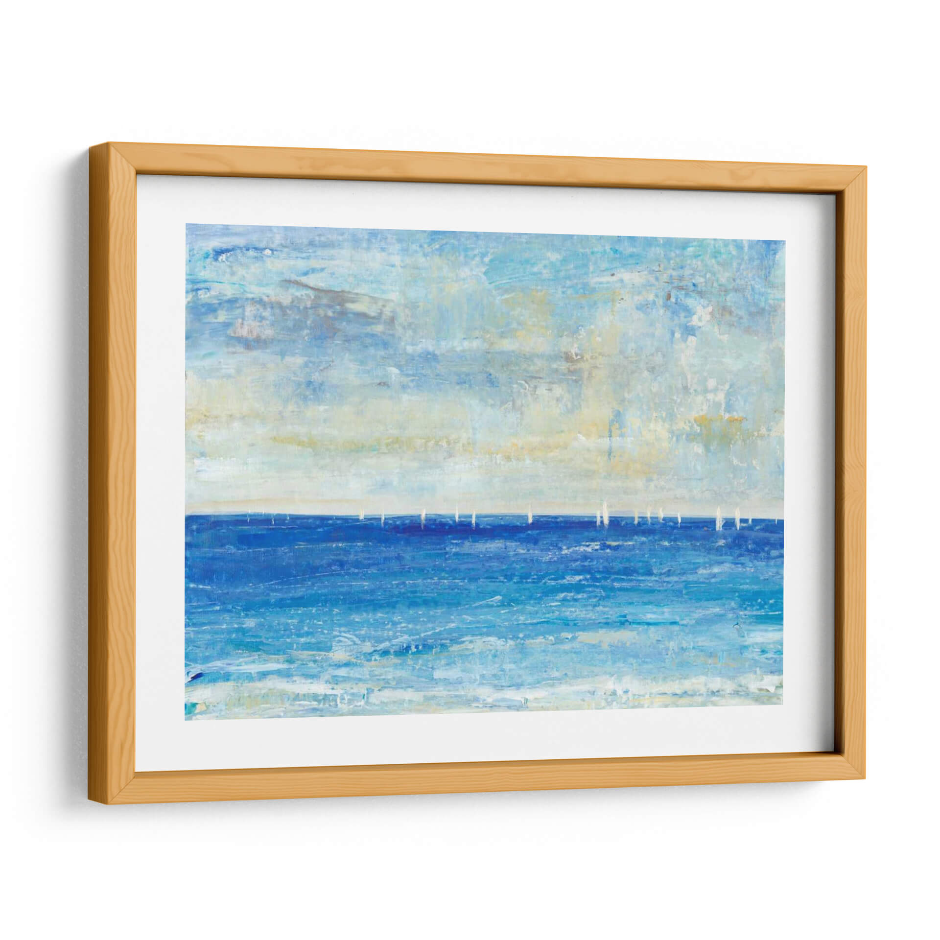 Embárquese en un viaje sereno con "Un Día Perfecto Para Navegar I", una obra de arte que captura la inmensidad y la tranquilidad del océano. El artista Tim O'Toole nos presenta una escena marina vibrante, donde el azul profundo del mar se funde con el cielo en un horizonte apenas perceptible. Las pinceladas expresivas y la textura rica crean una sensación de movimiento y profundidad, evocando la brisa marina y el vaivén de las olas. Una hilera de veleros blancos, sutilmente representados, navega en la distancia, añadiendo un toque de vida y aventura a la composición, sugiriendo la libertad y la alegría de un día perfecto en el mar. Esta pieza es ideal para añadir un aire de calma y sofisticación a cualquier espacio, ya sea una sala de estar, un dormitorio o una oficina. Su paleta de azules y blancos, con toques sutiles de amarillo y gris, la convierte en una adición versátil que complementa una variedad de estilos decorativos, desde el moderno hasta el costero. Traiga la serenidad del mar a su hogar con este cuadro decorativo que inspira paz y contemplación.