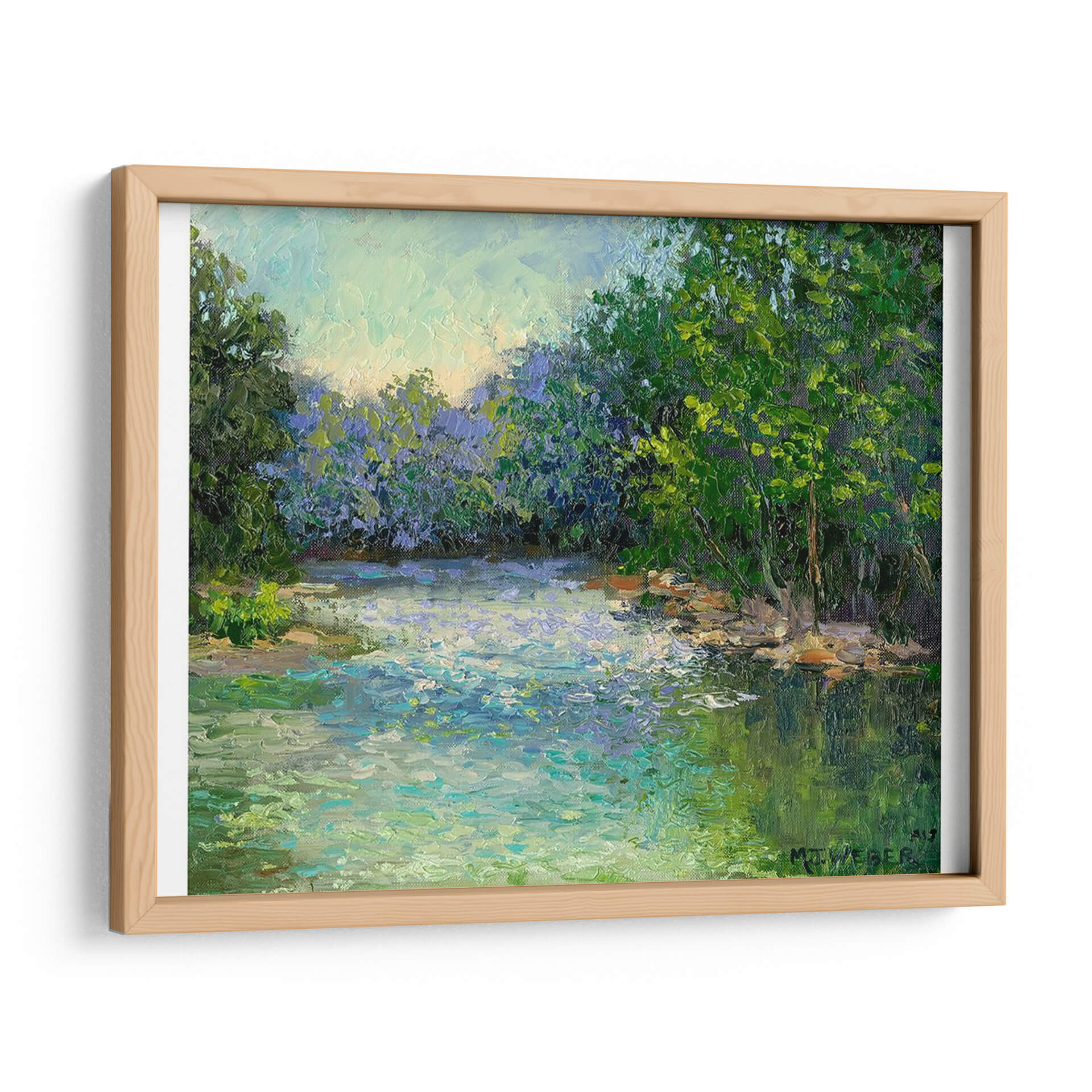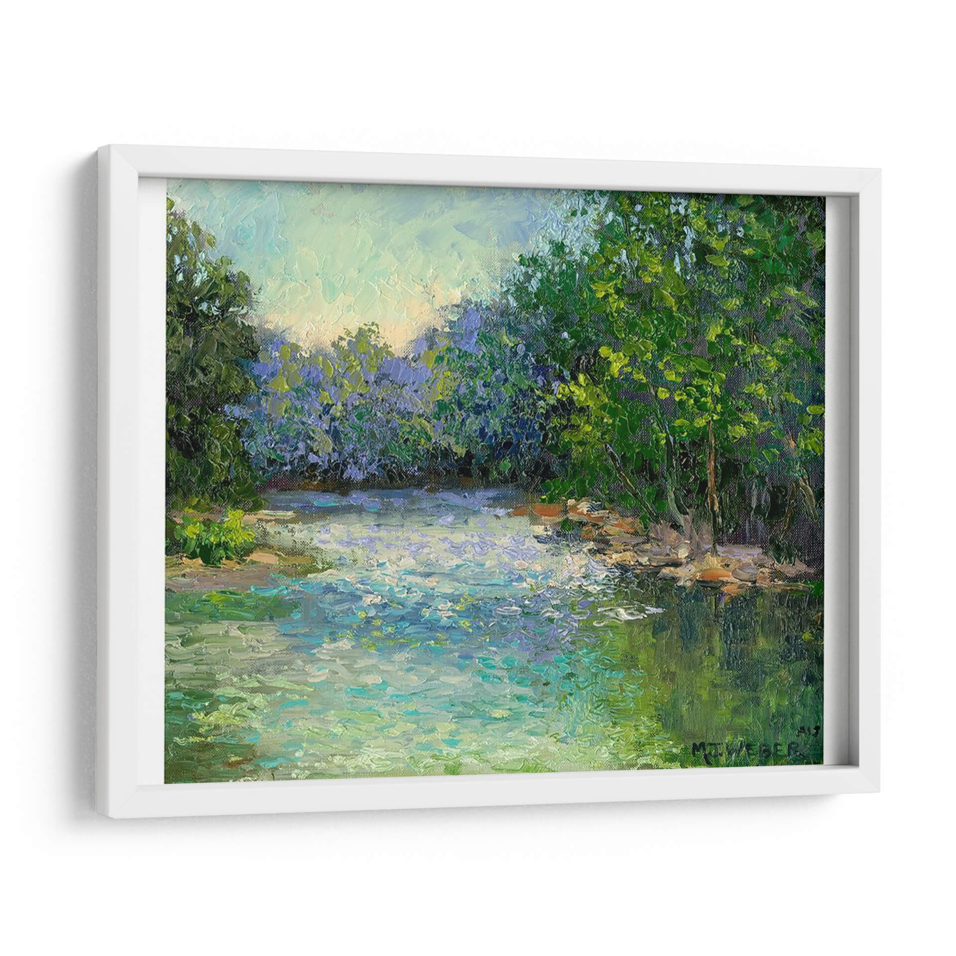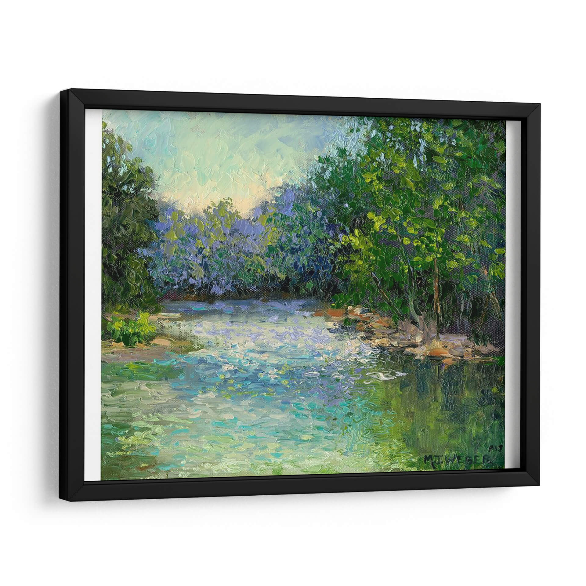 Sumérgete en la serenidad de "Una Curva En El Río", una obra maestra de Mary Jean Weber que captura la esencia de un paisaje natural bañado por la luz. Este cuadro decorativo te transportará a la orilla de un río sereno, donde el agua cristalina refleja el juego de luces y sombras de la vegetación circundante. La vibrante paleta de verdes intensos y azules turquesas, salpicada por toques de lavanda y tonos tierra, crea una atmósfera de paz y tranquilidad. La técnica impresionista, con pinceladas visibles y expresivas, aporta textura y vida a la composición, invitando a contemplar los detalles de la naturaleza. Ideal para quienes buscan infundir calma y belleza a sus espacios, este cuadro es perfecto para salones, dormitorios o estudios, aportando un toque de frescura y conexión con el exterior. Transforma tu hogar en un refugio de paz con esta evocadora pieza de arte contemporáneo.