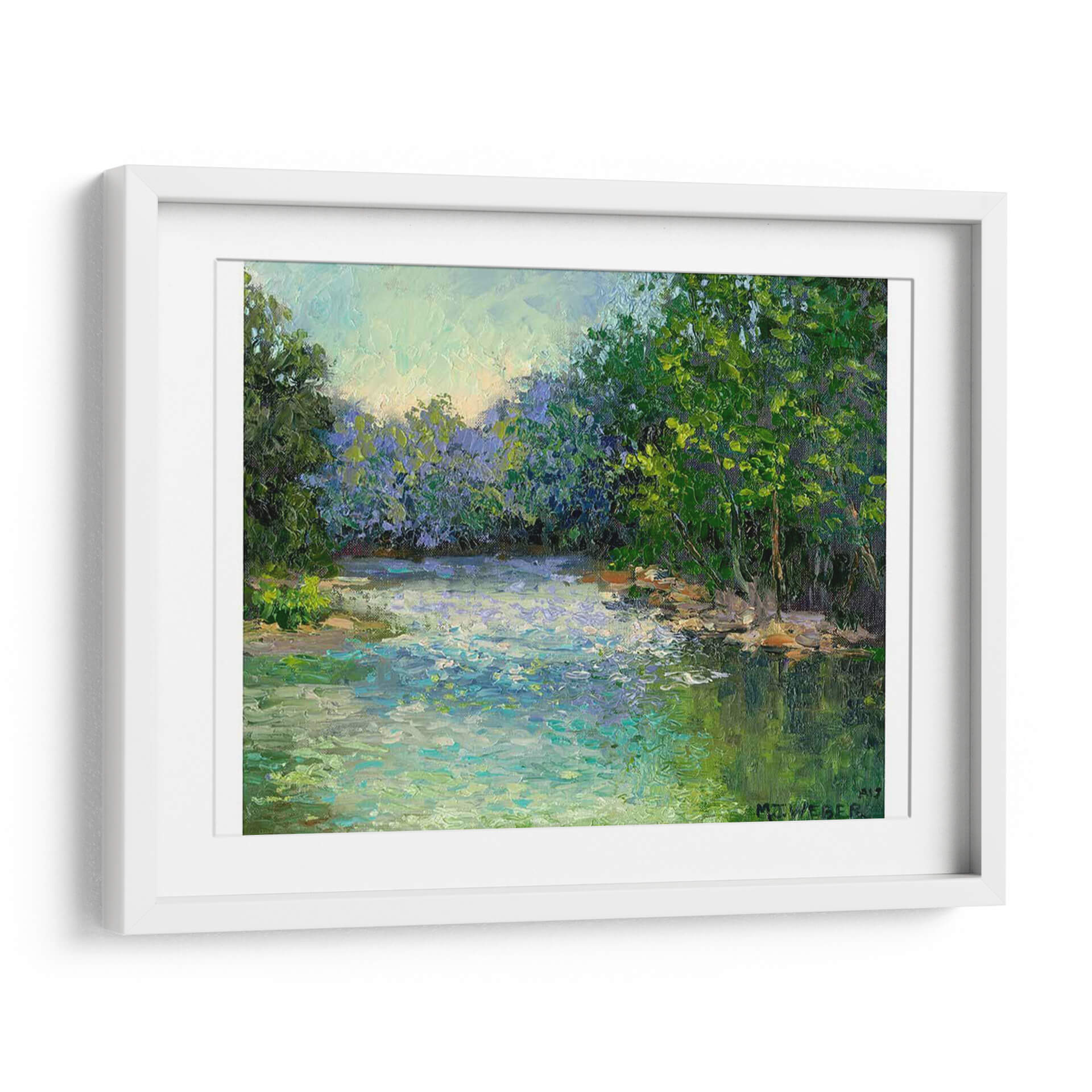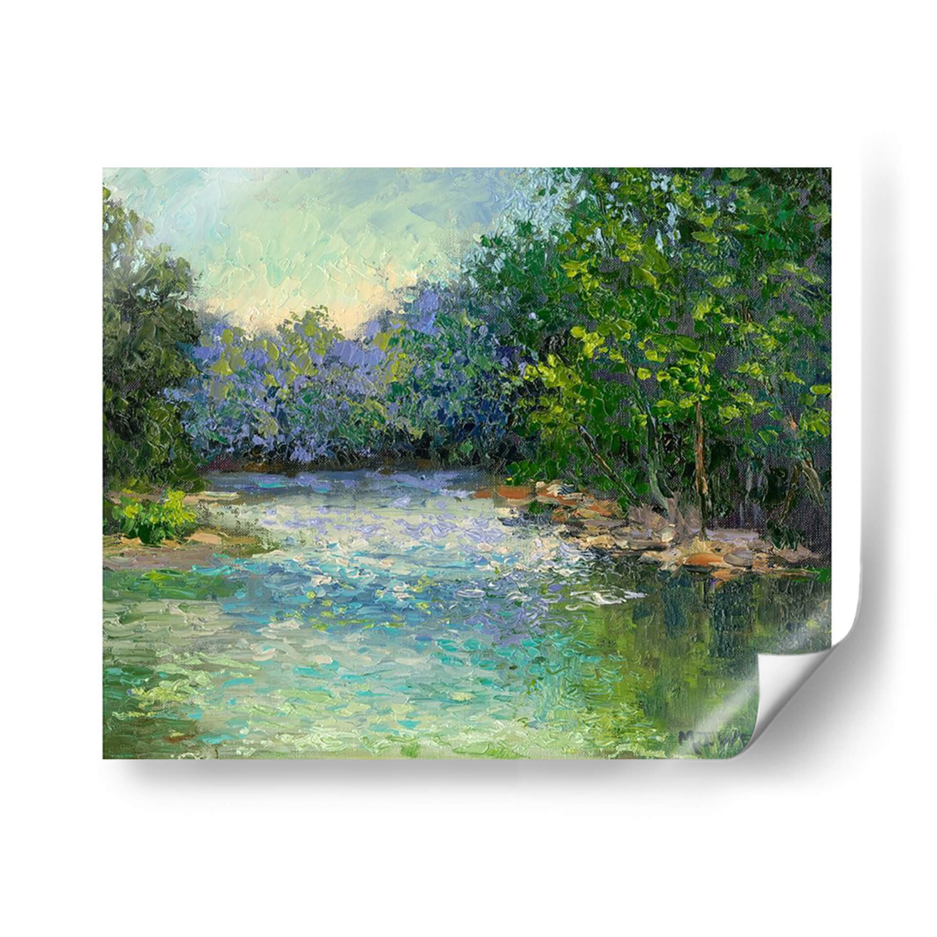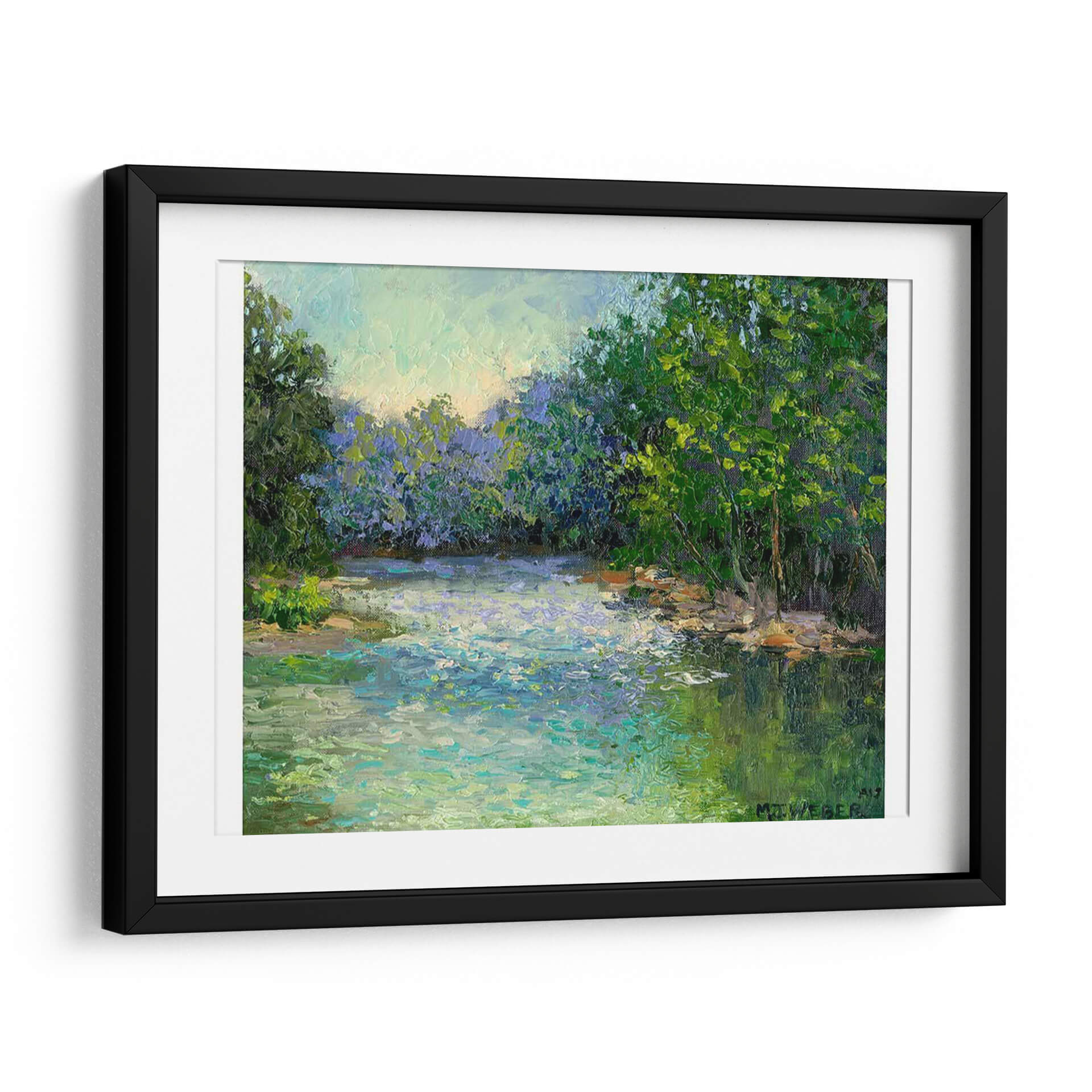 Sumérgete en la serenidad de "Una Curva En El Río", una obra maestra de Mary Jean Weber que captura la esencia de un paisaje natural bañado por la luz. Este cuadro decorativo te transportará a la orilla de un río sereno, donde el agua cristalina refleja el juego de luces y sombras de la vegetación circundante. La vibrante paleta de verdes intensos y azules turquesas, salpicada por toques de lavanda y tonos tierra, crea una atmósfera de paz y tranquilidad. La técnica impresionista, con pinceladas visibles y expresivas, aporta textura y vida a la composición, invitando a contemplar los detalles de la naturaleza. Ideal para quienes buscan infundir calma y belleza a sus espacios, este cuadro es perfecto para salones, dormitorios o estudios, aportando un toque de frescura y conexión con el exterior. Transforma tu hogar en un refugio de paz con esta evocadora pieza de arte contemporáneo.