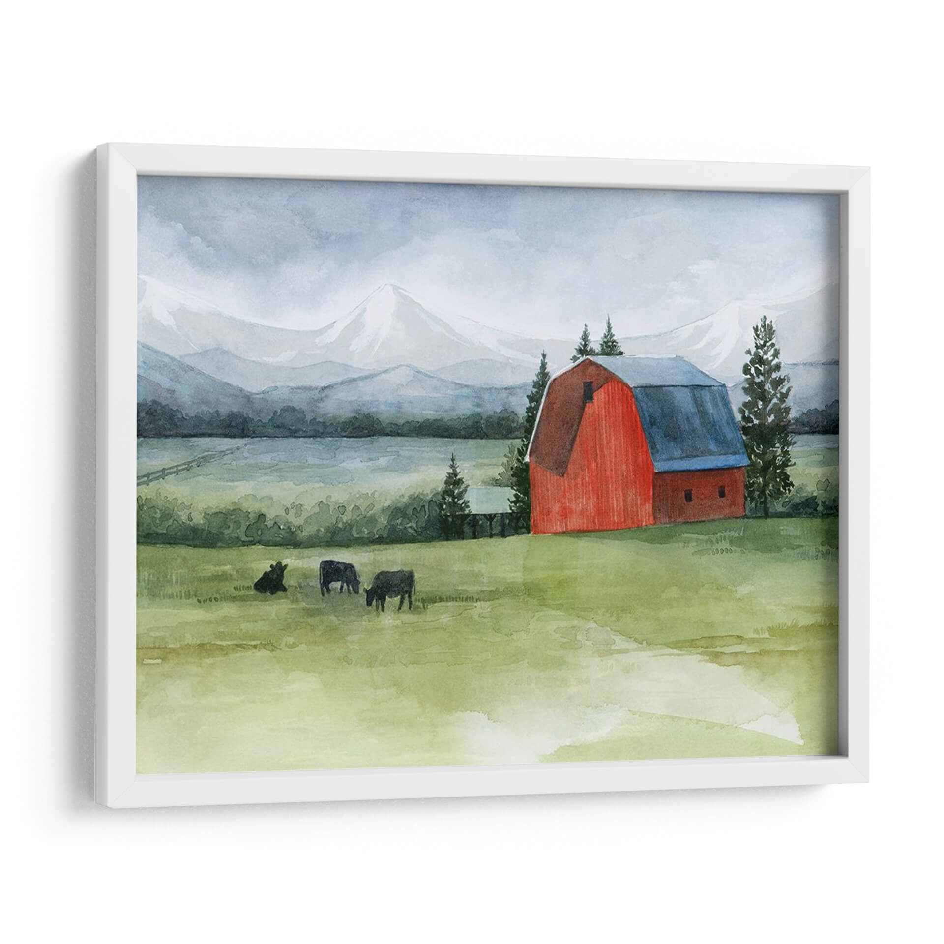 Sumérgete en la serenidad del campo con 'Valley Herd I', una obra de arte que captura la esencia de una vida rural idílica. Esta pieza, pintada con delicadeza en acuarela, presenta una icónica granja roja con un tejado azul, enmarcada por un paisaje ondulante de verdes praderas y un cielo nublado que se funde con majestuosas montañas a lo lejos. Tres vacas pastan tranquilamente en el campo, añadiendo una sensación de paz y conexión con la naturaleza. Los tonos tierra y verdes dominantes, junto con los sutiles toques de azul y rojo, crean una atmósfera calmada y acogedora. El estilo, que recuerda a las ilustraciones clásicas de granjas, evoca una sensación de nostalgia y simplicidad. 'Valley Herd I' es perfecta para añadir un toque rústico y sereno a tu sala de estar, dormitorio o incluso a un estudio. Este cuadro decorativo transformará cualquier espacio en un refugio de tranquilidad, invitando a la contemplación y al aprecio por la belleza del campo. Ideal para amantes de la naturaleza, la vida rural y el arte que evoca emociones genuinas.