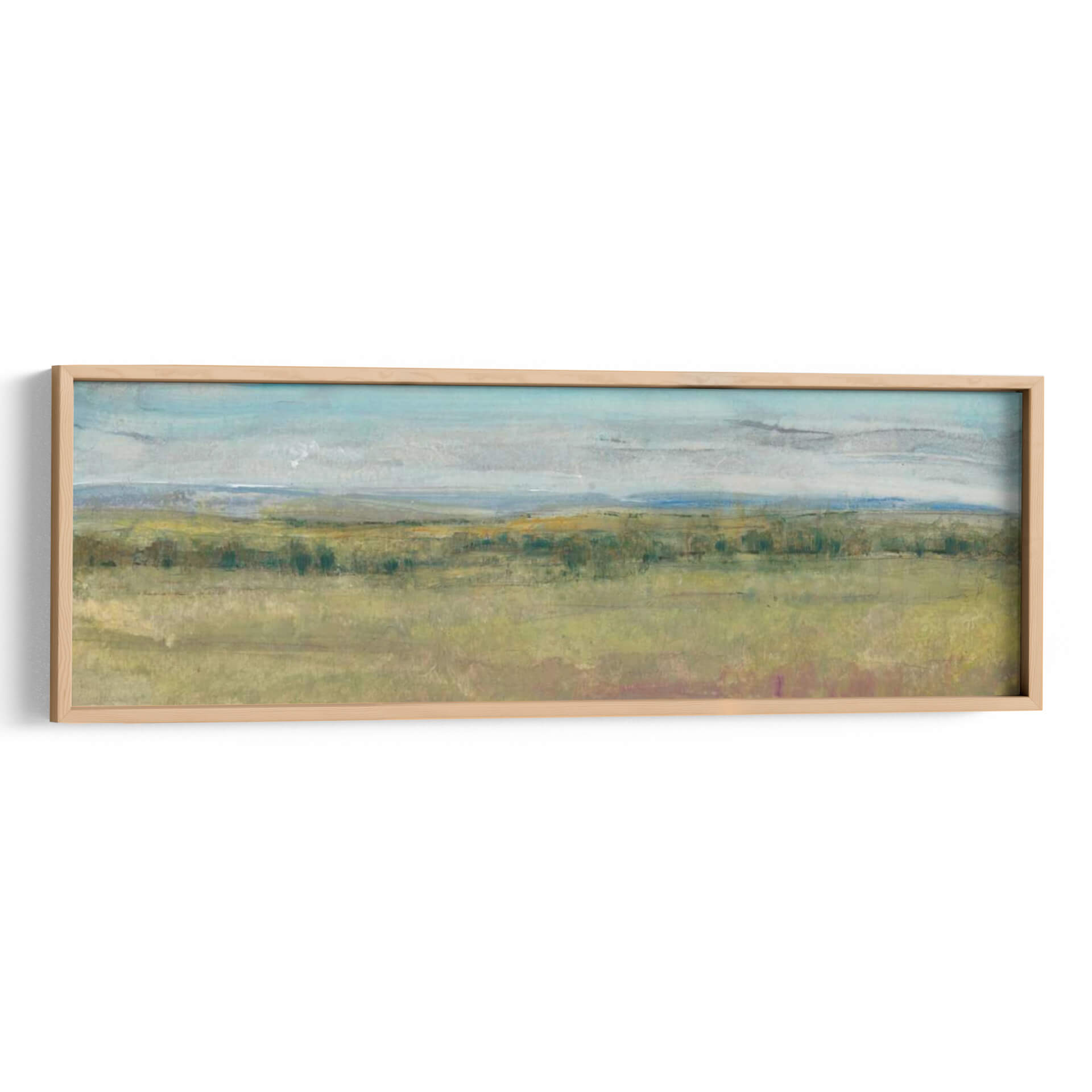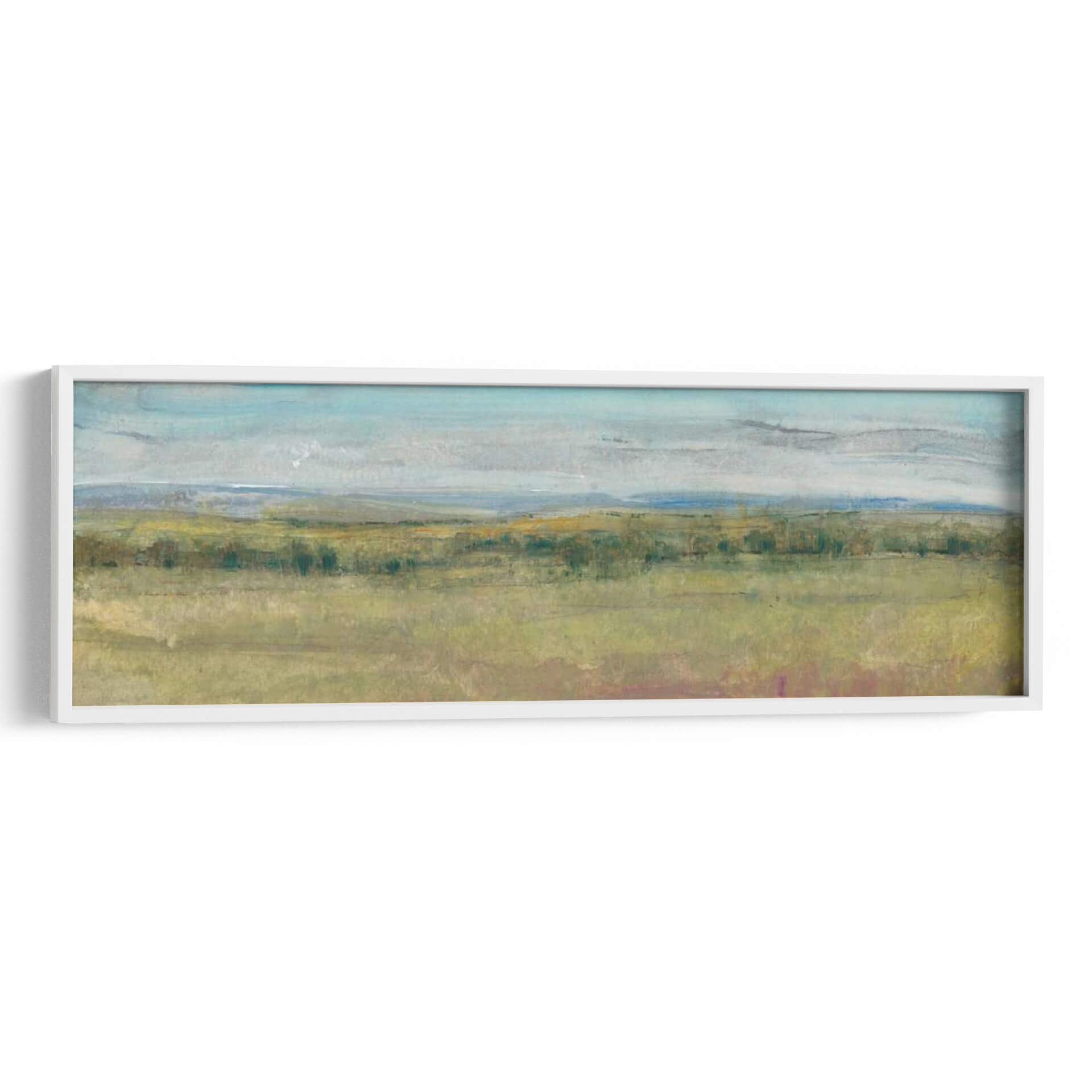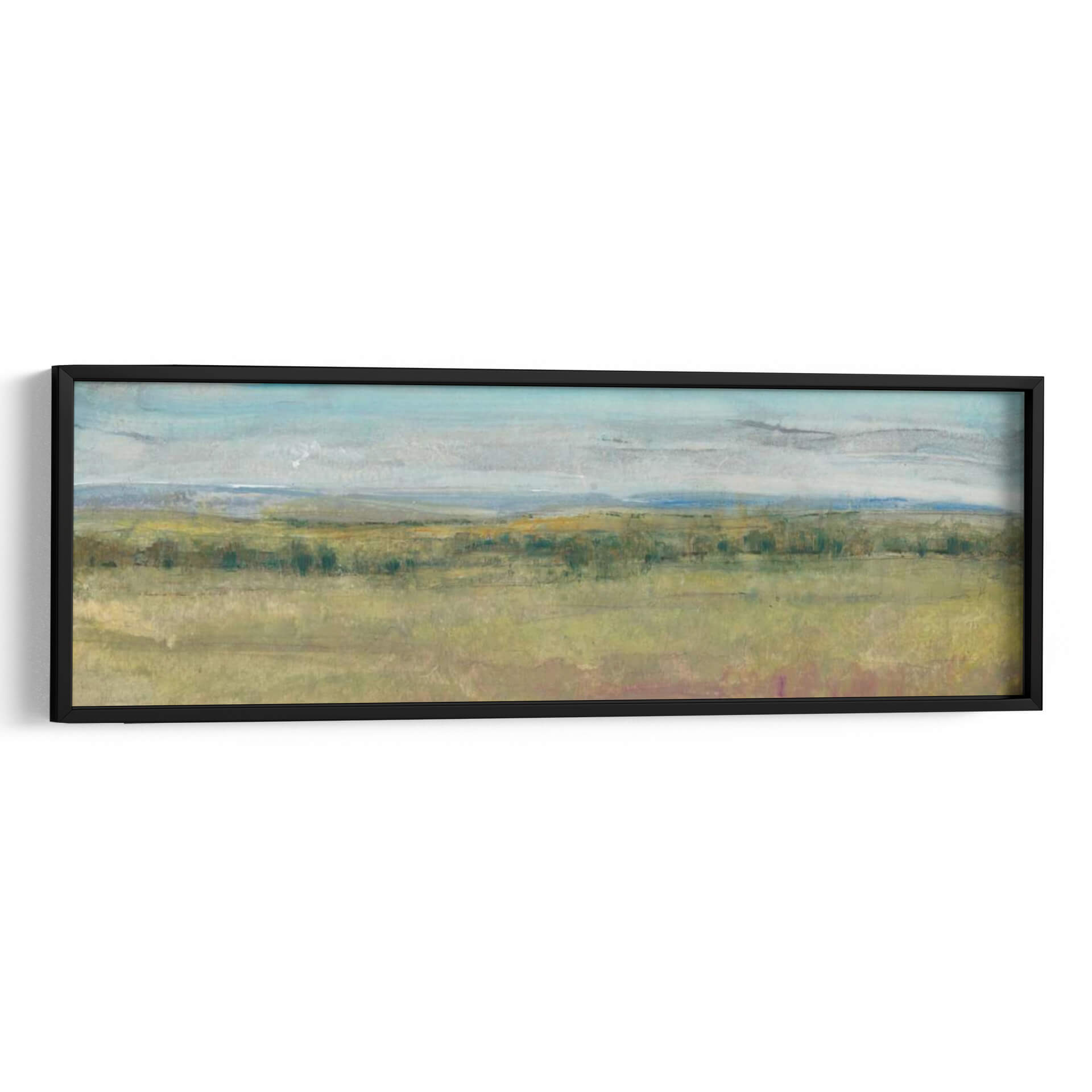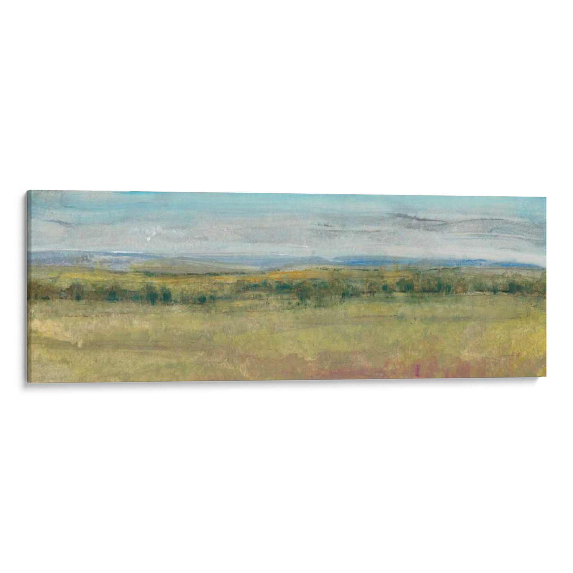 Sumérgete en la serenidad y la belleza etérea de "Verano Haze II" de Tim O'Toole, una obra de arte que captura la esencia de un paisaje bañado por la luz de verano. Esta pieza evoca una atmósfera de calma y contemplación, con pinceladas sueltas y una paleta de colores que transita suavemente entre los tonos tierra, verdes tenues y azules celestes. La composición horizontal se extiende como un horizonte infinito, invitando a la mirada a perderse en los detalles sutiles de campos y cielos brumosos. El estilo, que fusiona lo abstracto con el impresionismo, crea una sensación de profundidad y movimiento, como si el propio aire vibrara con la calidez del verano. "Verano Haze II" es ideal para infundir paz y un toque de naturaleza a cualquier espacio, desde una sala de estar acogedora hasta un sereno dormitorio o una oficina que busque un respiro visual. Este cuadro decorativo contemporáneo es una ventana a un momento de quietud, perfecto para quienes aprecian el arte que equilibra la estética con la emoción. Añade esta pieza única a tu colección y transforma tu hogar en un refugio de tranquilidad.