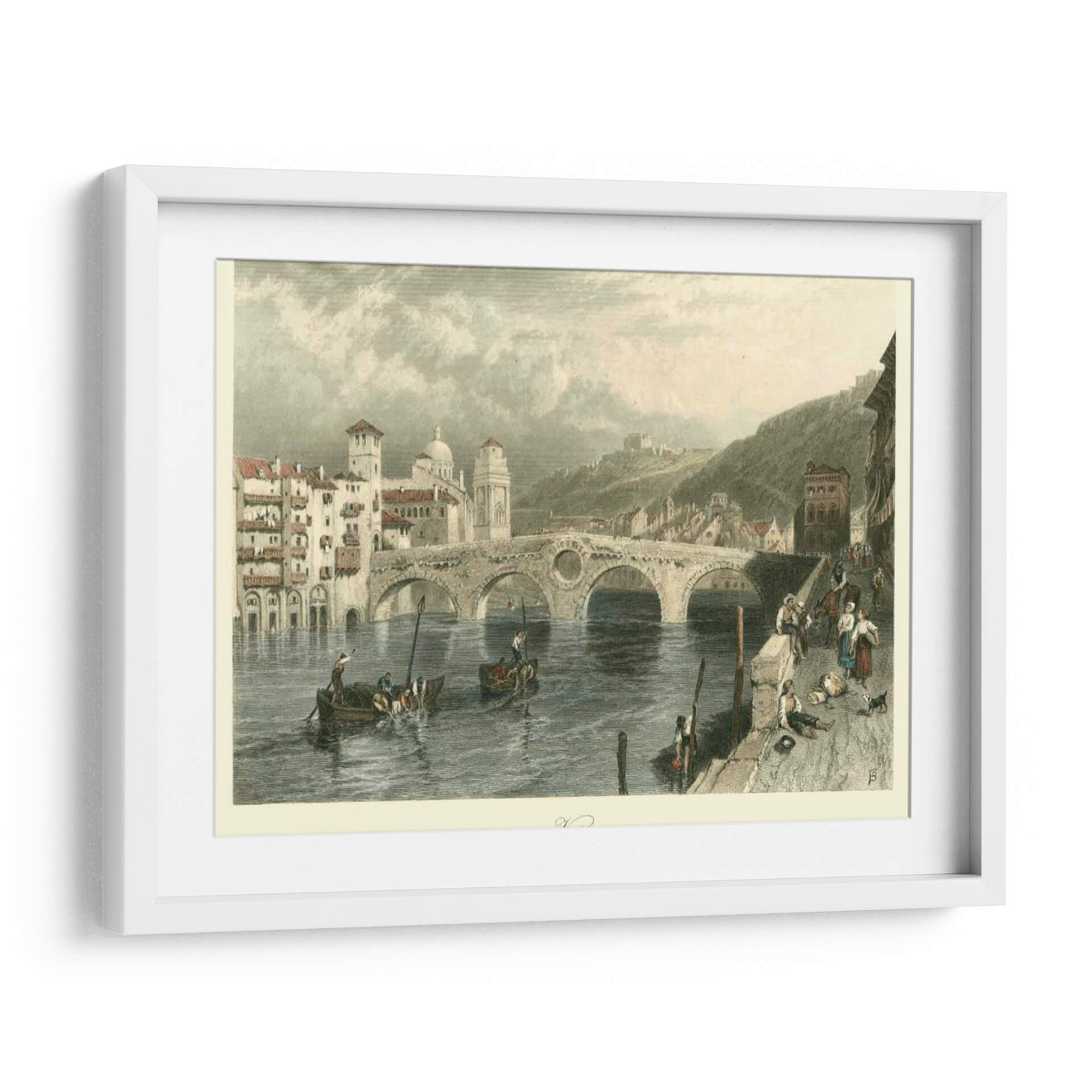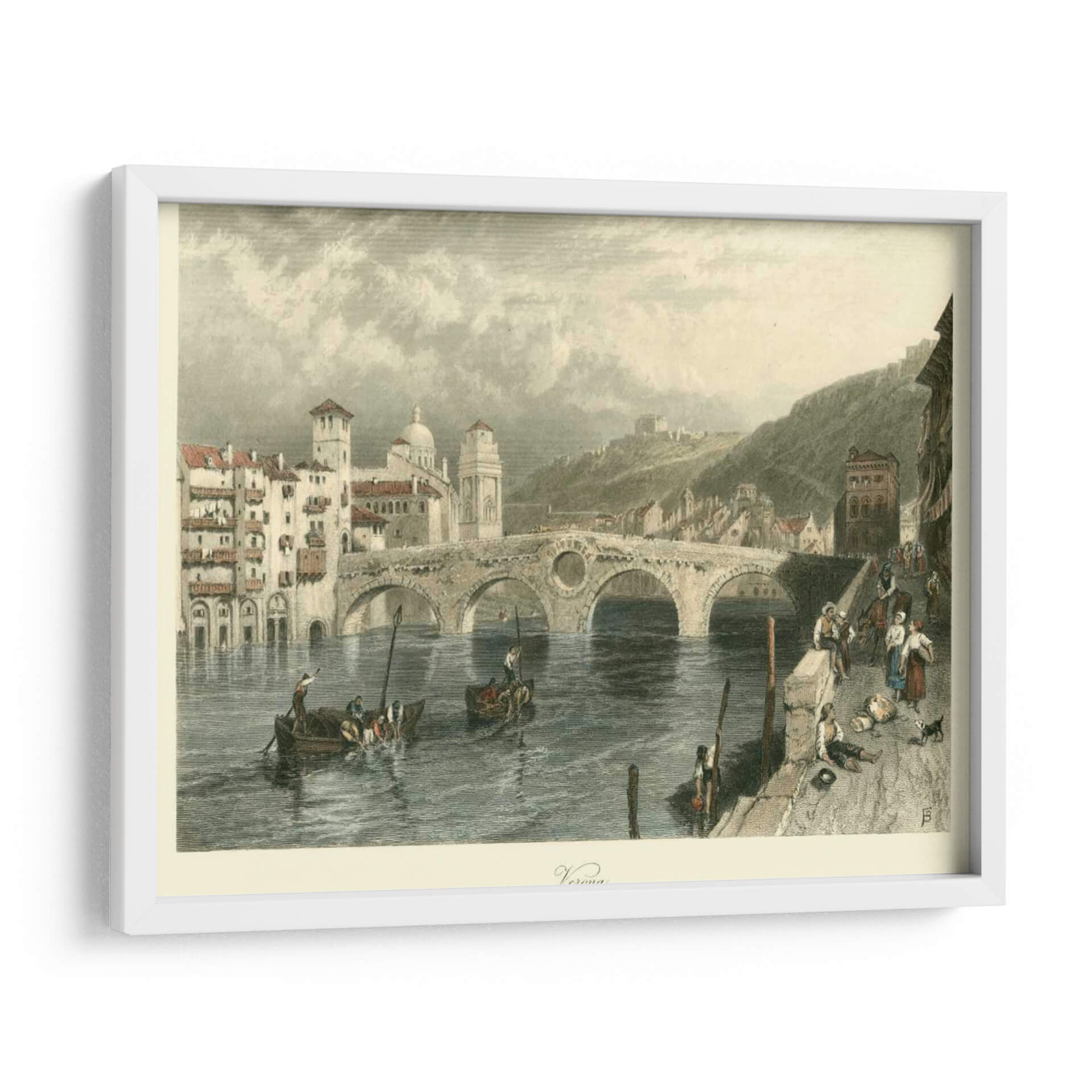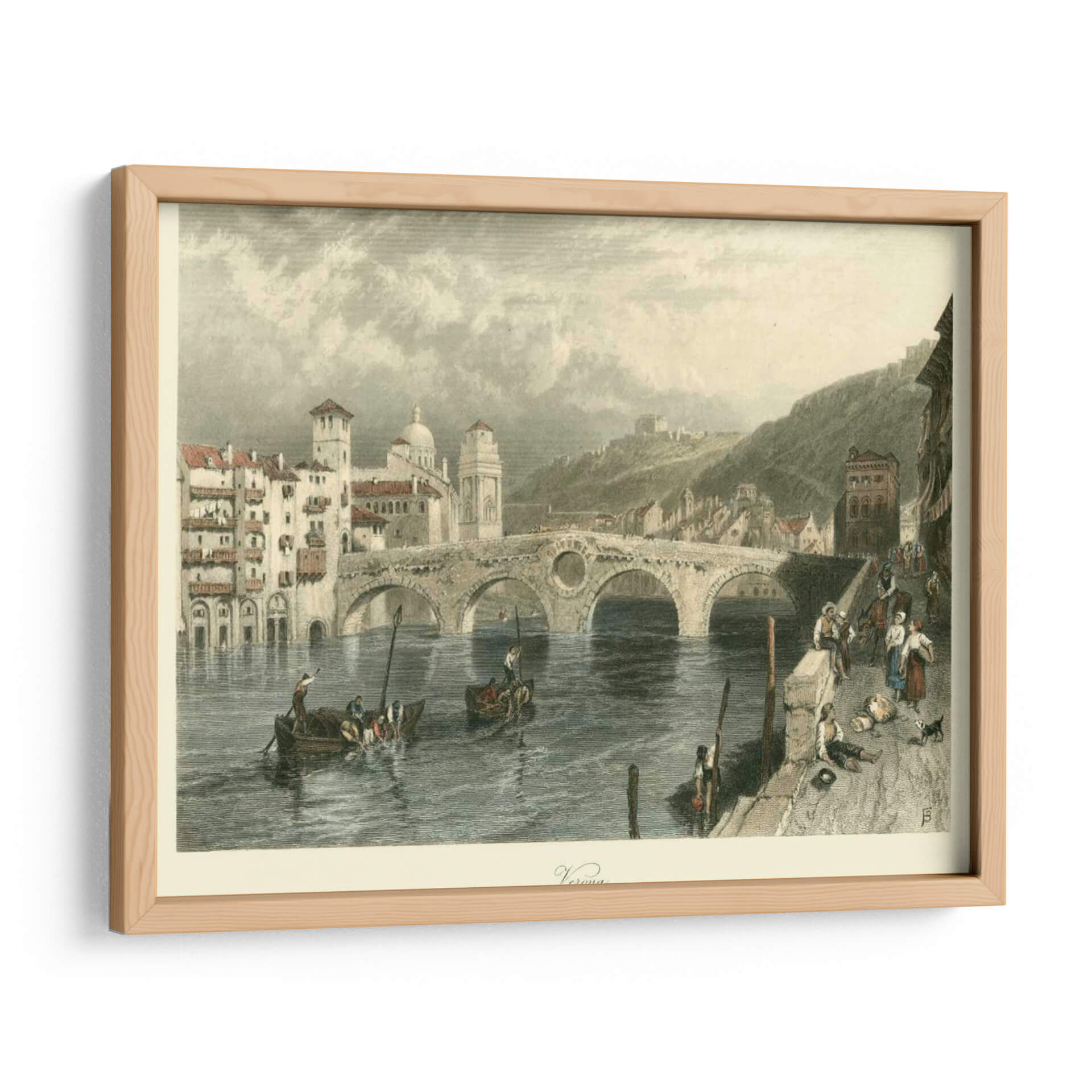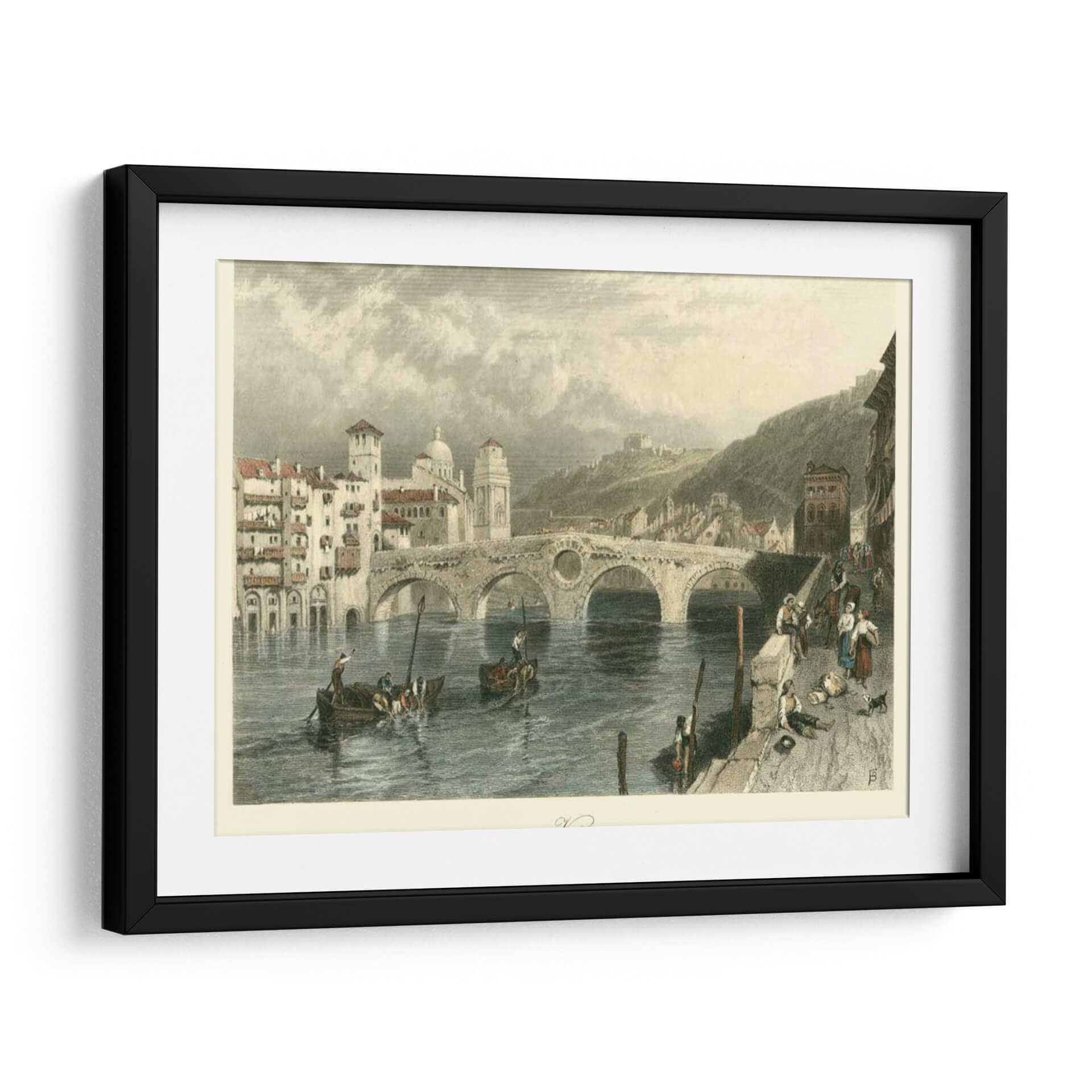 Transporta tus sentidos a la romántica ciudad de Verona con este evocador cuadro decorativo. La obra captura la majestuosidad del Ponte Pietra, un antiguo puente de piedra que se alza sobre el río Adigio, flanqueado por edificios históricos de tonos ocres y terracota. El agua, representada con sutiles tonalidades azules y grises, refleja el cielo nublado y la arquitectura circundante, creando una atmósfera serena y ligeramente melancólica. Pequeñas embarcaciones navegan tranquilamente por el río, y en la orilla, figuras de época pasean, añadiendo un toque de vida y narrativa a la escena. La paleta de colores, dominada por tonos tierra, grises, azules pálidos y acentos rojizos, confiere a la pieza una sensación de antigüedad y sofisticación. Ideal para aquellos que buscan infundir a su hogar u oficina un aire de historia, cultura y belleza clásica, este cuadro decorativo es una ventana a un pasado pintoresco que invita a la contemplación y al ensueño, convirtiéndose en un punto focal elegante en cualquier espacio.