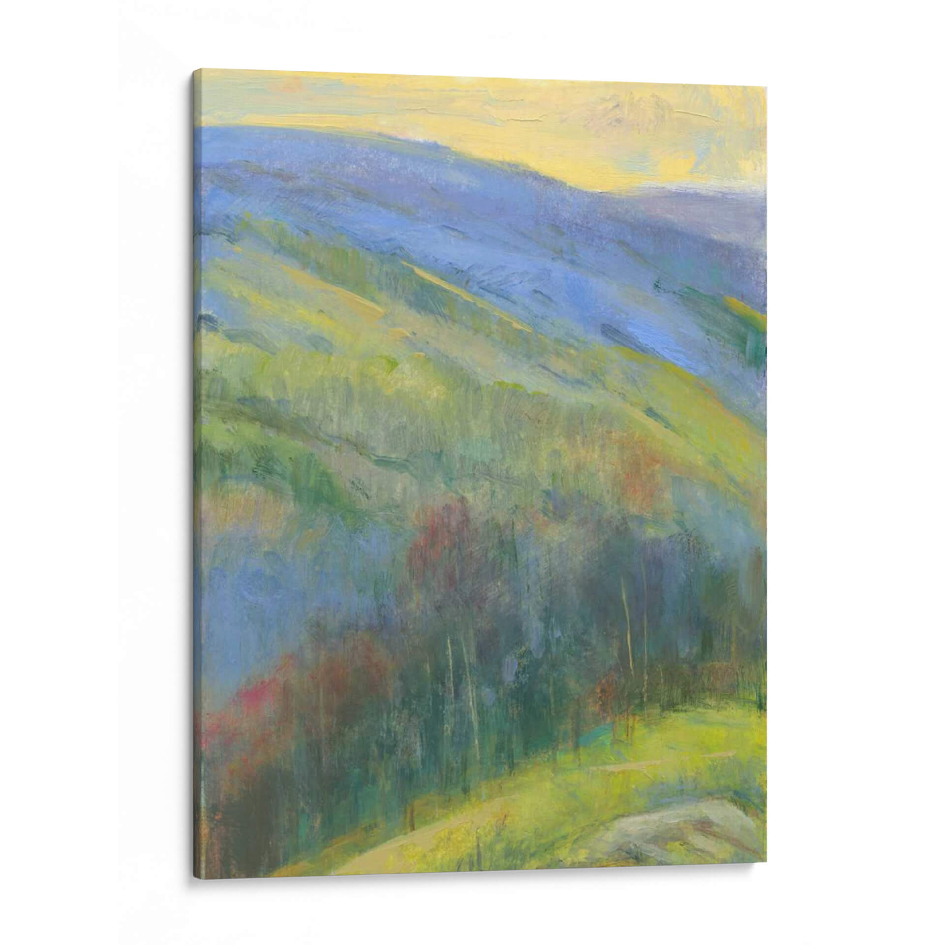 Sumérgete en la serenidad de "Vista a la Montaña IV", una obra de arte que captura la majestuosidad de la naturaleza con una pincelada expresiva y emotiva. Este cuadro decorativo, del artista H. Thomas, te transportará a un paisaje de montaña bañado por la luz del amanecer o el atardecer, donde las colinas se funden en suaves tonos azules y verdes. La paleta de colores, dominada por verdes vibrantes, azules profundos y toques de amarillo cálido en el cielo, crea una atmósfera de calma y contemplación. El estilo pictórico, con pinceladas sueltas y gestuales, aporta una sensación de movimiento y vida a la escena, invitando a la reflexión sobre la belleza efímera del paisaje. "Vista a la Montaña IV" es ideal para añadir un toque de naturaleza y tranquilidad a tu sala de estar, dormitorio u oficina, convirtiéndose en un punto focal inspirador que evoca la paz de la alta montaña. Descubre la profundidad y la emoción de este paisaje contemporáneo y transforma tus espacios con su serena belleza.