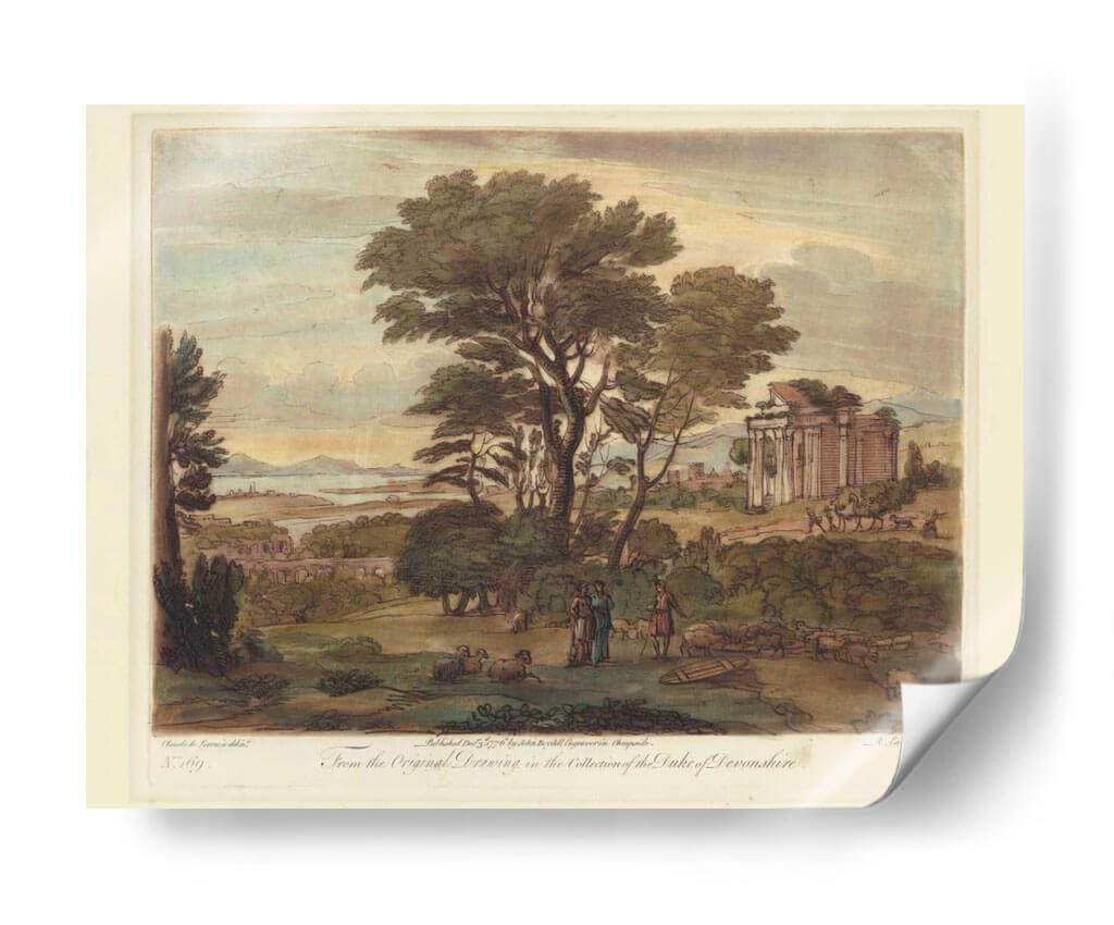 Transporta tu espacio a la serenidad de la campiña italiana con "Vista Italiana I", una obra maestra del renombrado Claude Lorrain. Este evocador cuadro decorativo captura la esencia de un paisaje idílico, donde la naturaleza exuberante se encuentra con vestigios de arquitectura clásica. Los tonos suaves y terrosos, combinados con el cielo crepuscular y la detallada representación de árboles frondosos, crean una atmósfera de paz y tranquilidad. La composición, que combina la vastedad del horizonte con la intimidad de las figuras humanas y el rebaño en primer plano, invita a la contemplación y al sosiego. Ideal para salones, estudios o dormitorios que buscan un toque de elegancia atemporal y una conexión con la belleza clásica. "Vista Italiana I" no es solo una pieza decorativa, es una ventana a un mundo de calma y armonía, perfecta para aquellos que aprecian el arte paisajista con un toque histórico y una ejecución magistral. Añade esta joya a tu colección y transforma cualquier habitación en un refugio de inspiración y serenidad.