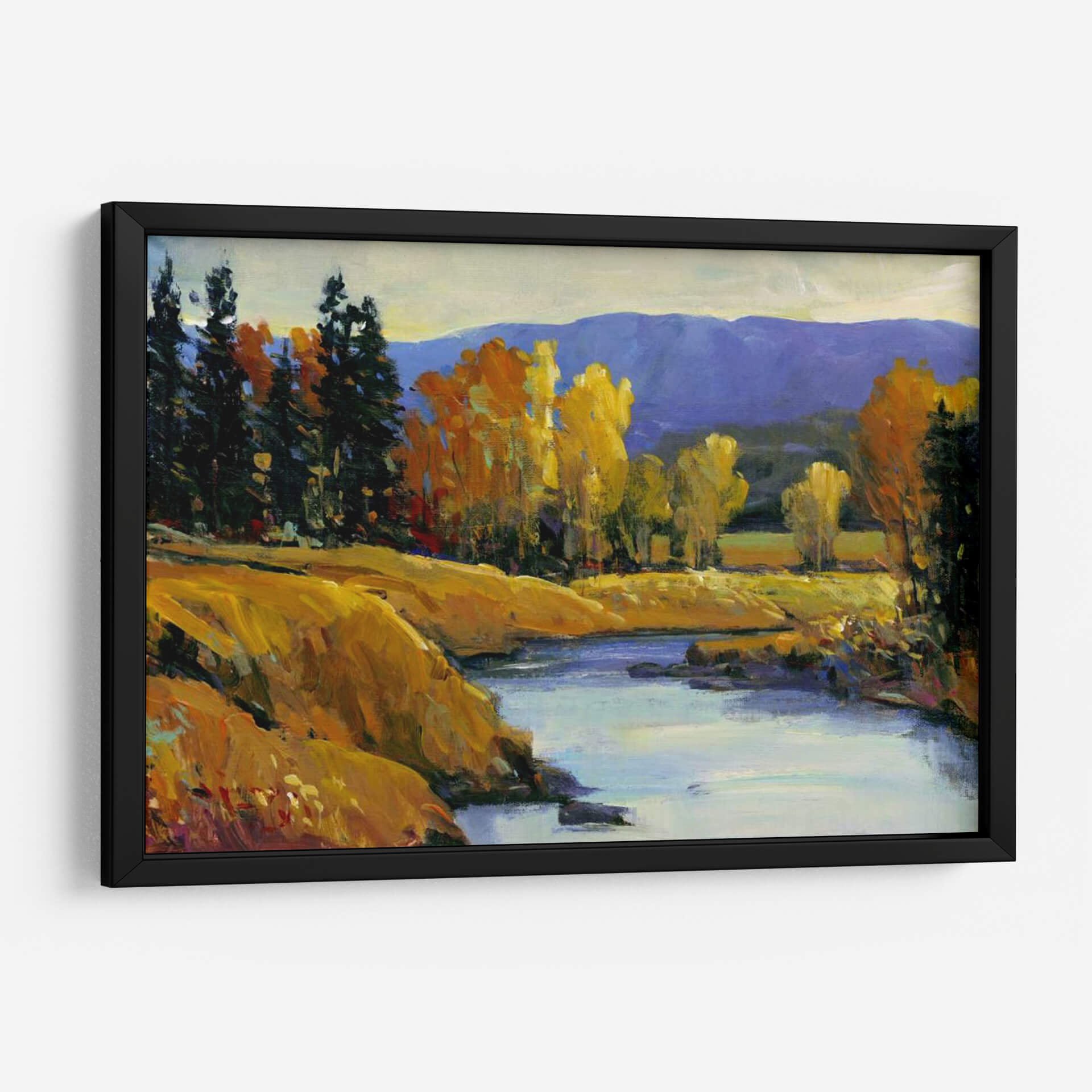 Sumérgete en la serena belleza de "Vista Púrpura Mountain II", una obra maestra contemporánea de Tim O'Toole. Este cuadro decorativo captura la esencia de un paisaje otoñal bañado por la luz dorada, donde las vibrantes tonalidades amarillas de los álamos contrastan armoniosamente con el profundo púrpura de las montañas distantes y el azul sereno de un río que fluye. La pincelada expresiva y la rica paleta de colores invitan a la contemplación, creando una atmósfera de paz y conexión con la naturaleza. Ideal para añadir un toque de calidez y sofisticación a tu salón, dormitorio o estudio, esta pieza evoca la tranquilidad de un paseo al atardecer y la majestuosidad de las cumbres montañosas. Cada detalle, desde las sombras alargadas hasta el juego de luces sobre el agua, está cuidadosamente plasmado para ofrecer una experiencia visual envolvente. Transforma tu espacio con este lienzo que celebra la belleza efímera del otoño y la imponente presencia de la naturaleza, aportando un aire de frescura y serenidad a cualquier ambiente. Una adición perfecta para amantes del arte paisajístico y quienes buscan una decoración que inspire calma y reflexión.