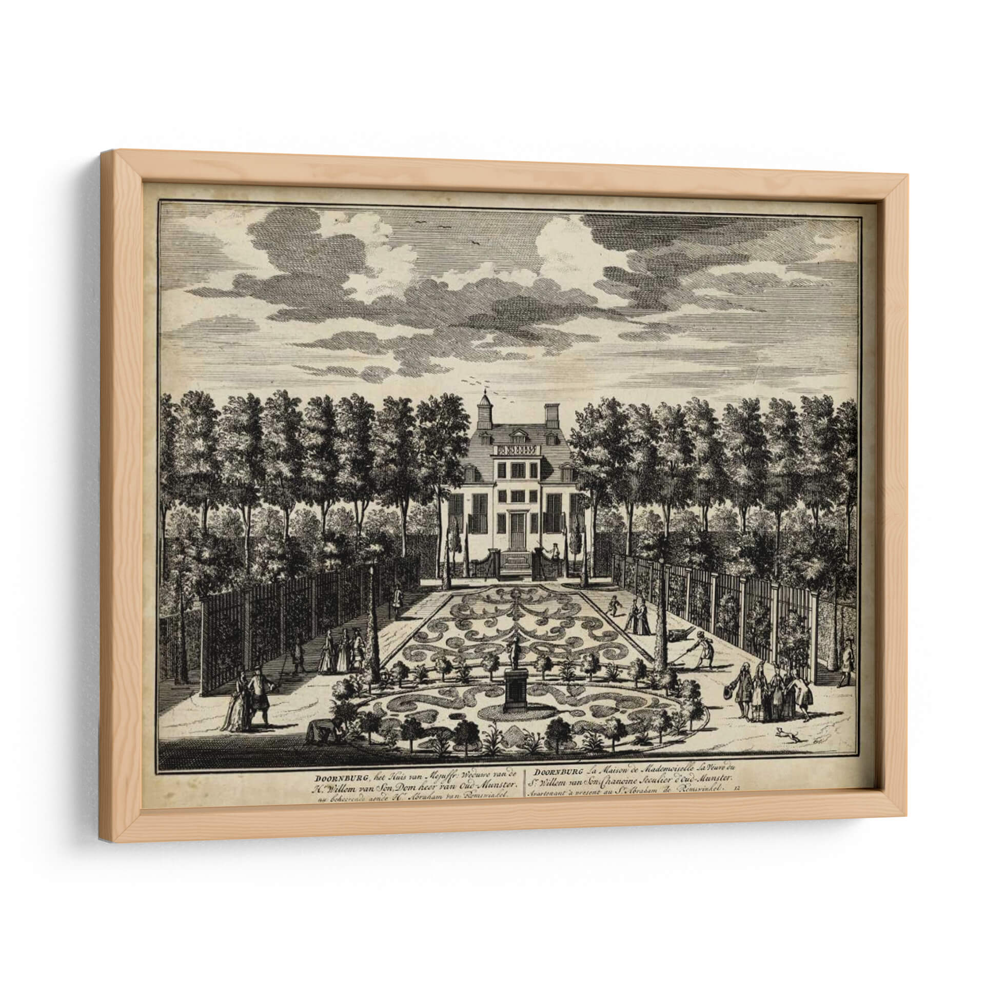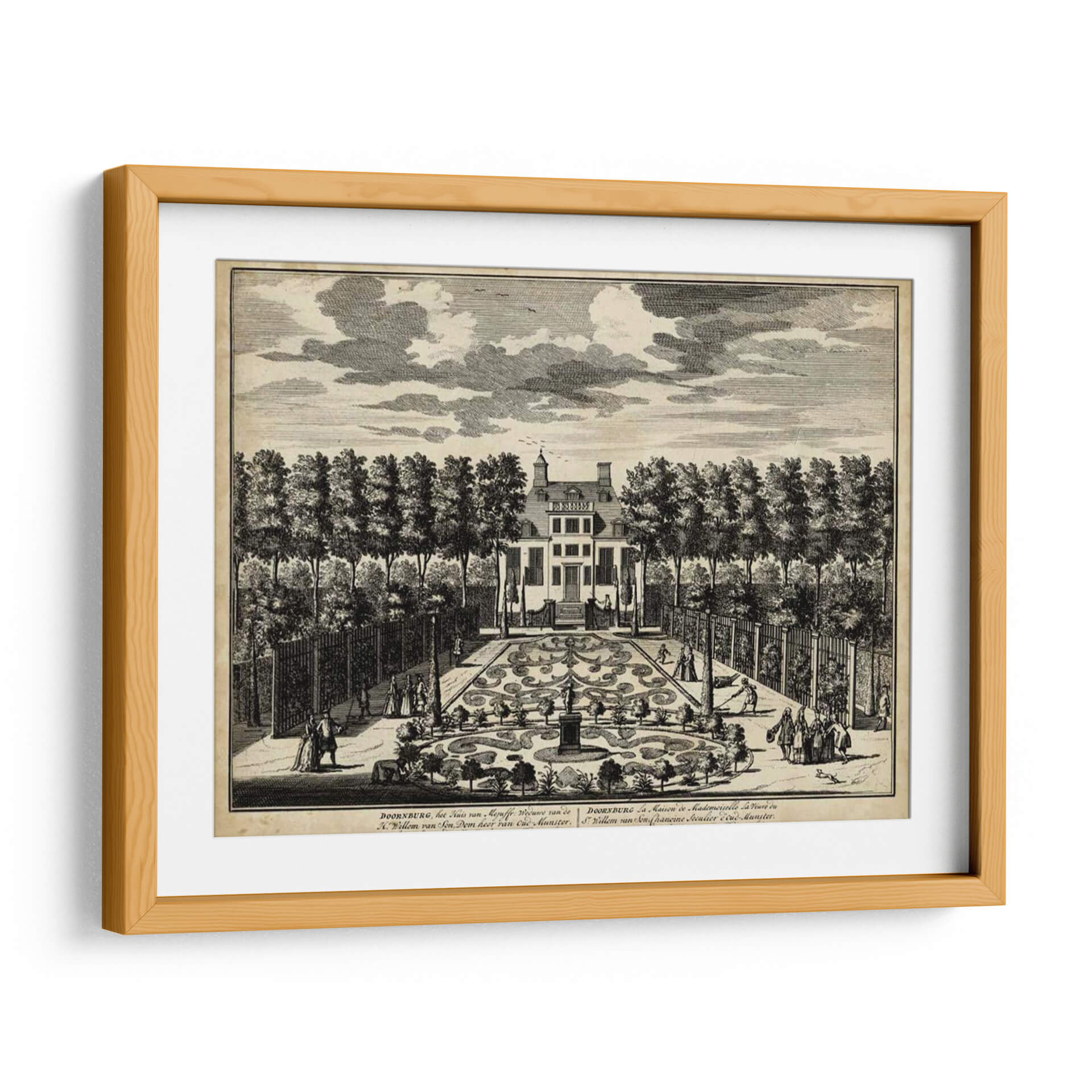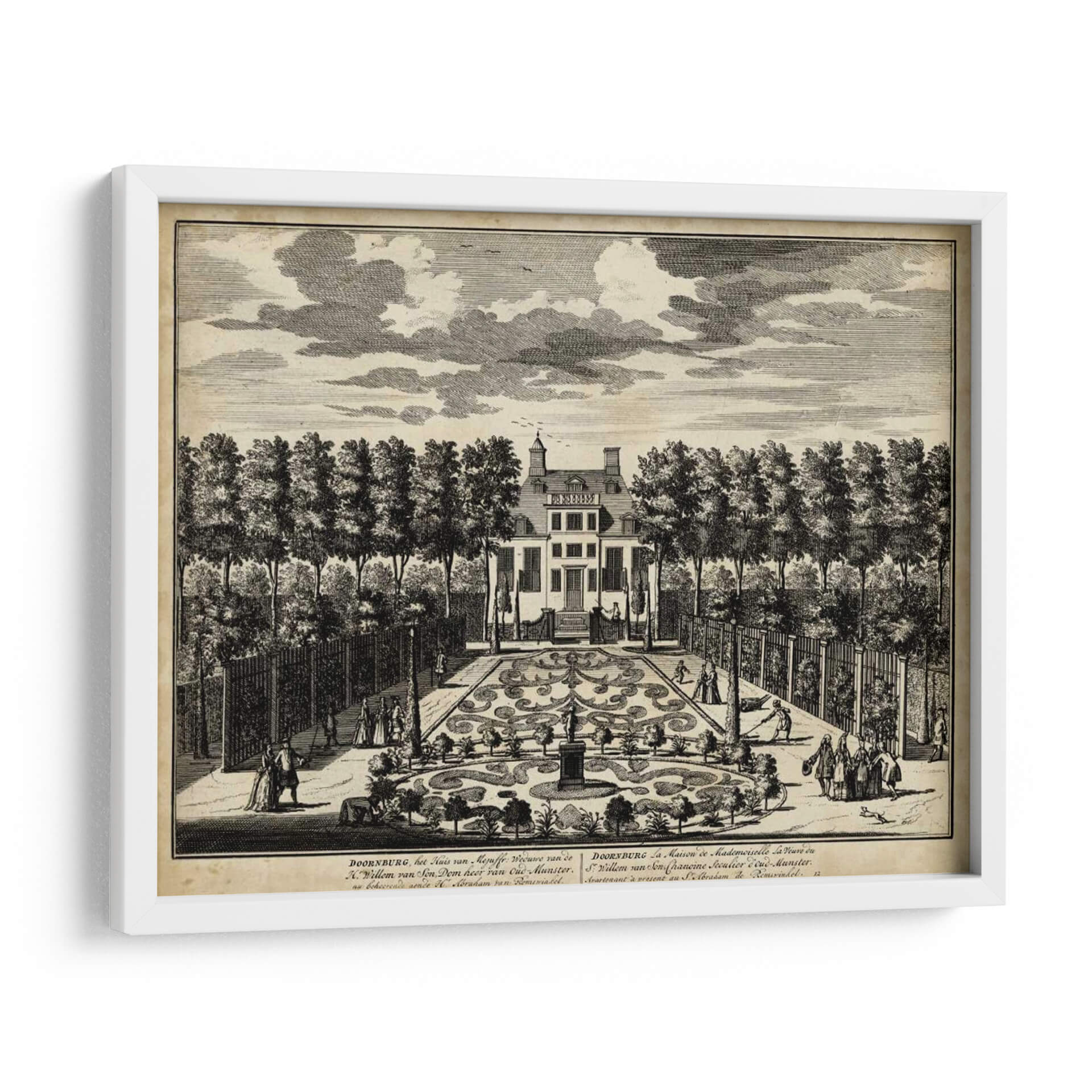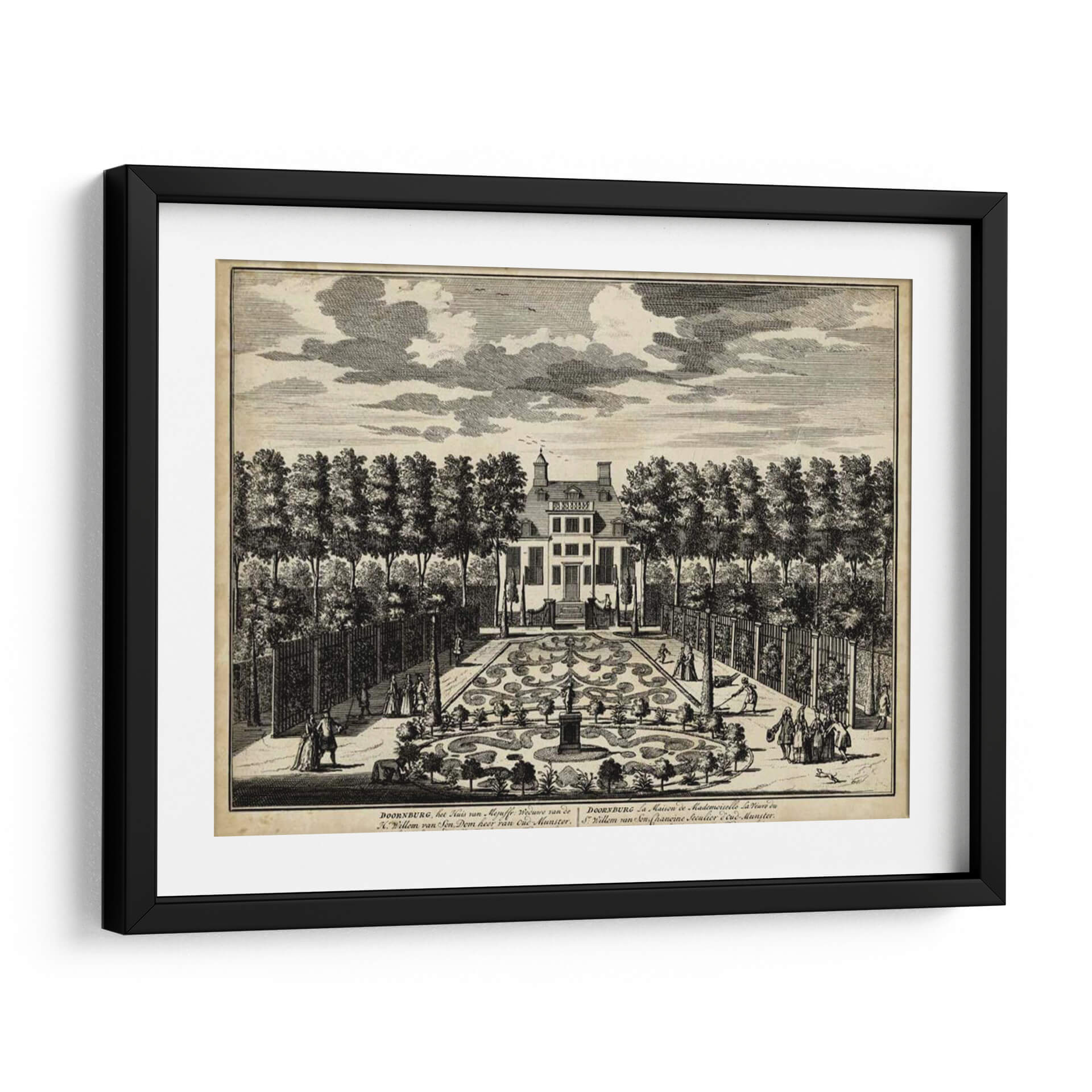 Sumérgete en la elegancia histórica con 'Vistas De Ámsterdam I' de Nicolaus Visher, una obra de arte que captura la esencia de la arquitectura clásica y los jardines formales. Este grabado detallado transporta al espectador a una época de esplendor, mostrando una majestuosa casa flanqueada por árboles simétricamente plantados y un intrincado jardín de parterres. Las figuras humanas en trajes de época añaden vida a la escena, invitando a la contemplación de la vida social y la arquitectura paisajística del siglo XVIII. La paleta de tonos sepia y blanco y negro evoca una sensación de nostalgia y refinamiento, perfecta para añadir un toque de sofisticación atemporal a cualquier espacio. Ideal para amantes de la historia, la arquitectura y el arte clásico, este cuadro decorativo es una pieza central que invita a la conversación y eleva la estética de salones, estudios u oficinas. Su composición equilibrada y el exquisito detalle lo convierten en una adición valiosa para coleccionistas y decoradores que buscan piezas con profundidad y carácter. Transforma tu hogar en una galería personal con este evocador grabado que rinde homenaje al legado artístico y arquitectónico.
