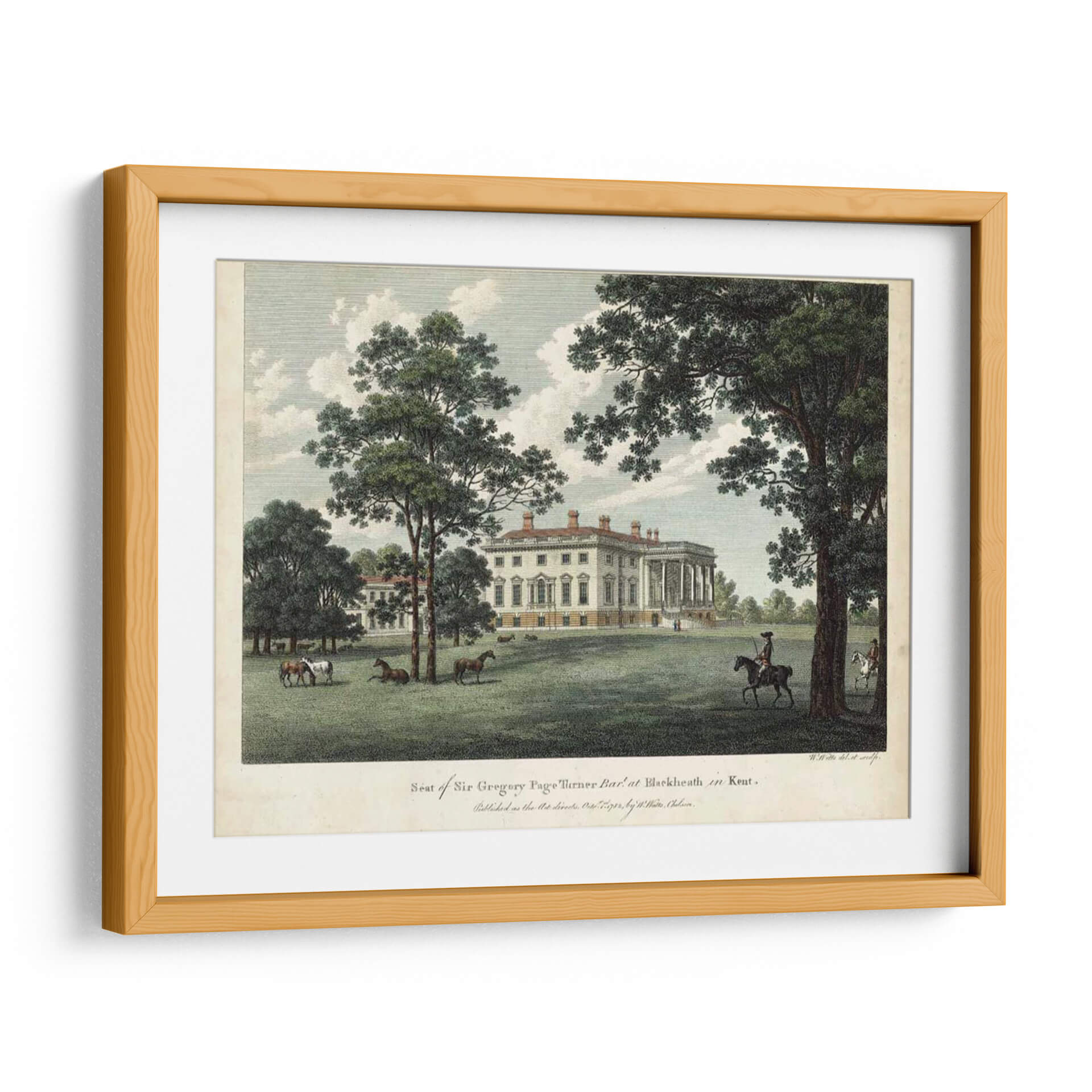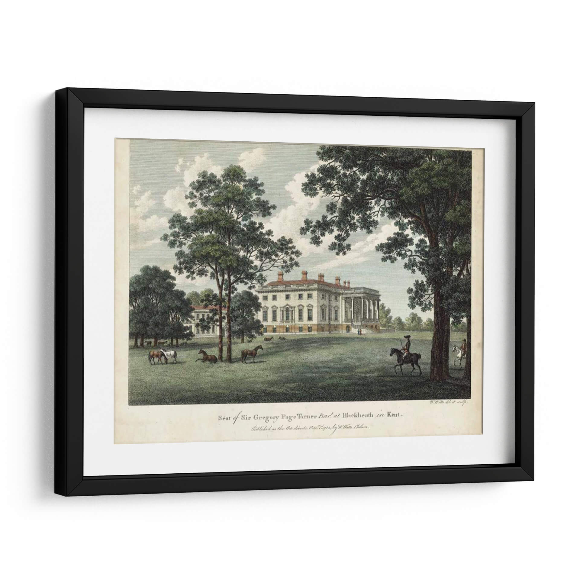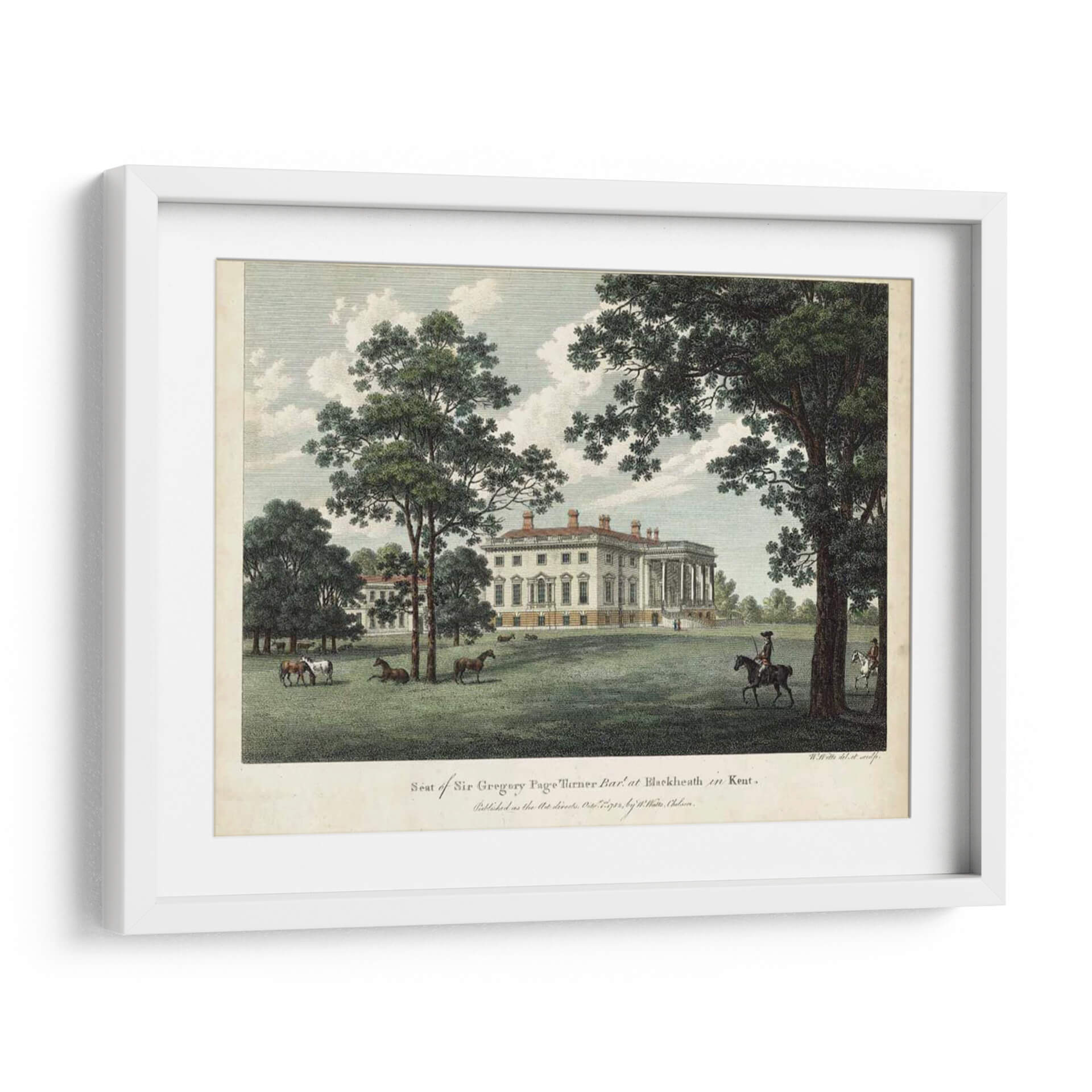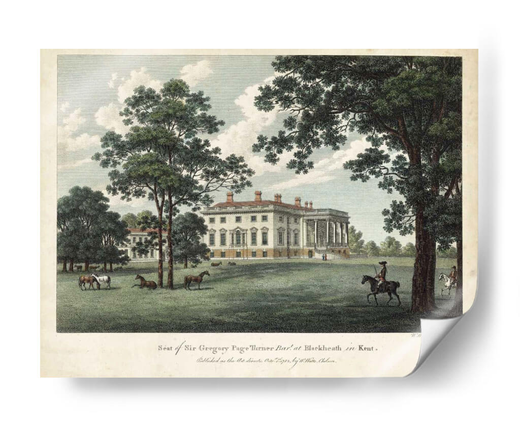 Embárquese en un viaje visual al pasado con "Vistas IV Vatios", una exquisita obra de arte que captura la majestuosidad de una finca histórica. Este cuadro decorativo presenta una imponente mansión de arquitectura clásica, flanqueada por frondosos árboles y un cielo sereno con nubes dispersas. La escena se anima con la presencia de caballos pastando pacíficamente en la vasta extensión verde y un jinete solitario que evoca una sensación de tranquilidad y grandeza. La paleta de colores, dominada por verdes naturales, blancos cremosos y toques de azul cielo, crea una atmósfera de calma y sofisticación. El estilo de la obra, reminiscentes de grabados antiguos, aporta un encanto atemporal y una elegancia clásica. "Vistas IV Vatios" es ideal para añadir un toque de historia y serenidad a salones, estudios o comedores, transportando a quienes lo contemplan a un ambiente de paz y opulencia campestre. Este cuadro decorativo es una pieza central que invita a la contemplación y realza cualquier espacio con su narrativa visual y su estética refinada, perfecta para amantes del arte histórico y la decoración de interiores con carácter.