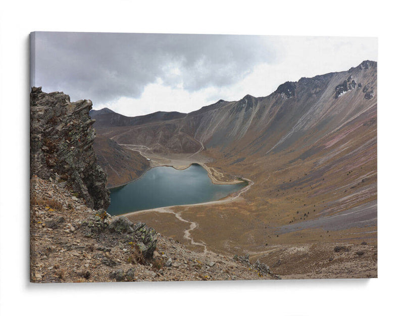 Captura la majestuosidad de la naturaleza con esta impresionante fotografía del Nevado de Toluca, obra de Luis Rodrigo Magaña Andrade. La imagen te transporta al corazón de este icónico volcán mexicano, revelando un paisaje de cráter sereno y sobrecogedor. El lago interior, de un profundo tono azul verdoso, contrasta sutilmente con las laderas de tonos ocres y marrones que lo rodean, esculpidas por el tiempo y los elementos. Las texturas rocosas y la vegetación escasa añaden un toque de realismo crudo a la escena, mientras que el cielo nublado y grisáceo proporciona una atmósfera de solemnidad y contemplación. Esta pieza captura la grandiosidad y la tranquilidad de un entorno natural en su máxima expresión. Los colores terrosos y el azul profundo del agua la convierten en una adición perfecta para cualquier espacio que busque evocar calma, aventura y una conexión con la tierra. Ideal para salones, oficinas o cualquier lugar donde se desee un punto focal que inspire reflexión y aprecio por la belleza del mundo natural. Un recordatorio visual de la fuerza y la serenidad de la alta montaña.
