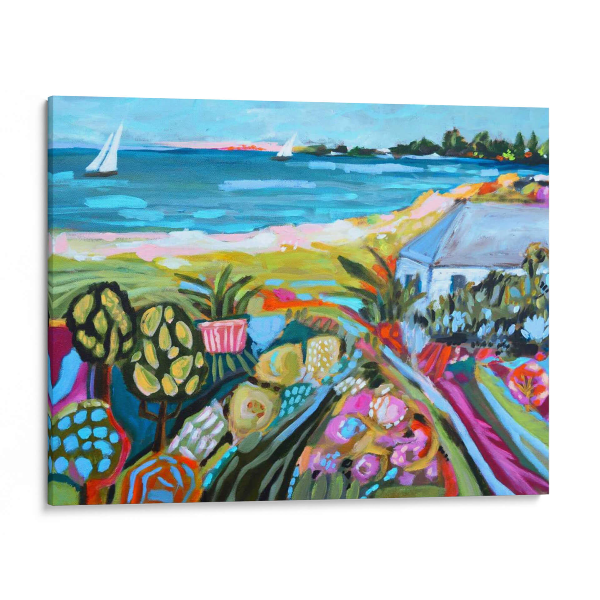 Sumérgete en la serena belleza de "Whimsy Náutico I", una vibrante obra de arte de Karen Fields que captura la esencia de un día costero con un toque de fantasía. Esta pieza evoca la tranquilidad del mar y la alegría de un refugio junto a la playa. La paleta de colores, dominada por azules profundos del océano, verdes exuberantes y toques juguetones de rosa y amarillo, crea una atmósfera acogedora y optimista. La técnica impresionista de Fields, con pinceladas audaces y expresivas, da vida al paisaje, invitando al espectador a sentir la brisa marina y el sol cálido. Se vislumbra una casa blanca idílica, rodeada de un jardín enérgico y flores vibrantes, con dos veleros navegando elegantemente en el horizonte. Este cuadro decorativo es perfecto para añadir un toque de color y serenidad a cualquier espacio, desde una sala de estar moderna hasta un dormitorio o estudio que necesite un escape visual. "Whimsy Náutico I" no es solo una obra de arte, es una invitación a un paraíso costero lleno de encanto y vitalidad.
