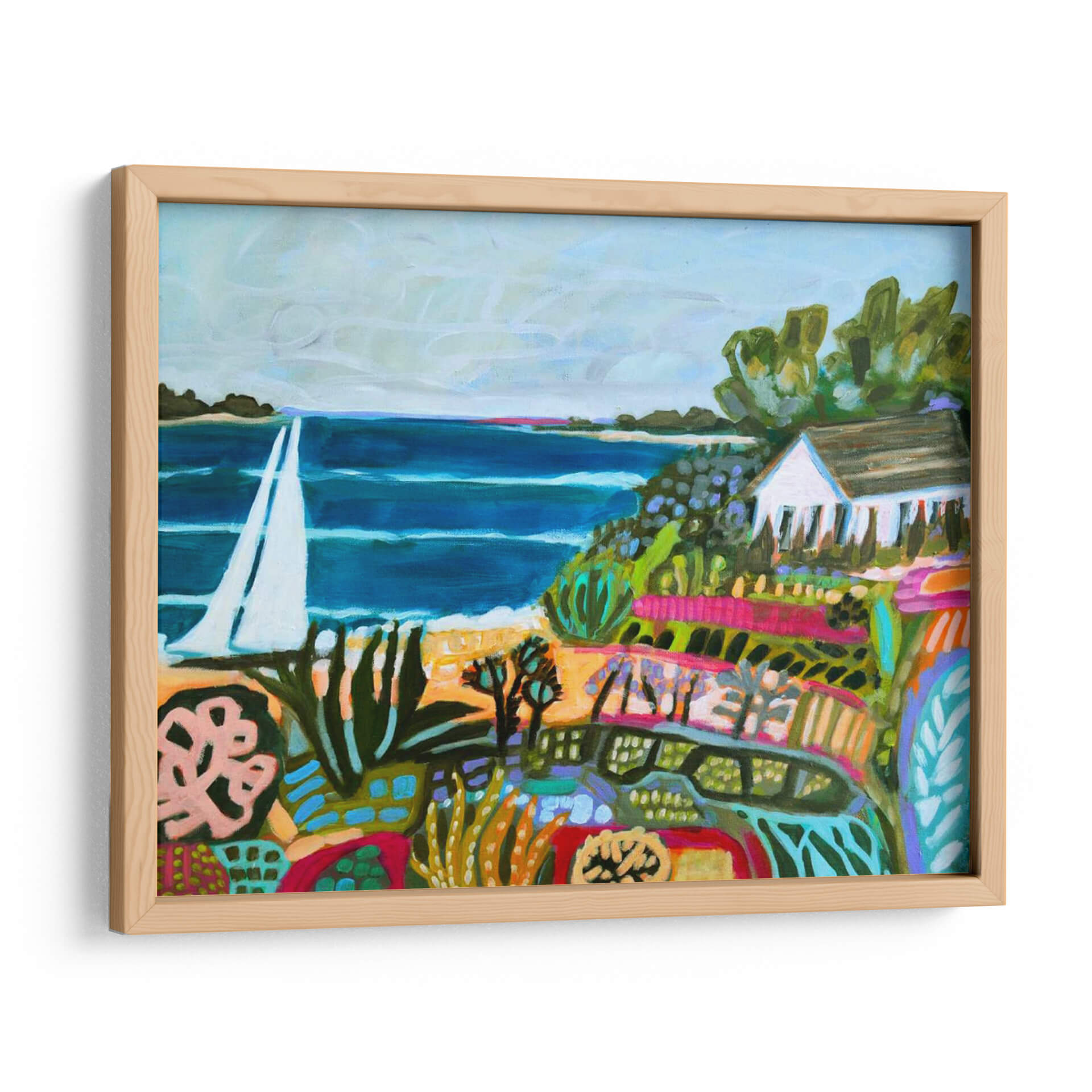 Sumérgete en la vibrante y alegre escena costera de "Whimsy Náutico Ii", una obra de arte que captura la esencia de un día perfecto junto al mar. Con una paleta de colores audaz y un estilo postimpresionista lleno de energía, este cuadro decorativo te transportará a un refugio tranquilo. La composición presenta un velero blanco navegando en un mar azul profundo y ondulante, con una encantadora casa blanca anidada entre un exuberante y colorido jardín que desborda vitalidad. Los verdes intensos de la vegetación contrastan con toques de fucsia, naranja y turquesa, creando una atmósfera juguetona y festiva. Las pinceladas sueltas y expresivas añaden textura y movimiento a la pieza, invitando a la contemplación. Ideal para iluminar cualquier espacio, desde una sala de estar moderna hasta un dormitorio sereno, este cuadro es una invitación a la escapada y la alegría. Añade un toque de encanto náutico y optimismo a tu hogar con esta pieza única de Karen Fields. Transforma tus paredes en una ventana a un paraíso lleno de color y vida, donde la brisa marina y la luz del sol son las protagonistas.
