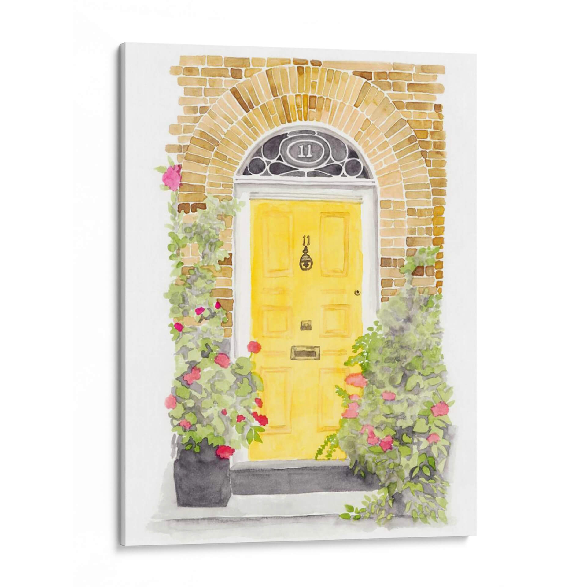 Transforma tu hogar con la vibrante y acogedora obra de arte 'Cálida Bienvenida V', una pieza que irradia encanto y optimismo. Esta cautivadora acuarela captura la esencia de una puerta principal de color amarillo brillante, enmarcada por un arco de ladrillos y flanqueada por exuberante vegetación y delicadas flores rosadas. La artista Naomi McCavitt emplea una técnica de acuarela suave y etérea, dando vida a cada detalle con pinceladas fluidas y una paleta de colores cálidos que invitan a la contemplación. La puerta amarilla, un símbolo universal de alegría y hospitalidad, se convierte en el punto focal, atrayendo la mirada hacia su llamativo color y la sutil elegancia de su diseño, incluyendo el número '11' engastado en un remate decorativo. La combinación de los tonos terrosos de los ladrillos, el verde vibrante de las plantas y el rosa tierno de las flores crea una atmósfera de serenidad y bienvenida, perfecta para añadir un toque de calidez y personalidad a cualquier espacio. Este cuadro decorativo es ideal para crear un punto focal acogedor en tu sala de estar, un recibidor lleno de encanto o incluso para aportar un toque de optimismo a tu oficina. 'Cálida Bienvenida V' no es solo una obra de arte, es una invitación a la felicidad y a la belleza de los pequeños detalles que hacen un hogar especial. Añade esta pieza única a tu colección y deja que su energía positiva inunde tus espacios.