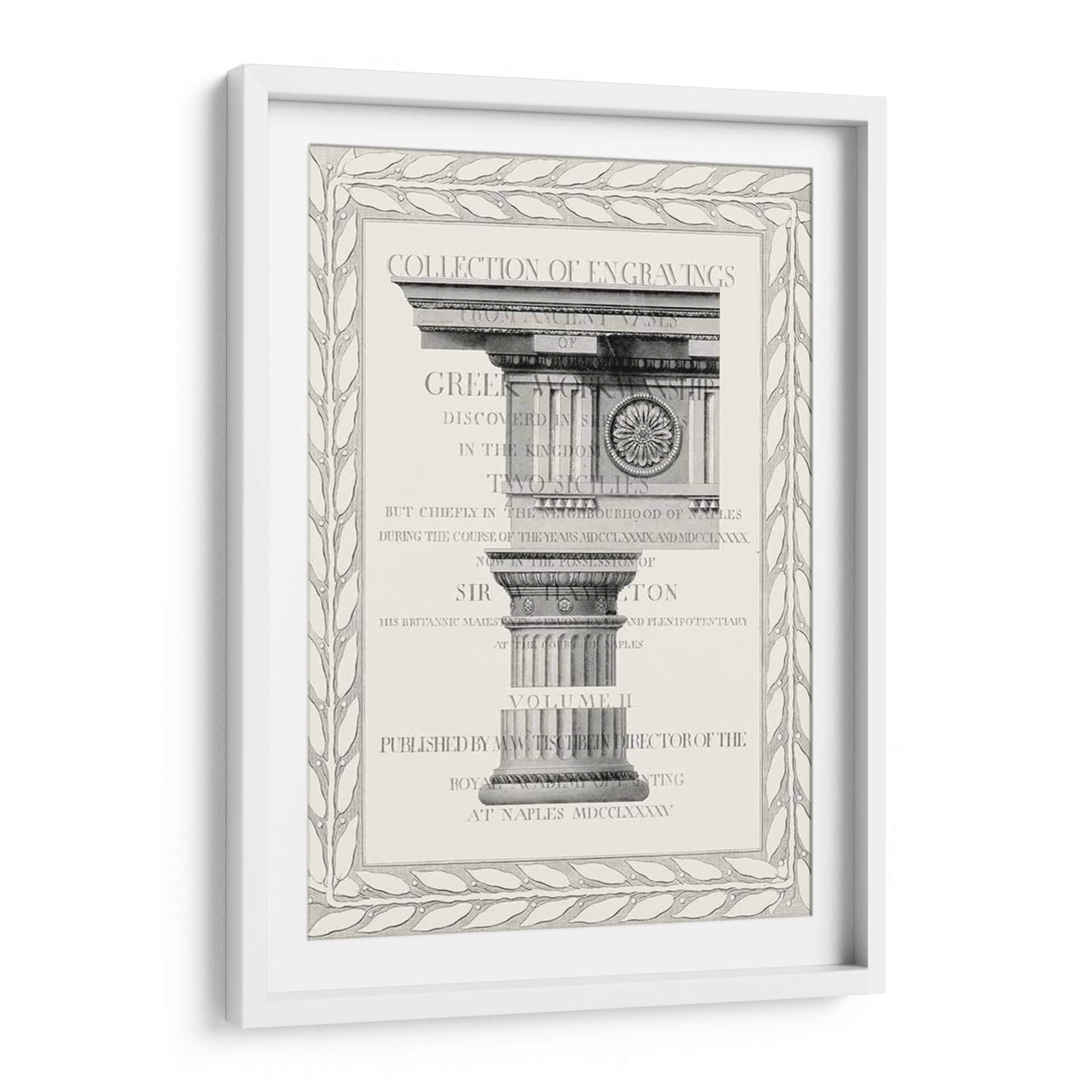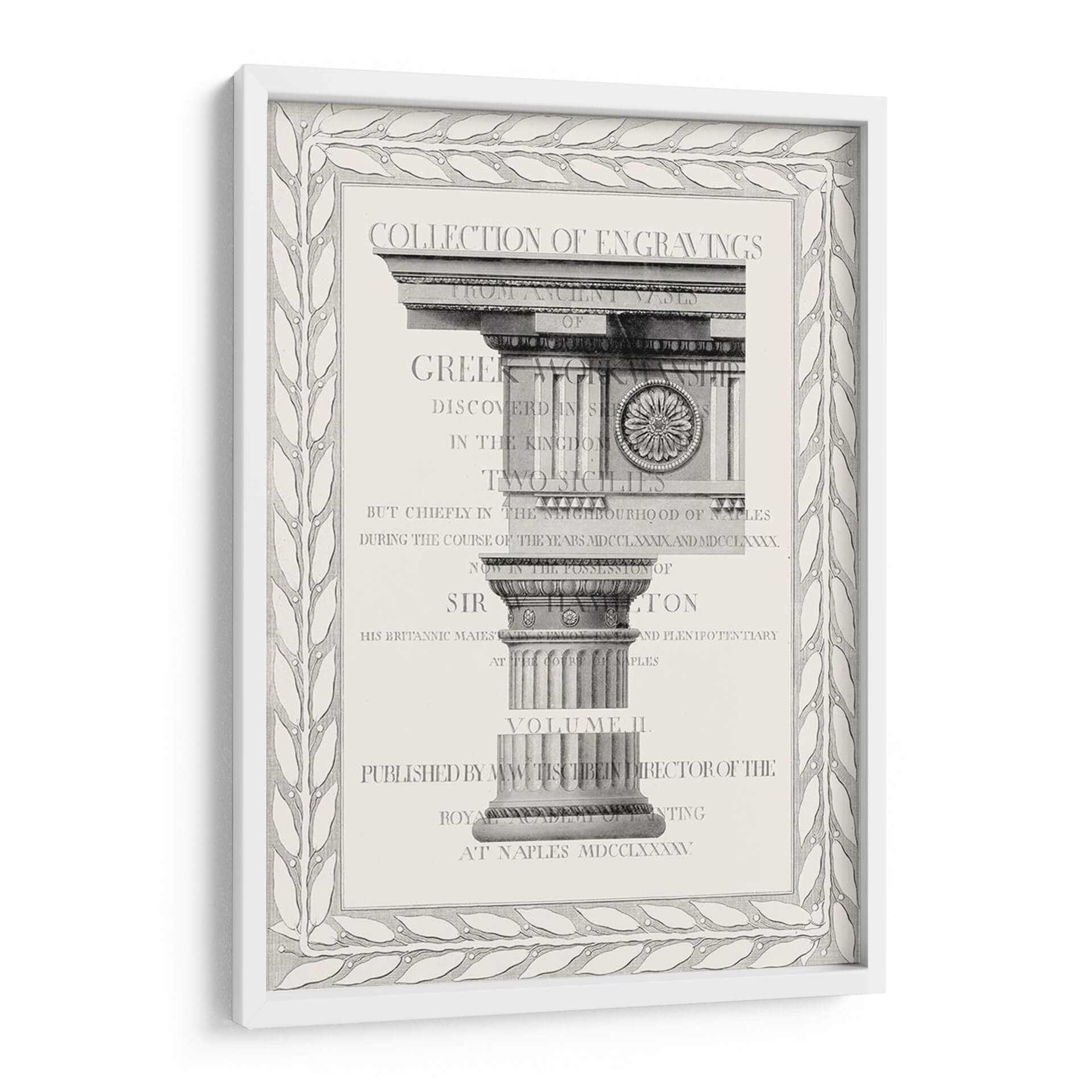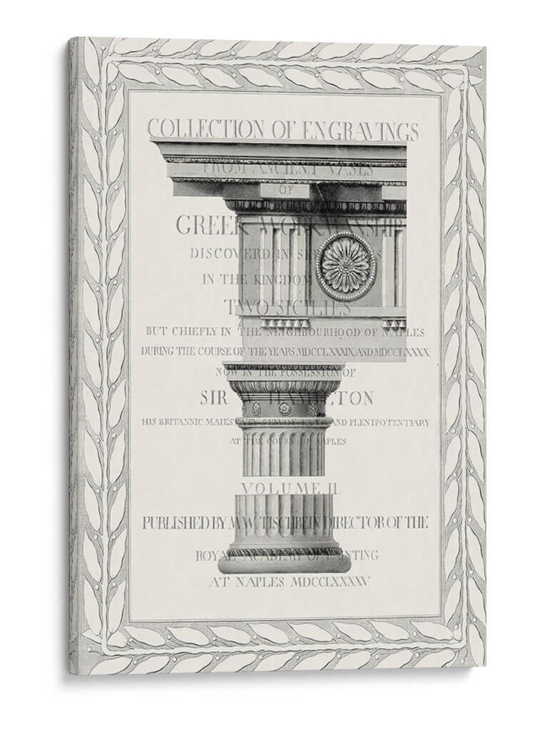 Este cuadro decorativo, titulado 'Capa De Columna I' del artista Vision Studio, evoca la grandeza y la arquitectura clásica con un toque de refinamiento. La obra presenta una detallada representación de elementos arquitectónicos griegos, centrándose en capiteles y columnas ornamentadas. La paleta de colores es predominantemente monocromática, utilizando tonos grises y blancos que otorgan una sensación de elegancia atemporal y sofisticación. La composición, centrada en la simetría y la estructura, transmite una atmósfera de orden y erudición. Es una pieza ideal para espacios que buscan un aire de distinción y cultura, como estudios, bibliotecas o salas de estar con un estilo clásico o ecléctico. El diseño, enmarcado por un borde ornamental de hojas, añade un nivel adicional de detalle y un toque artístico refinado, haciendo de esta obra una elección perfecta para quienes aprecian la historia, el arte y la arquitectura en su decoración.
