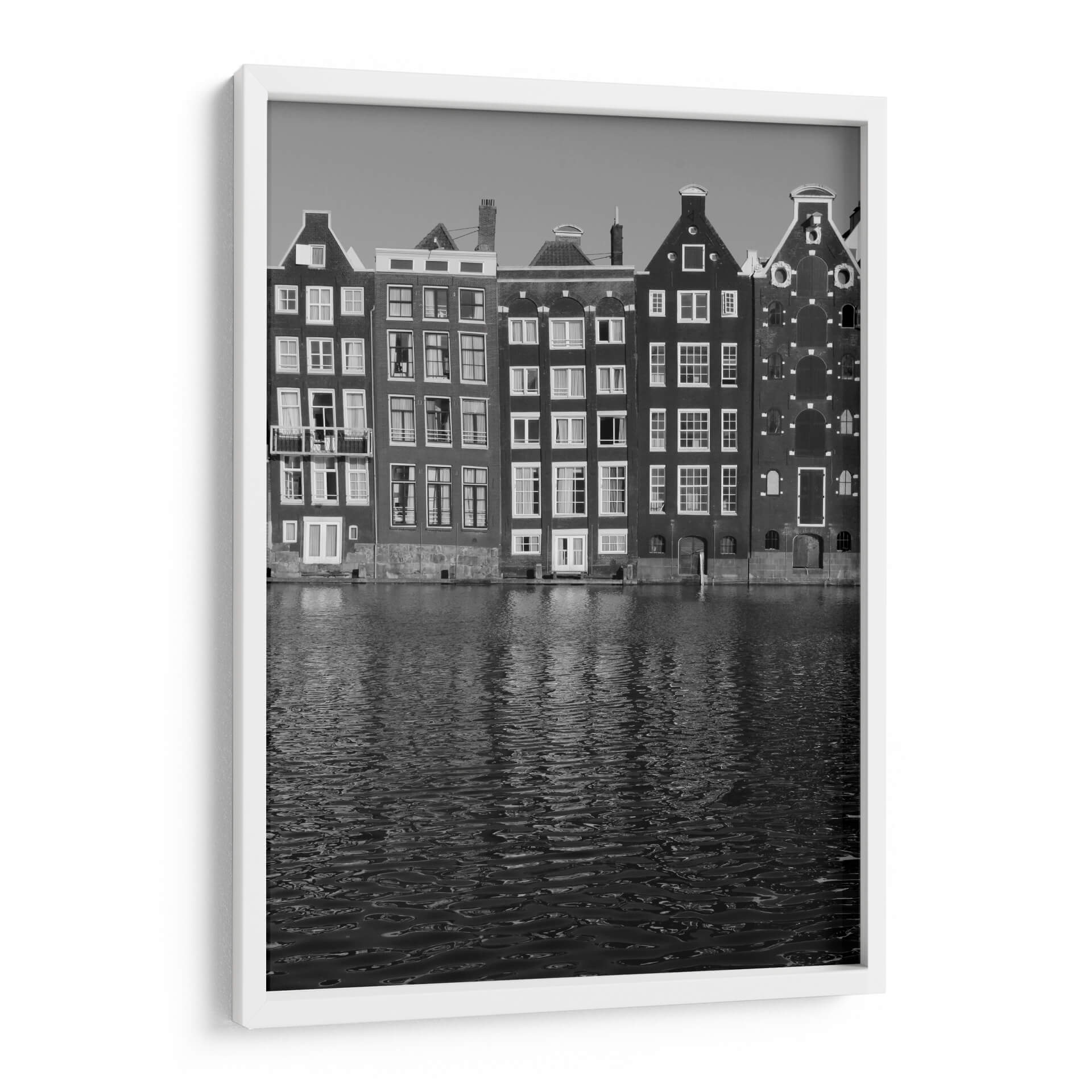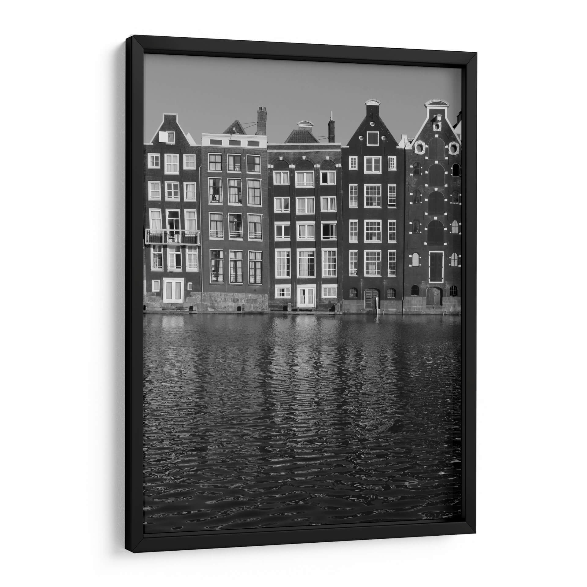 Sumérgete en la arquitectura icónica de los Países Bajos con este evocador cuadro decorativo de las Casas de Ámsterdam, capturado magistralmente por Luis Rodrigo Magaña Andrade. La fotografía en blanco y negro resalta la intrincada fachada de edificios históricos alineados a lo largo de un canal sereno, cuyas aguas reflejan las esbeltas estructuras con un juego de luces y sombras que añade profundidad y misterio a la escena. Cada ventana, cada tejado a dos aguas, cuenta una historia de tradición y encanto urbano. El contraste entre las texturas oscuras de los edificios y los brillos sutiles del agua crea una atmósfera de calma contemplativa, perfecta para aquellos que aprecian la belleza de la arquitectura clásica y la fotografía artística. Este cuadro decorativo es ideal para añadir un toque de elegancia atemporal a tu sala de estar, estudio u oficina, transportándote a las pintorescas calles de Ámsterdam sin salir de casa. Su composición vertical y el uso del monocromo lo convierten en una pieza versátil que complementa cualquier estilo de decoración, desde el moderno hasta el más tradicional, aportando un aire sofisticado y sereno a tus espacios.