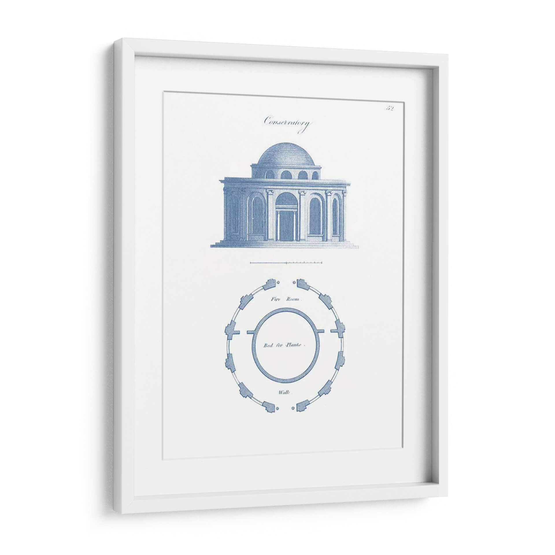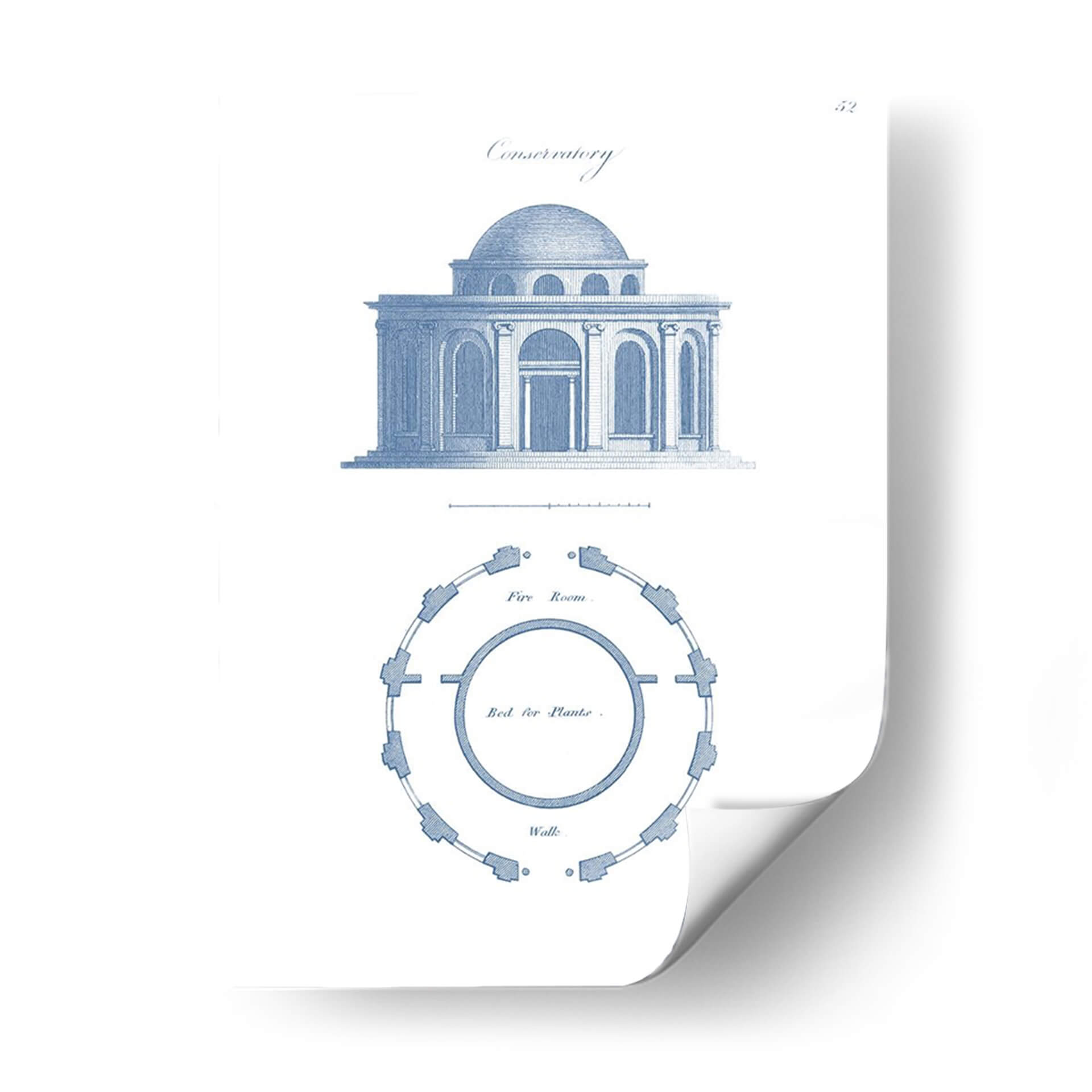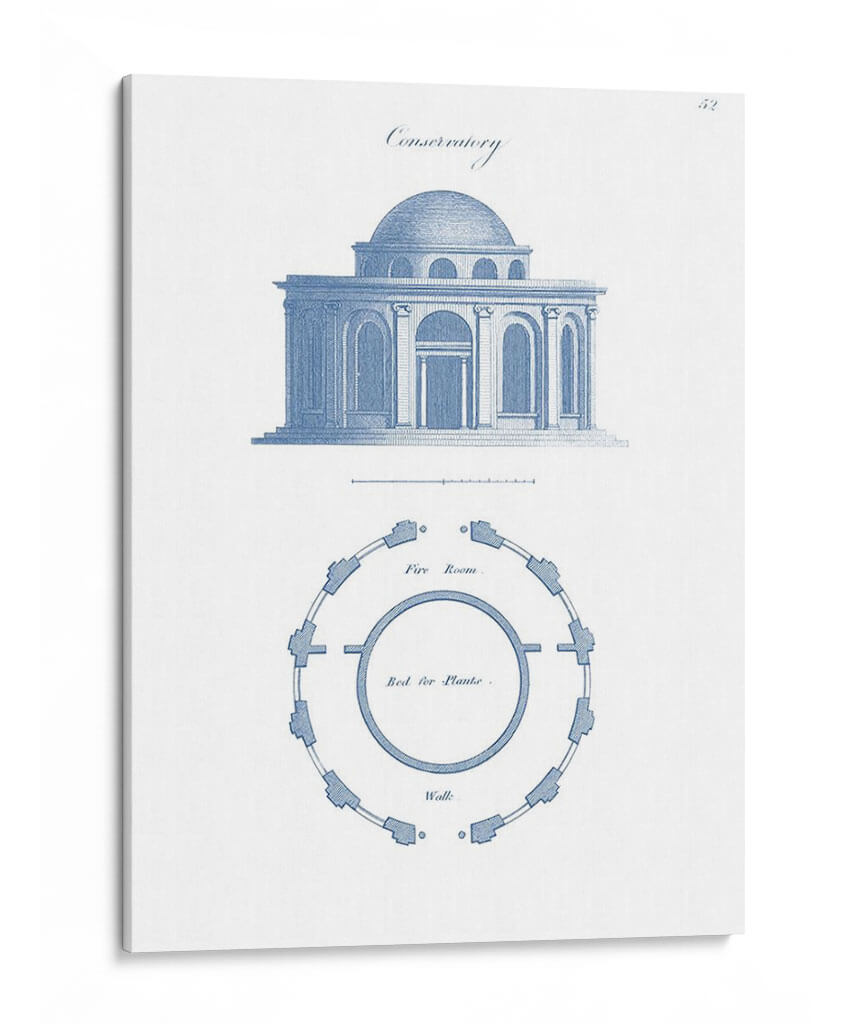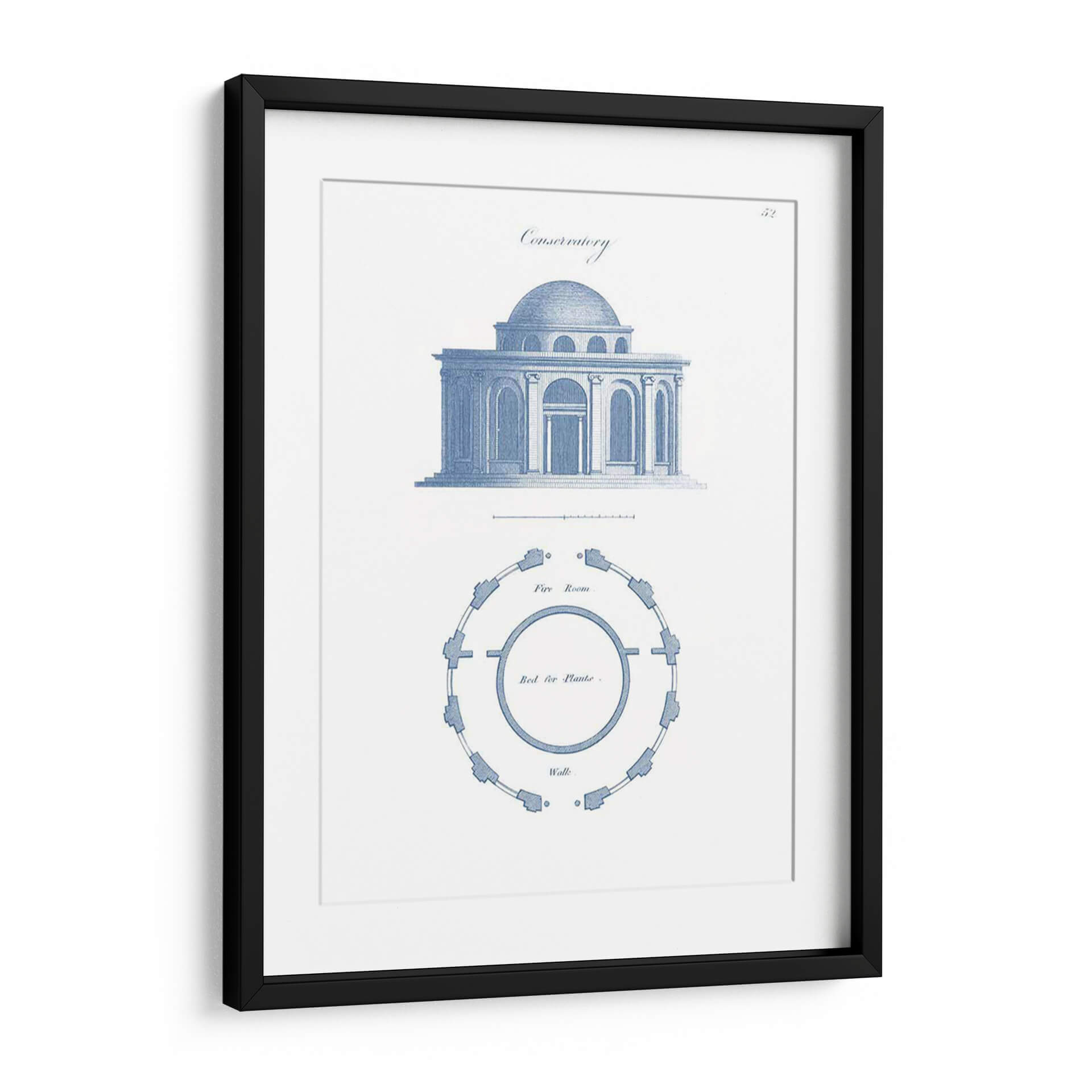 Descubre la elegancia arquitectónica con "Estructuras de Jardín I", una obra de arte digital que captura la esencia de un invernadero clásico. Esta pieza de Vision Studio presenta una detallada representación arquitectónica en un sereno tono azul, destacando la simetría y la majestuosidad de una estructura abovedada con columnatas elegantes. La vista superior revela la distribución circular, con indicaciones de "Fire Room" y "Bed for Plants", transportándote a un ambiente de tranquilidad y contemplación. Ideal para amantes de la arquitectura, la historia o para quienes buscan un toque de sofisticación y orden en su decoración. Este cuadro decorativo es perfecto para añadir un punto de interés intelectual y visual a tu estudio, biblioteca u oficina, o para infundir calma en un salón moderno. La paleta de azules puros evoca serenidad y claridad, haciendo que esta obra sea un complemento versátil para diversos estilos decorativos, desde el clásico hasta el contemporáneo. Añade una dimensión de diseño y legado a tu espacio con esta pieza única y evocadora.