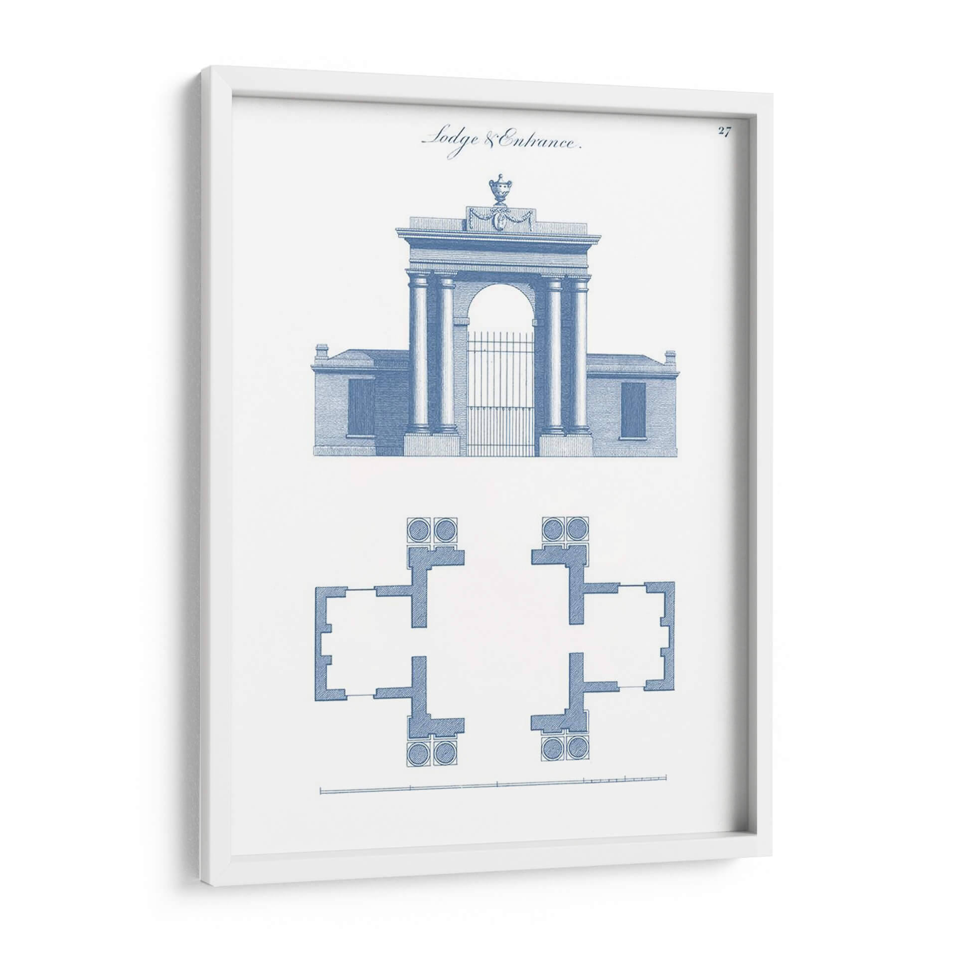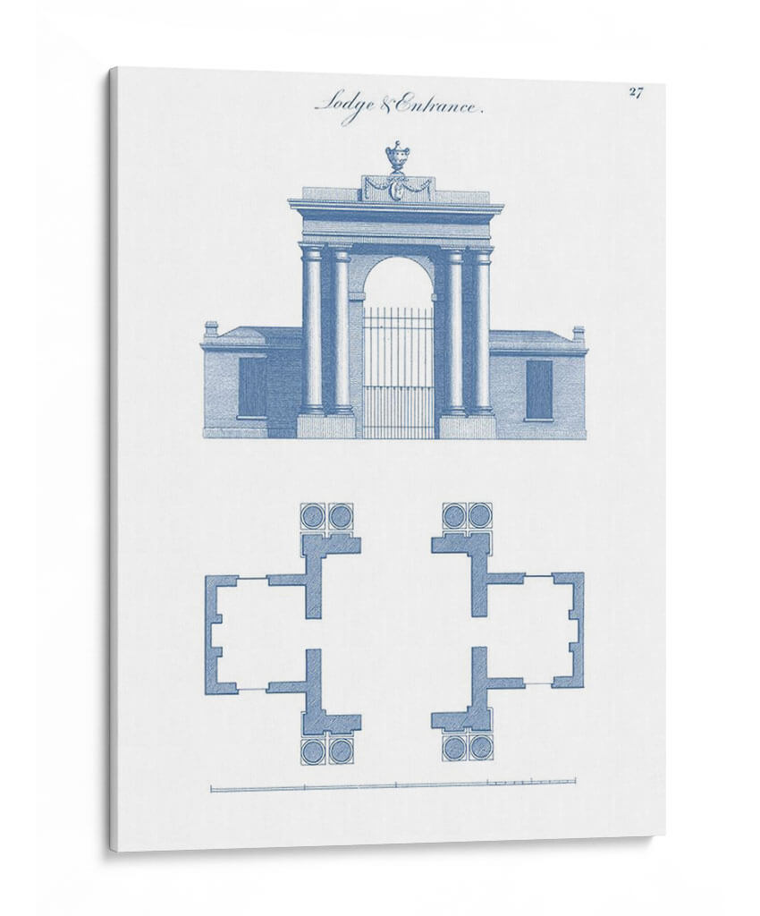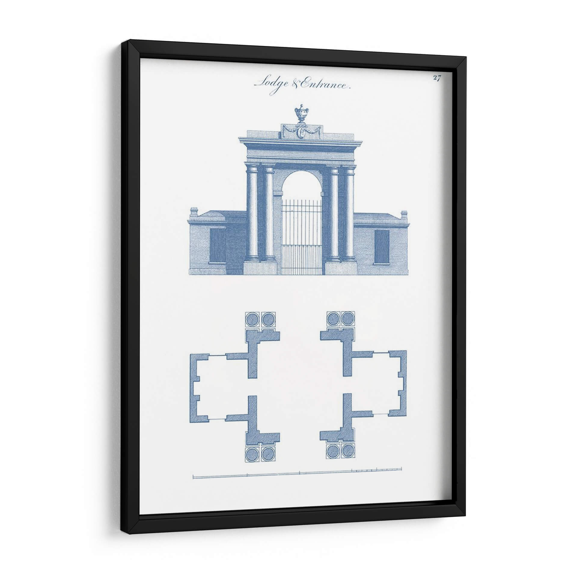 Embellece tu espacio con "Estructuras De Jardín Ii", una obra de arte que captura la elegancia arquitectónica y la simetría clásica. Este cuadro decorativo presenta una detallada ilustración en tono azul de un imponente arco de entrada flanqueado por columnas robustas y una reja ornamental, evocando un sentido de grandeza y orden. Debajo, se despliegan planos arquitectónicos que revelan la estructura y el diseño de las edificaciones, aportando un toque intelectual y de precisión a la pieza. La paleta de colores monocromática en azul sobre blanco crea una atmósfera serena y sofisticada, ideal para complementar una decoración moderna, minimalista o de inspiración clásica. La composición, que combina la vista frontal de la estructura con su representación en planta, añade profundidad y un interés visual único. "Estructuras De Jardín Ii" es perfecto para quienes aprecian el diseño arquitectónico, la historia o buscan una pieza que aporte carácter y elegancia atemporal a su hogar u oficina, añadiendo un toque de refinamiento a cualquier pared.